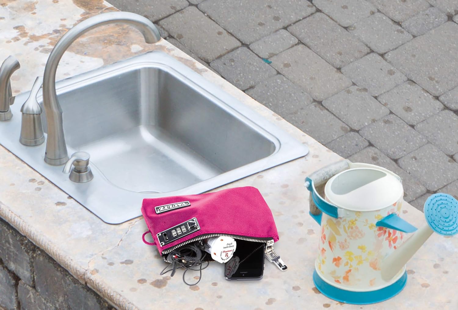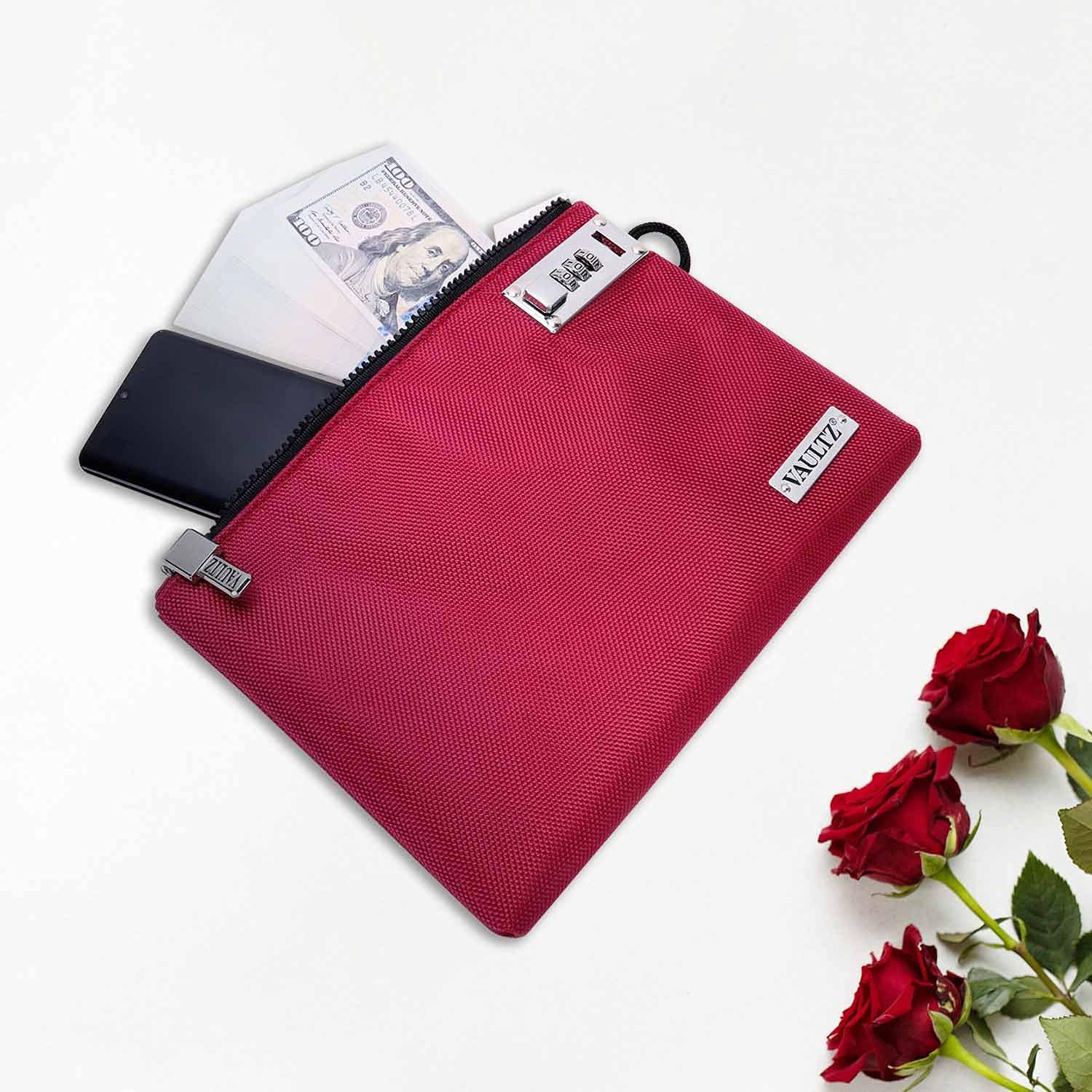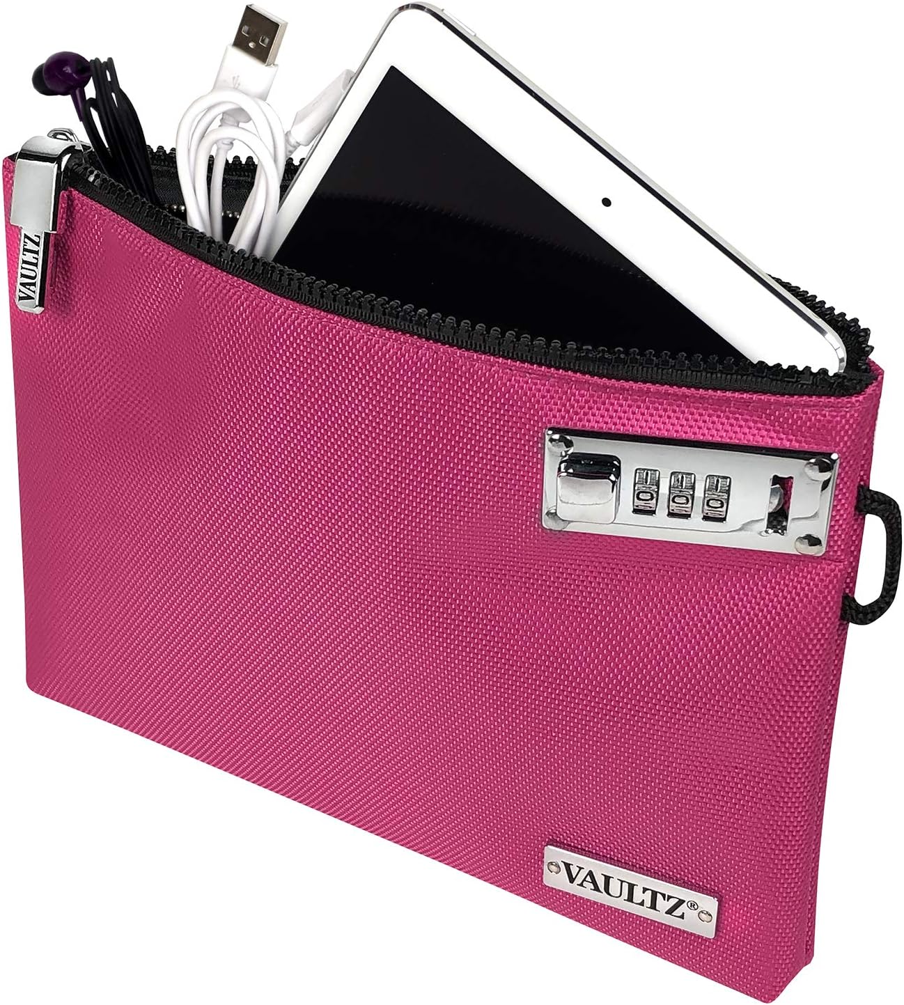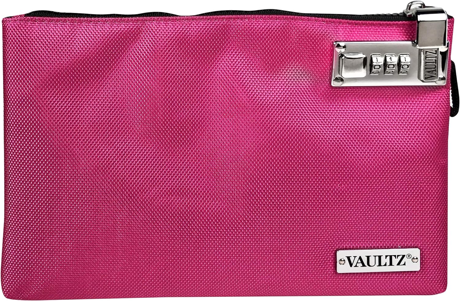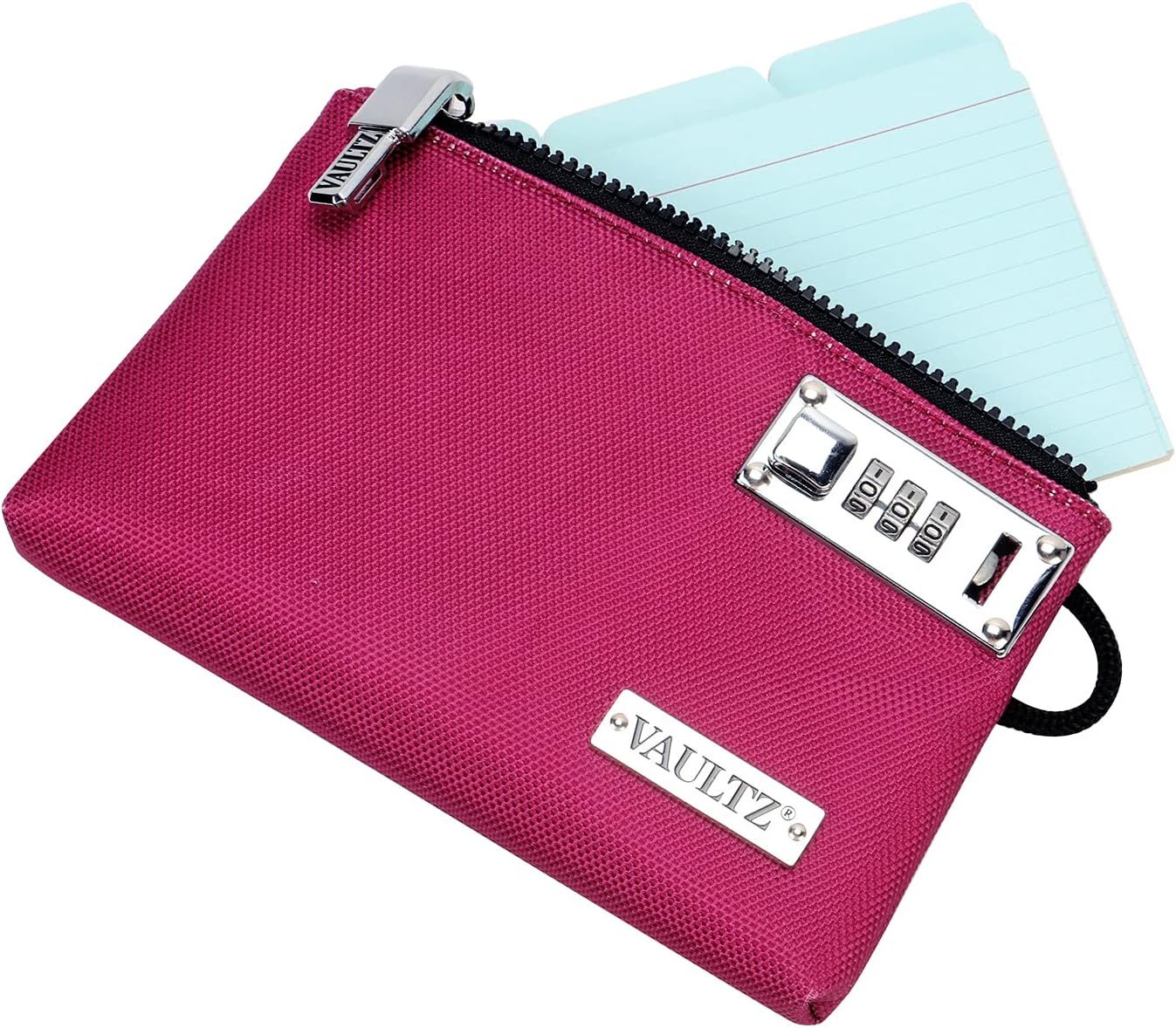 Vaultz Money Bag with Lock - 5 x 7 Inch, Men & Women's Locking Accessories Pouch for Cash, Bank Deposits, Wallet, Medicine, Phone and Credit Cards - BERRY