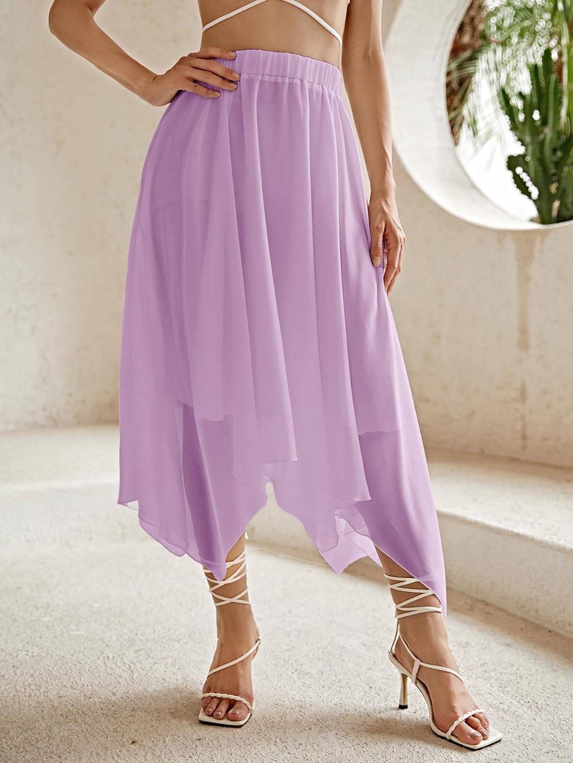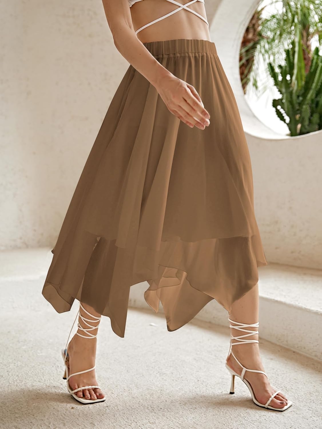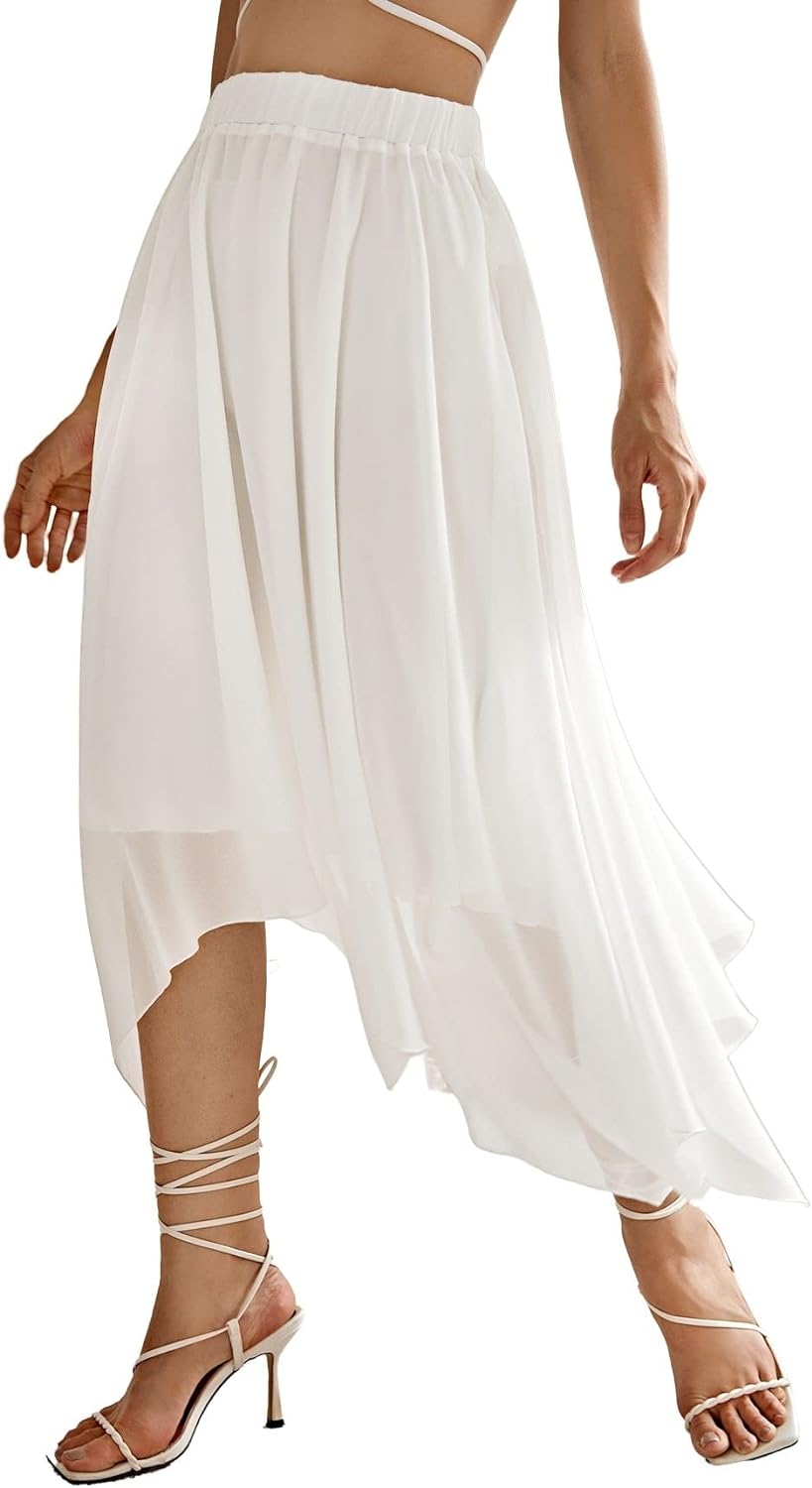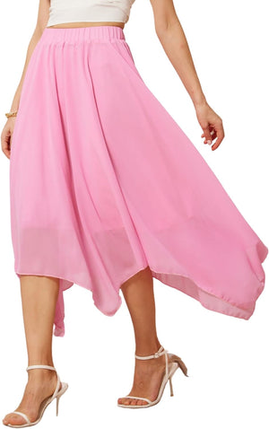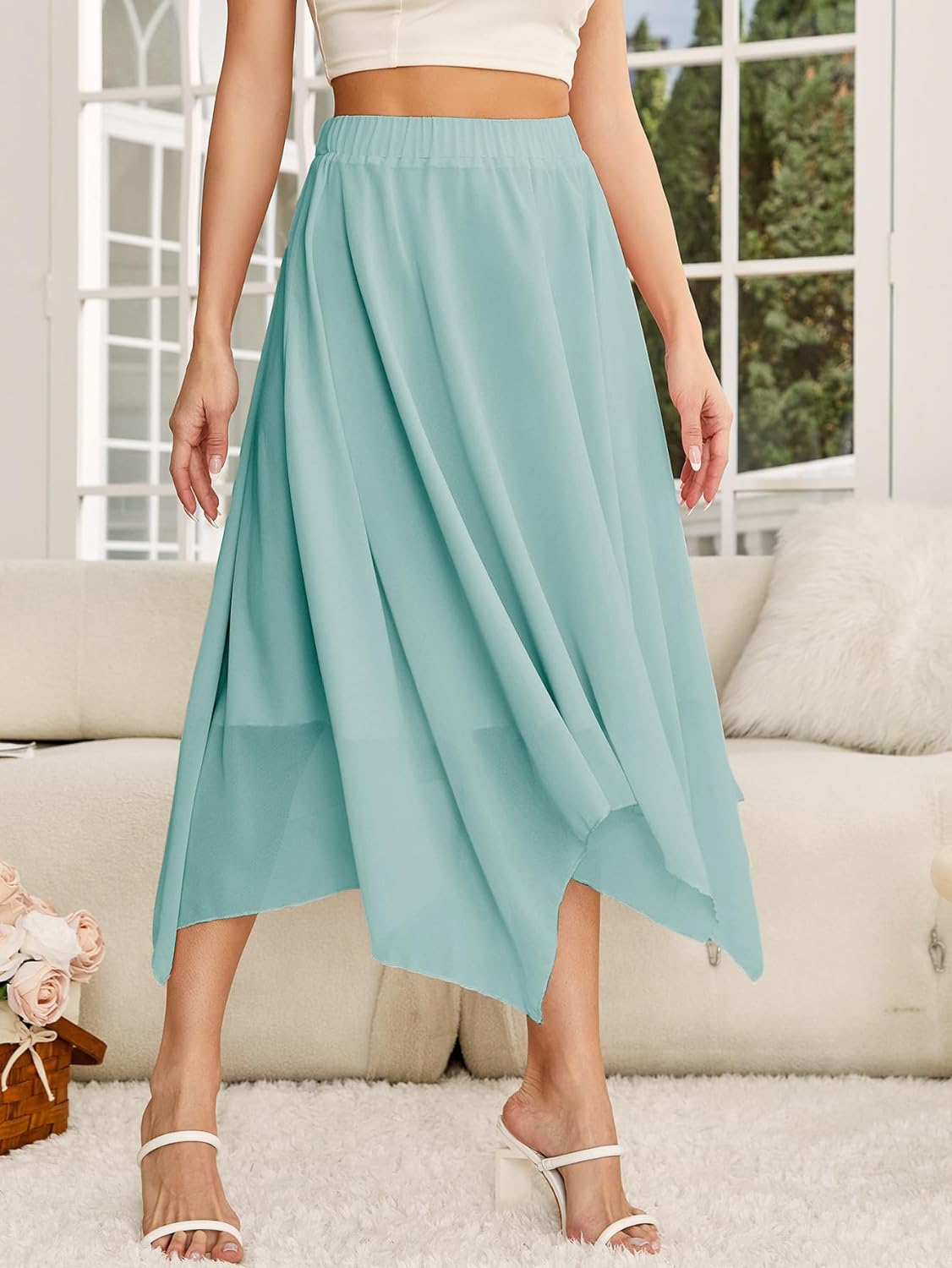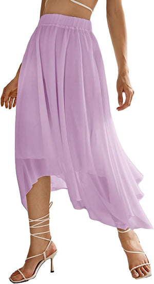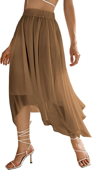 Verdusa Women's Asymmetrical Hem Elastic Waist Chiffon Flowy Long Skirt
