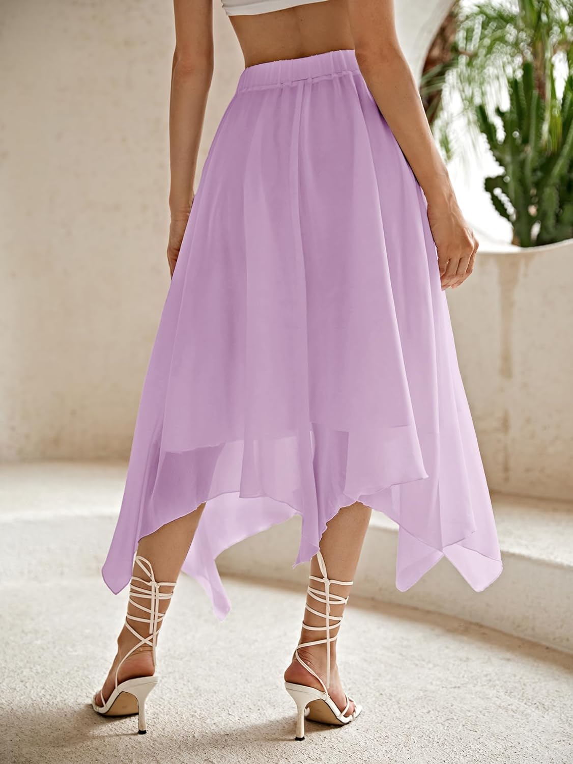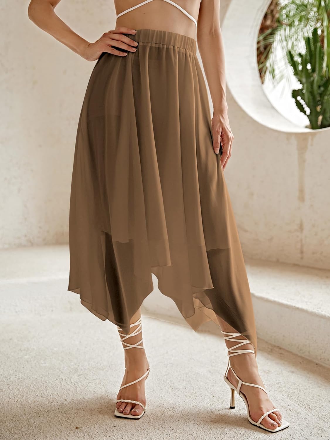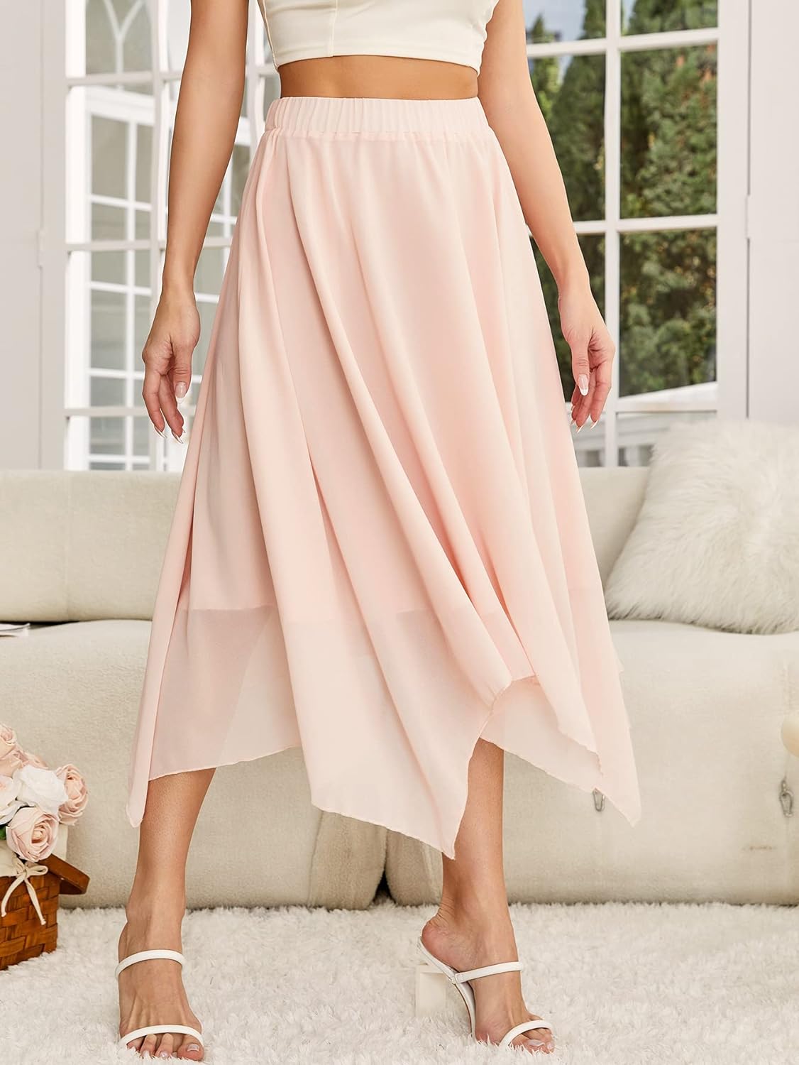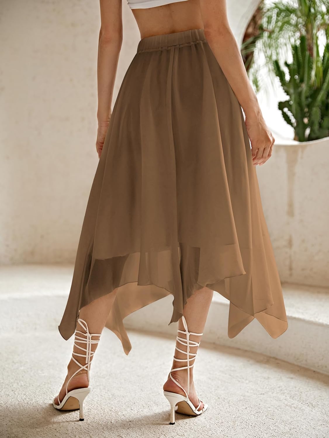 Verdusa Women's Asymmetrical Hem Elastic Waist Chiffon Flowy Long Skirt