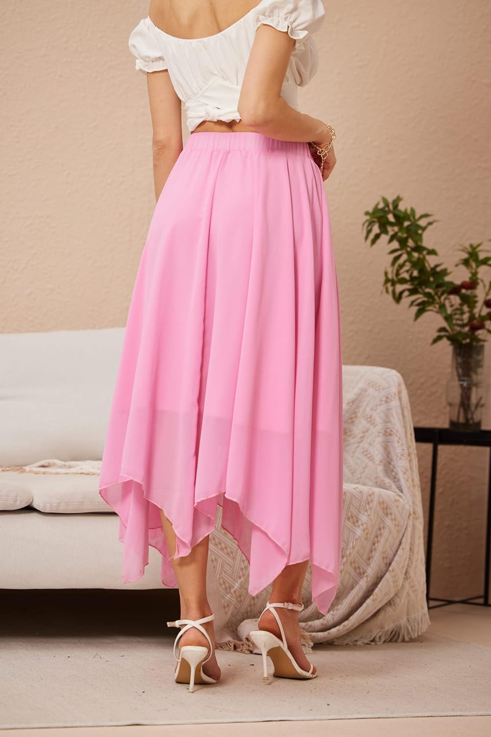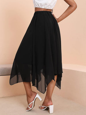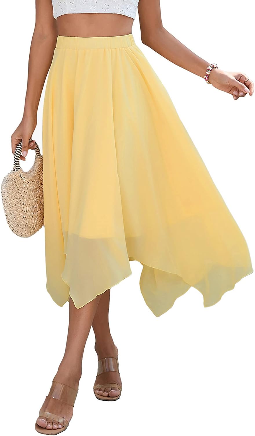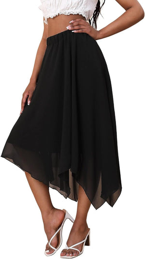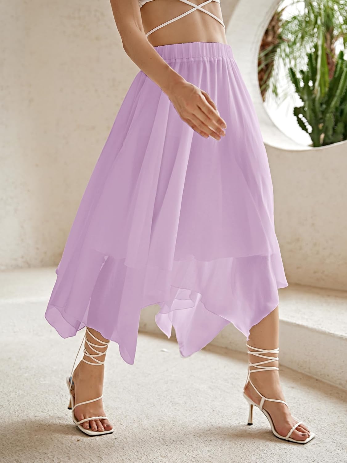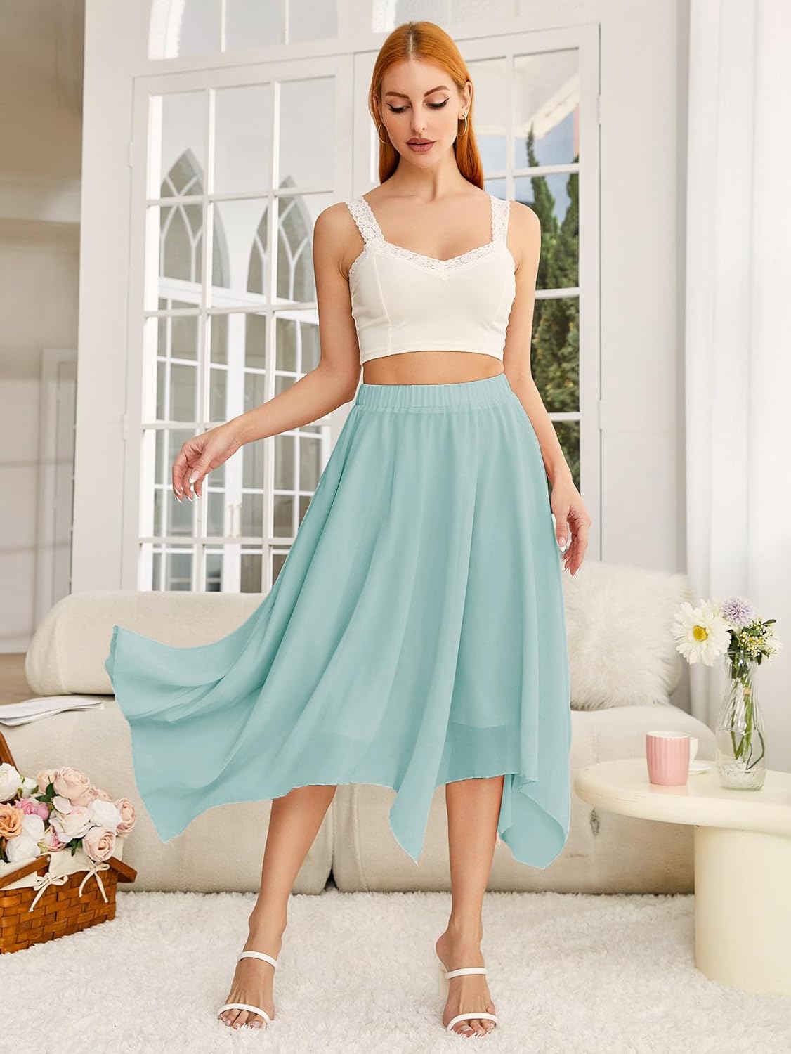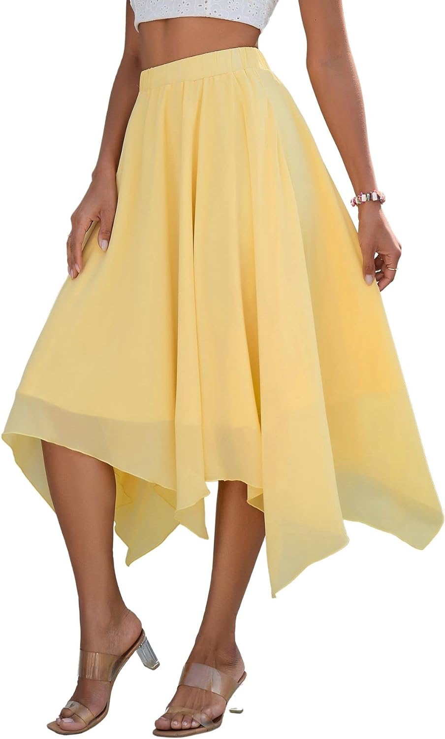 Verdusa Women's Asymmetrical Hem Elastic Waist Chiffon Flowy Long Skirt