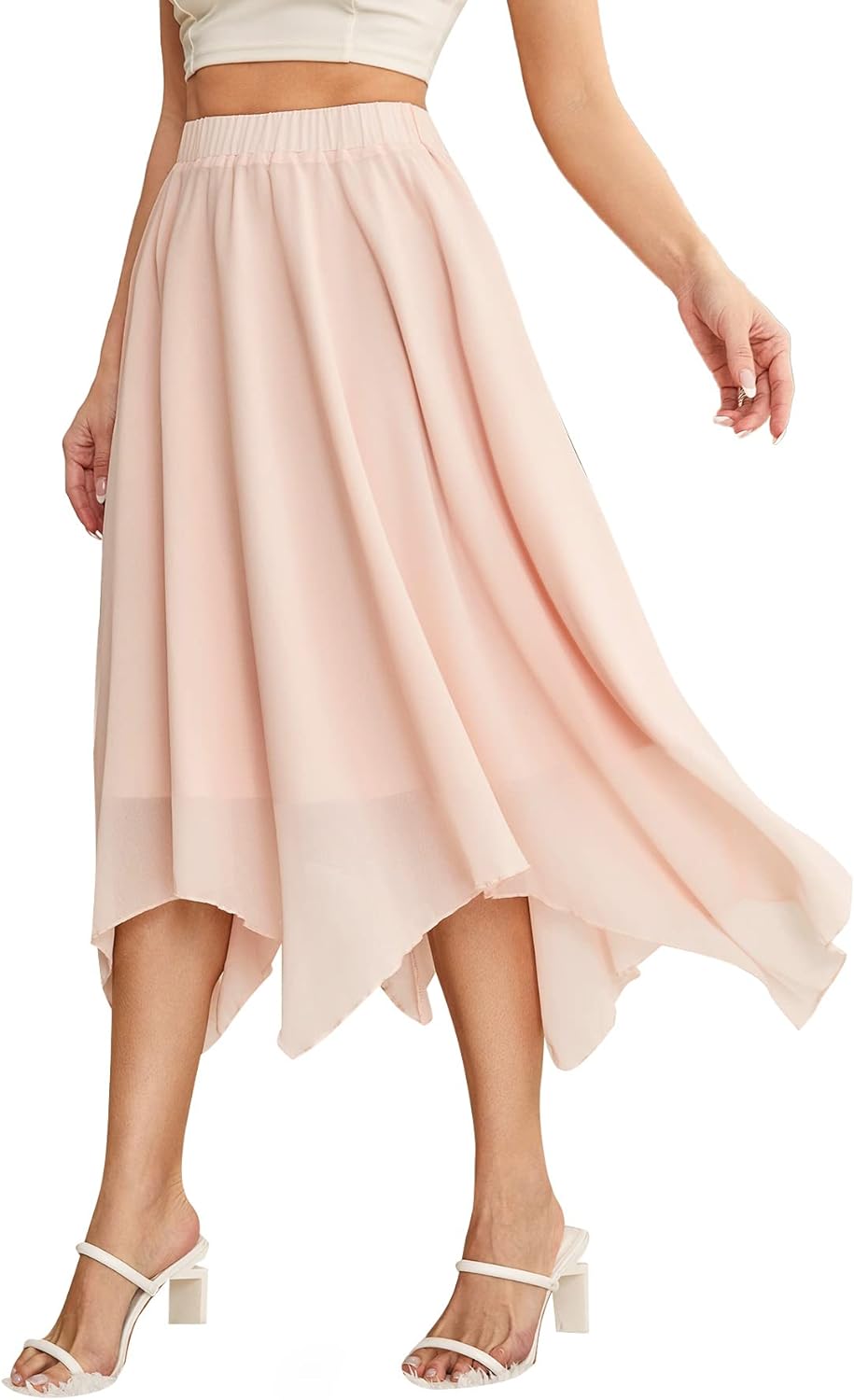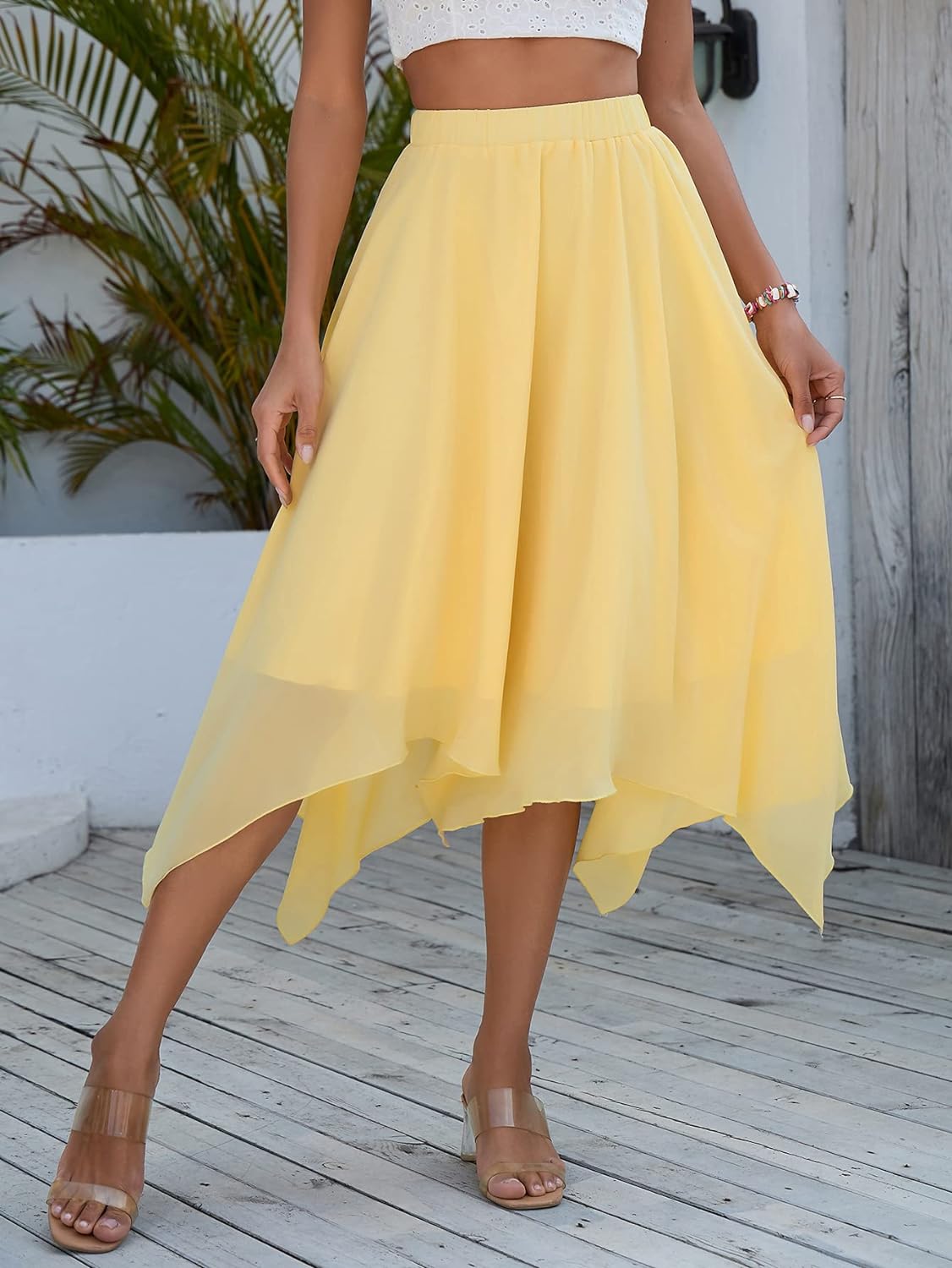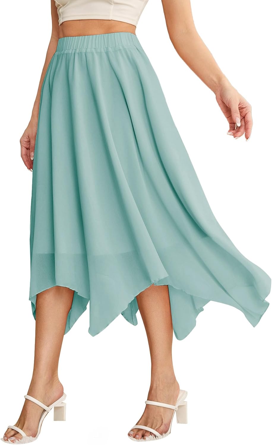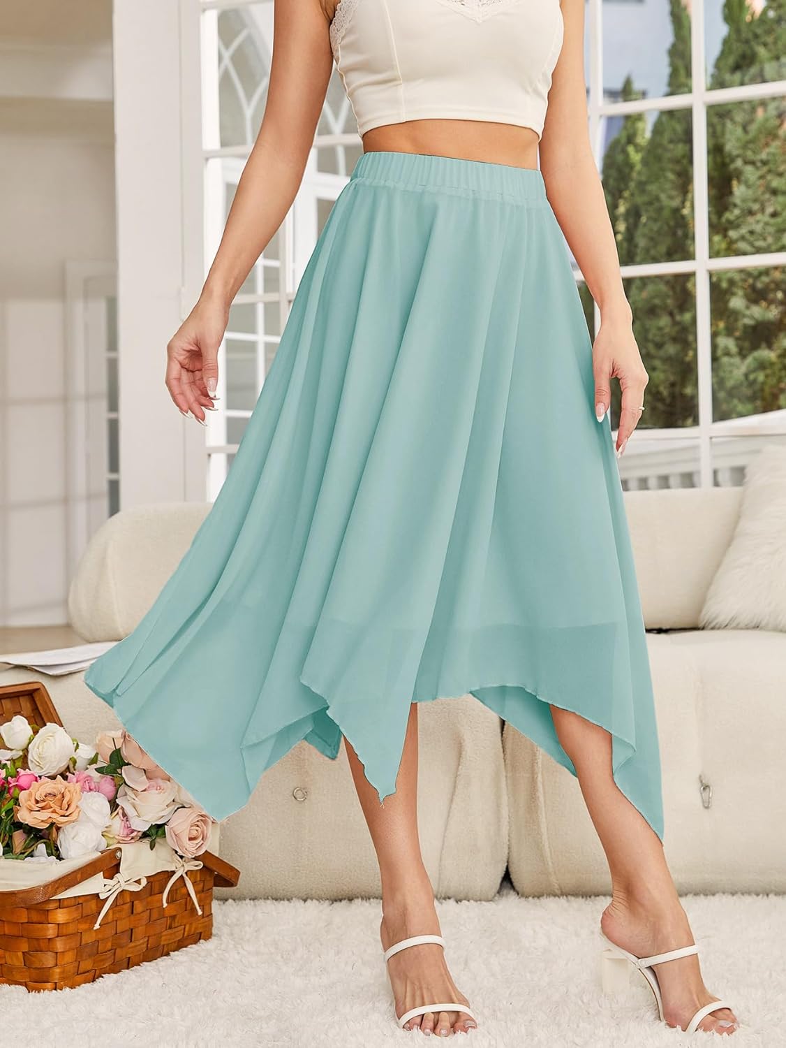Verdusa Women's Asymmetrical Hem Elastic Waist Chiffon Flowy Long Skirt
