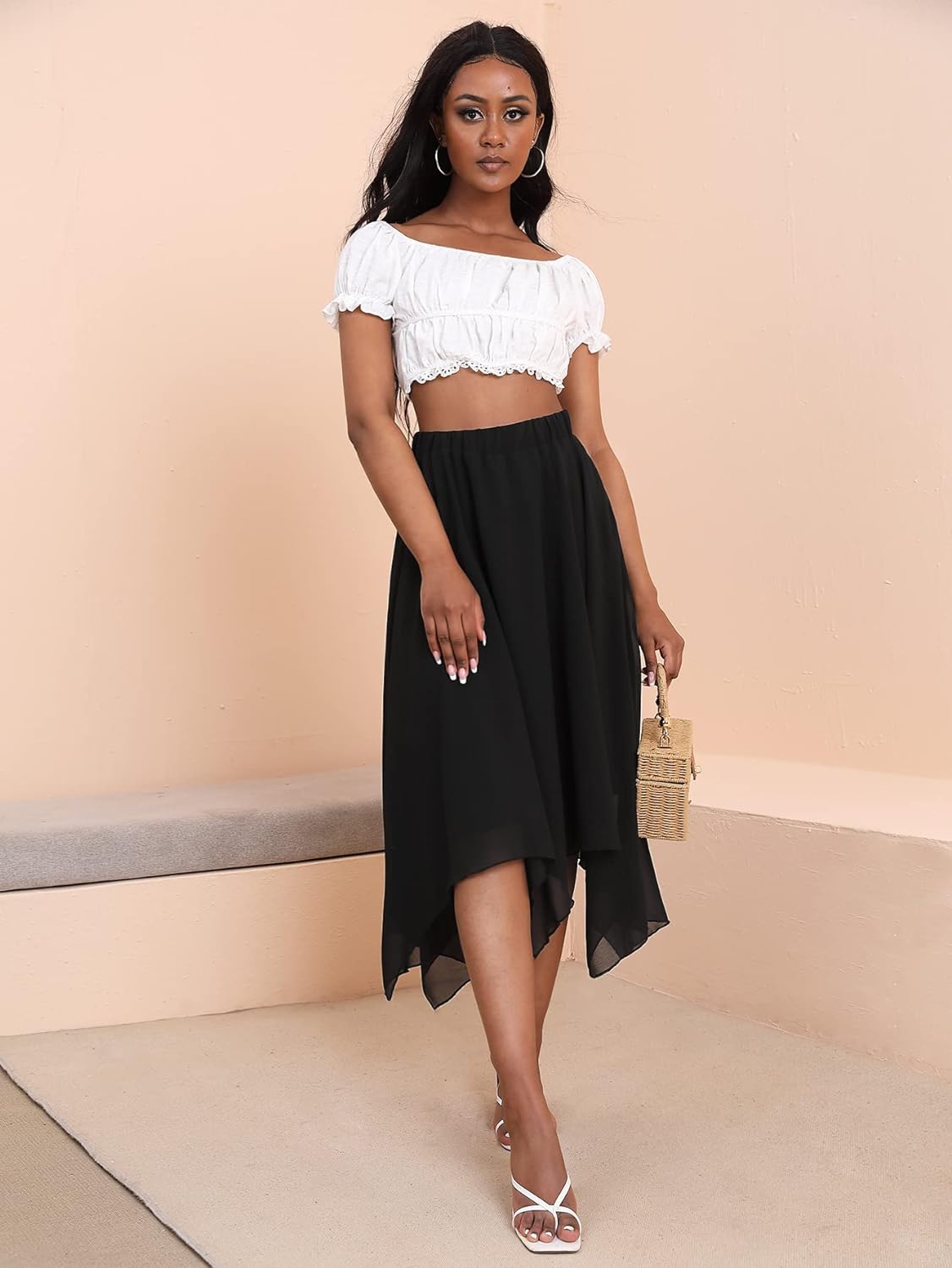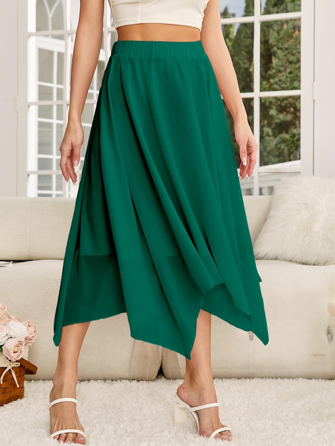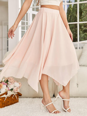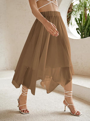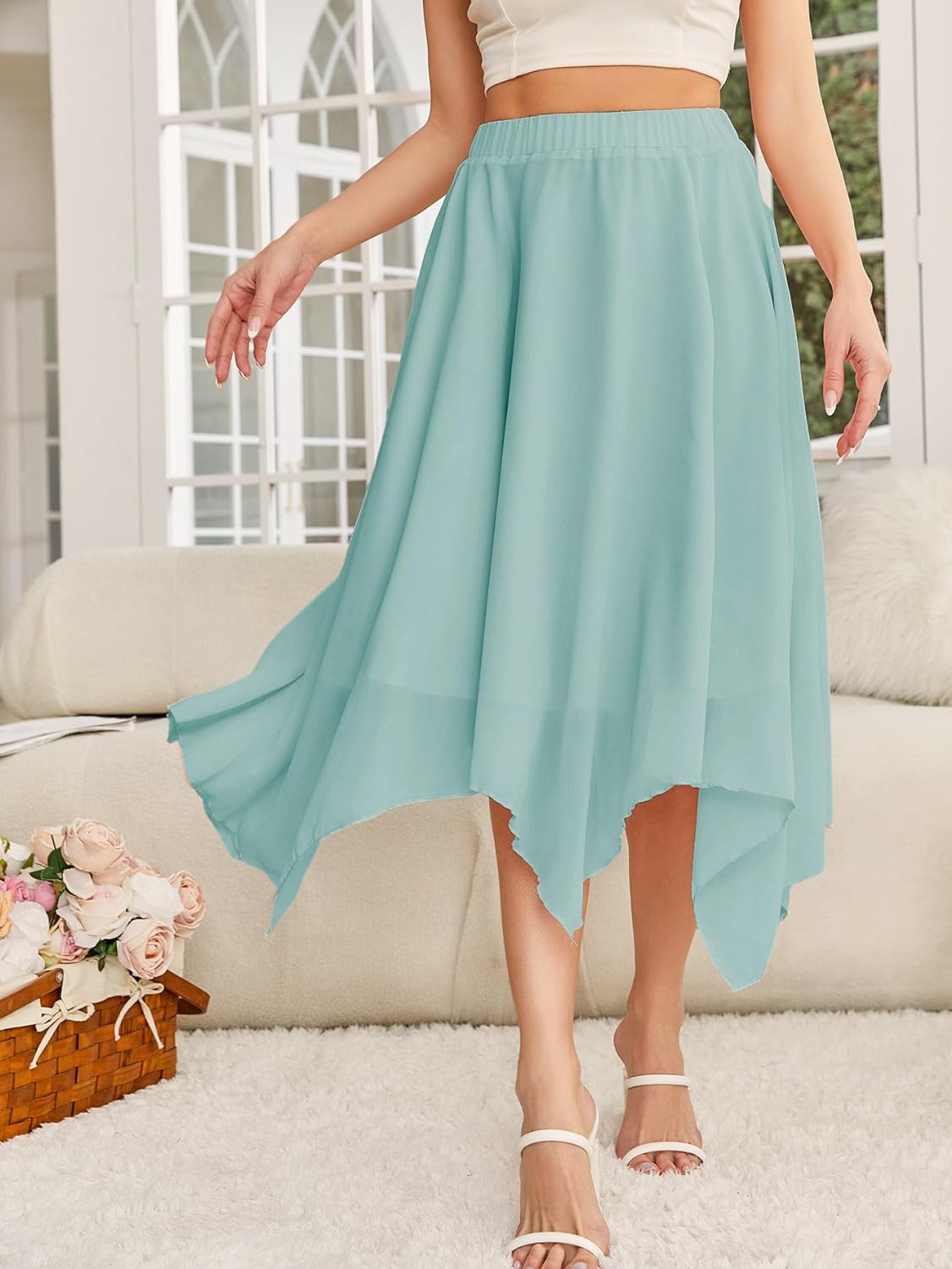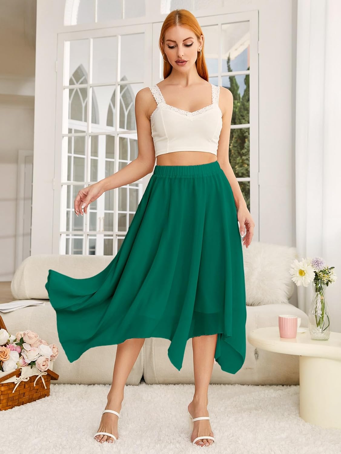 Verdusa Women's Asymmetrical Hem Elastic Waist Chiffon Flowy Long Skirt