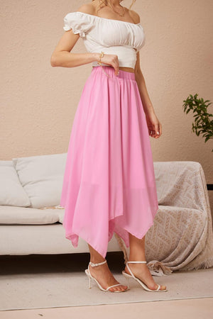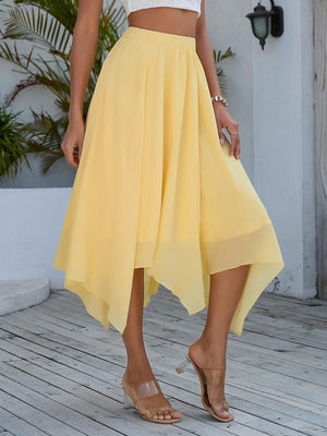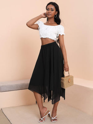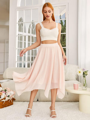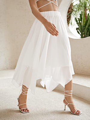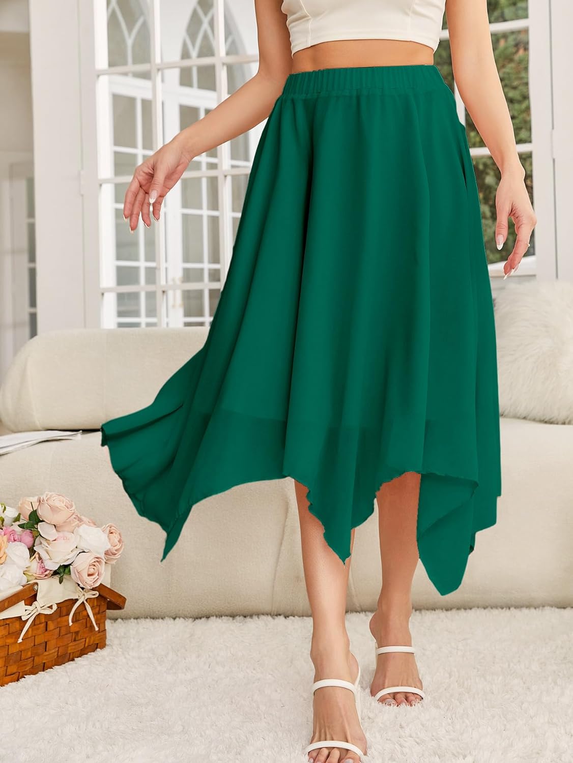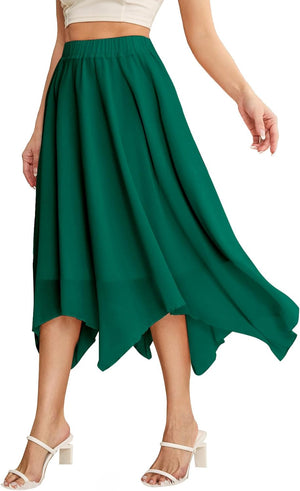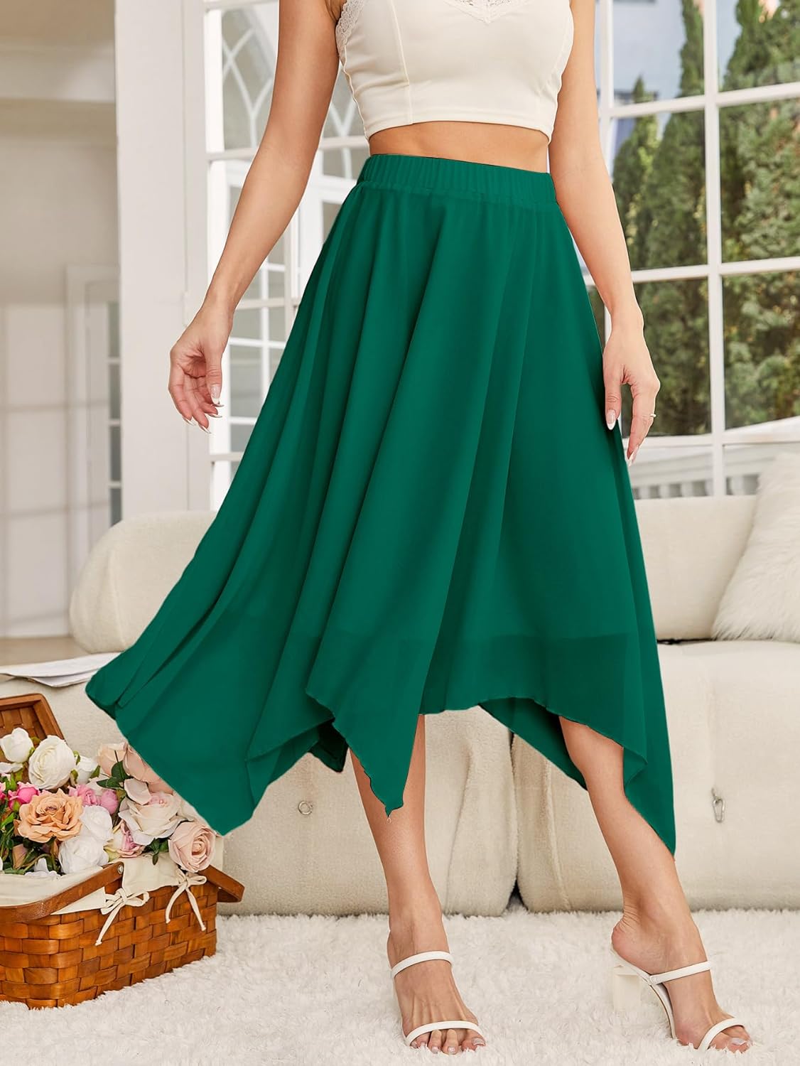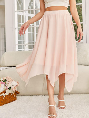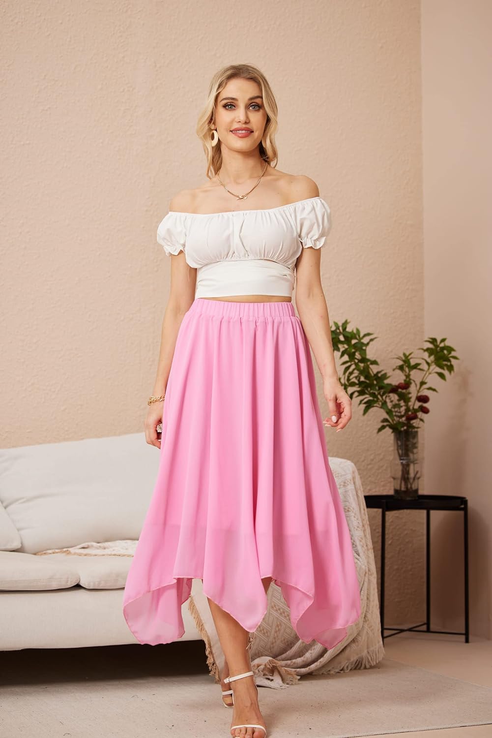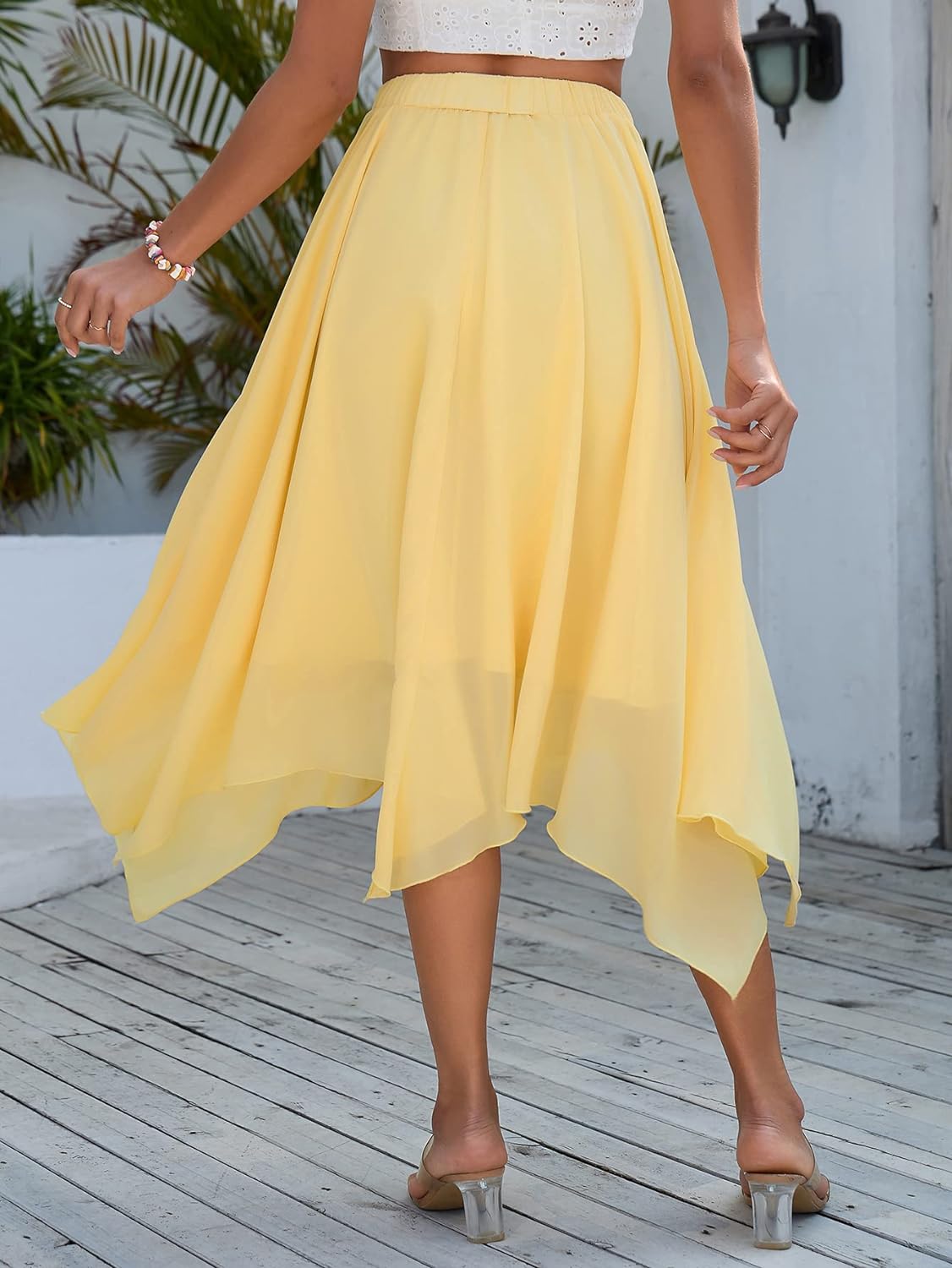 Verdusa Women's Asymmetrical Hem Elastic Waist Chiffon Flowy Long Skirt