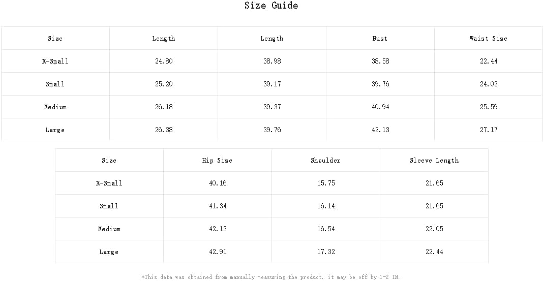 X-Small:Bust:38.6IN,Length:24.8IN,Shoulder:15.7IN,Sleeve Length:21.7IN,Hip Size:40.2IN,Length:39.0IN,Waist Size:22.4IN