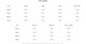 Large:Bust:42.1IN,Length:26.4IN,Shoulder:17.3IN,Sleeve Length:22.4IN,Hip Size:42.9IN,Length:39.8IN,Waist Size:27.2IN