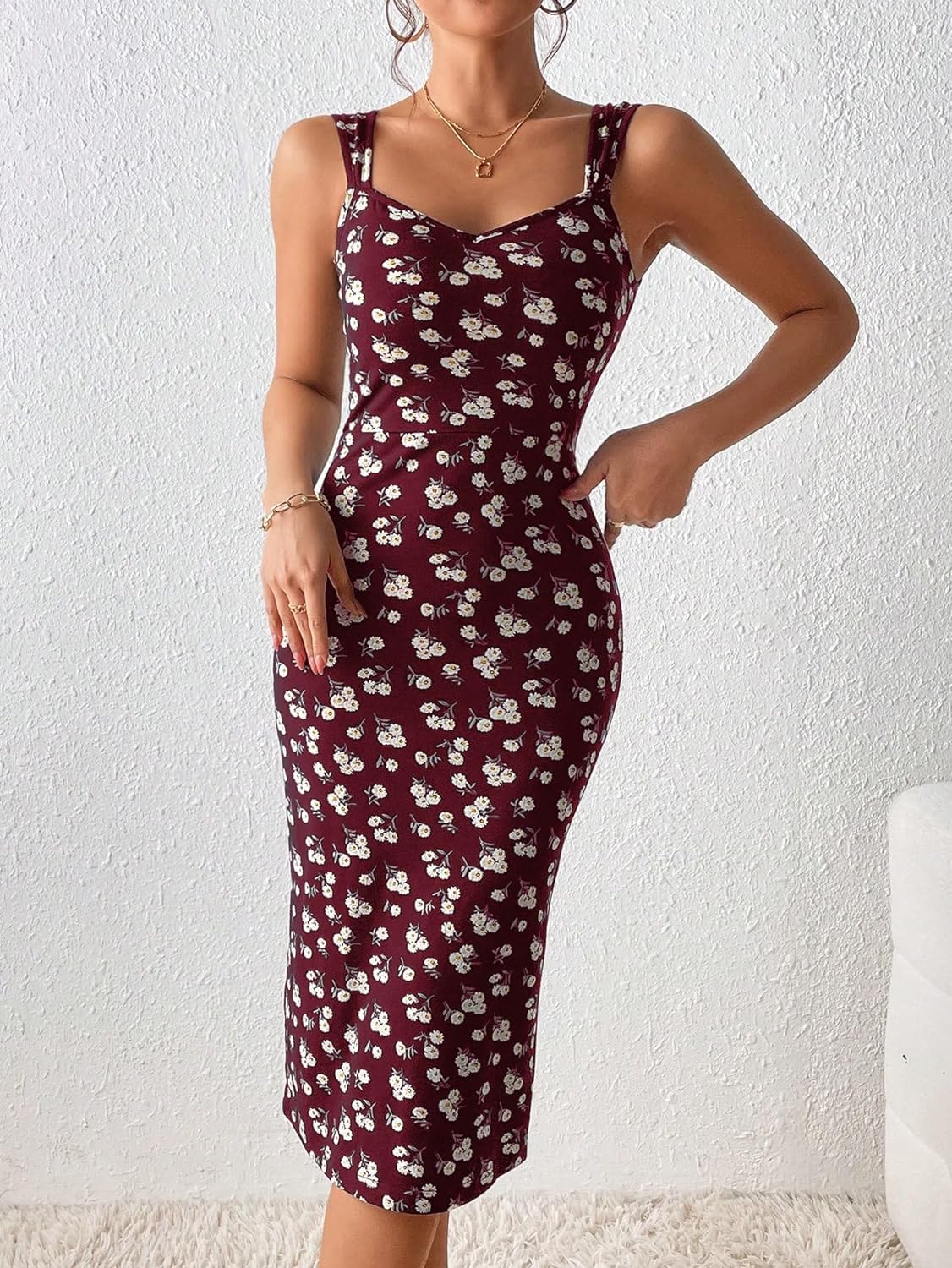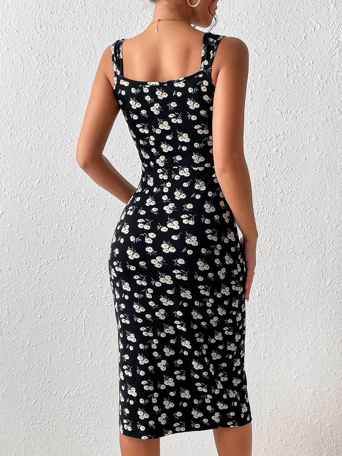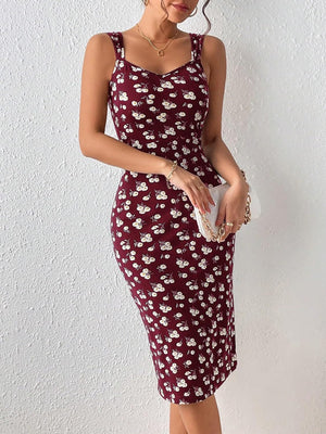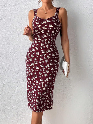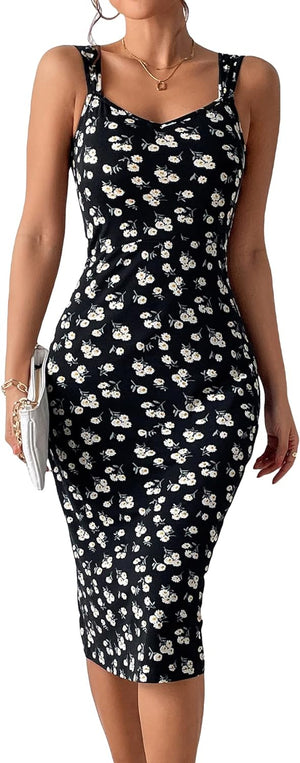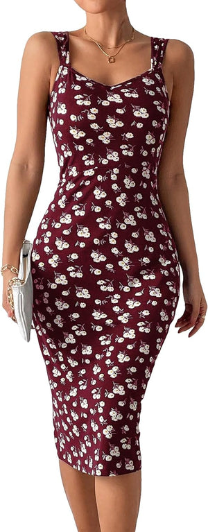 Verdusa Women's Sleeveless Sweetheart Neck Floral Print Bodycon Pencil Midi Dress