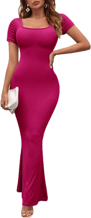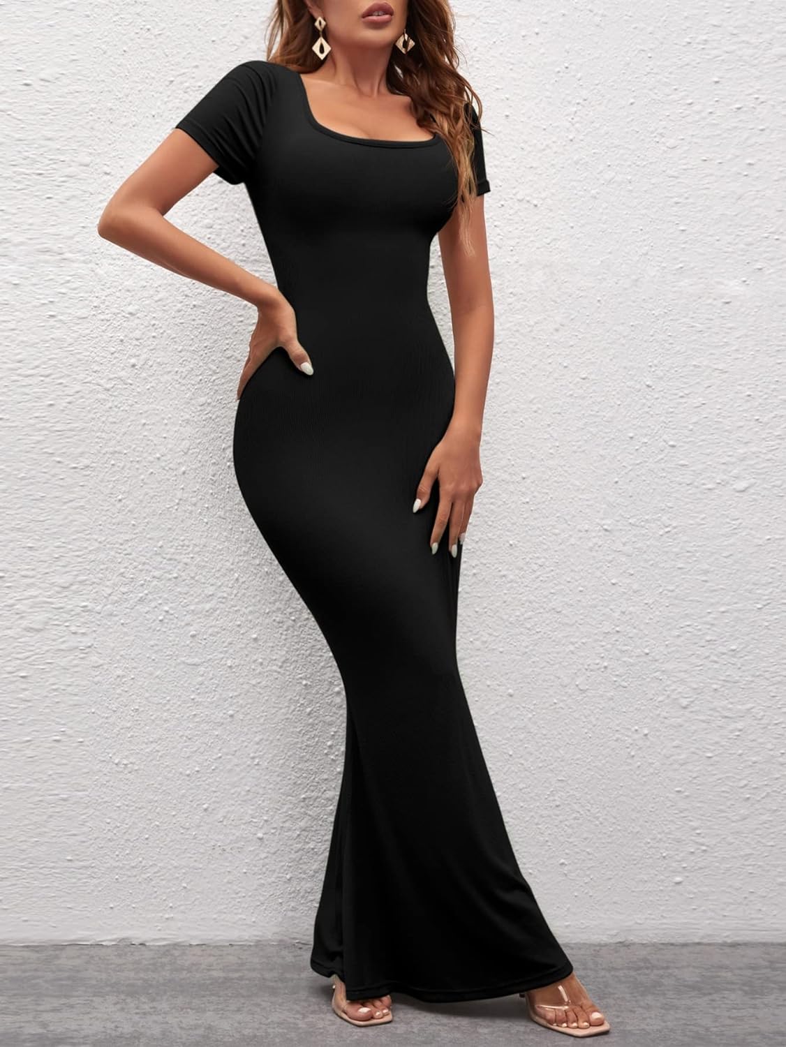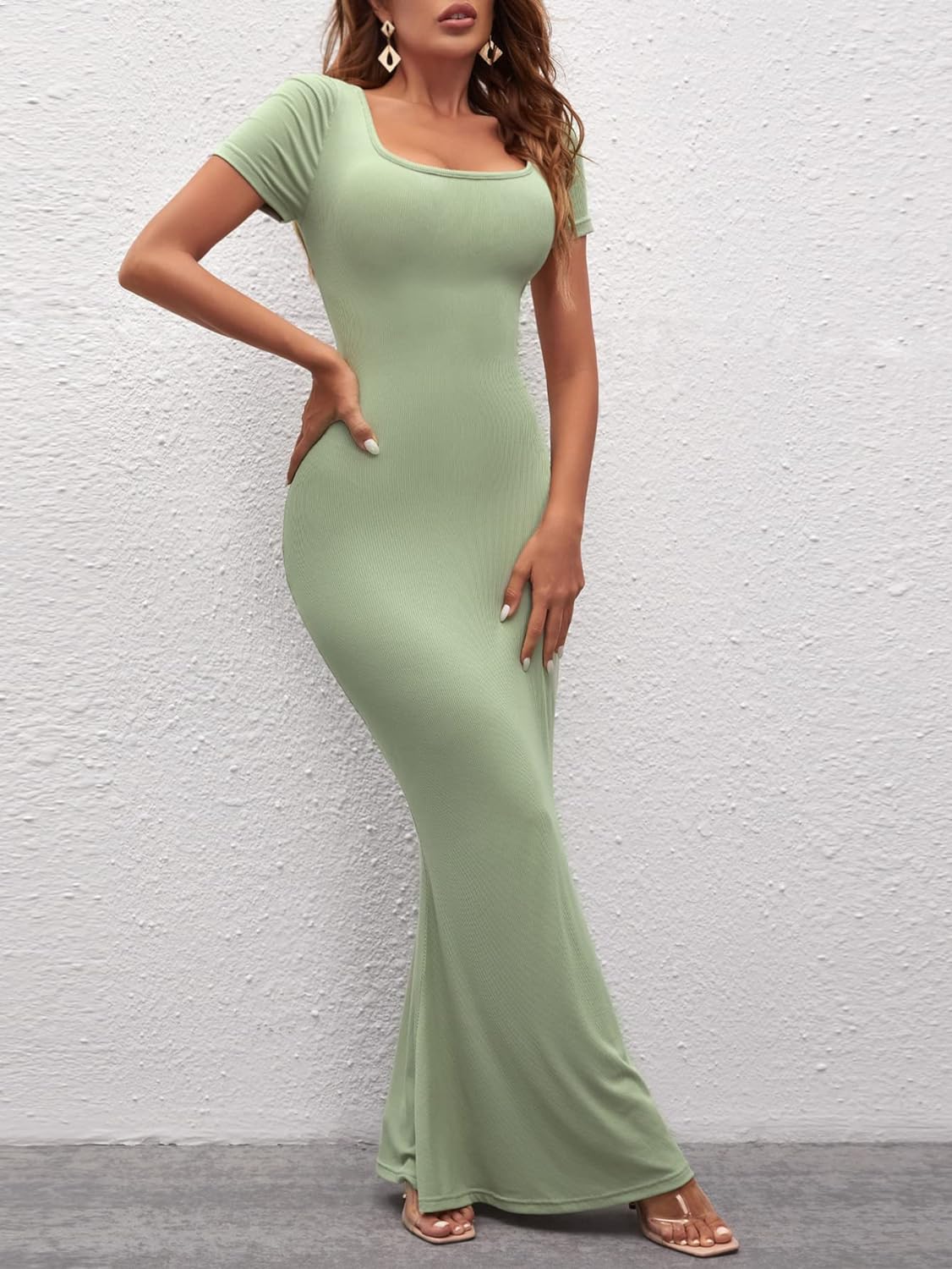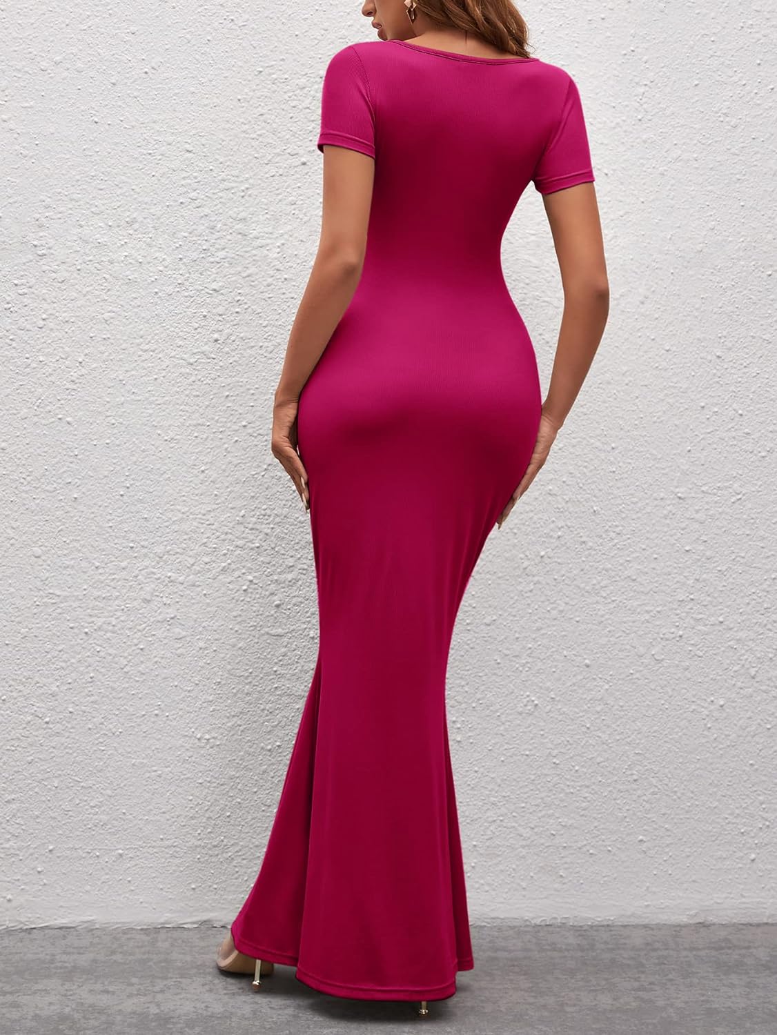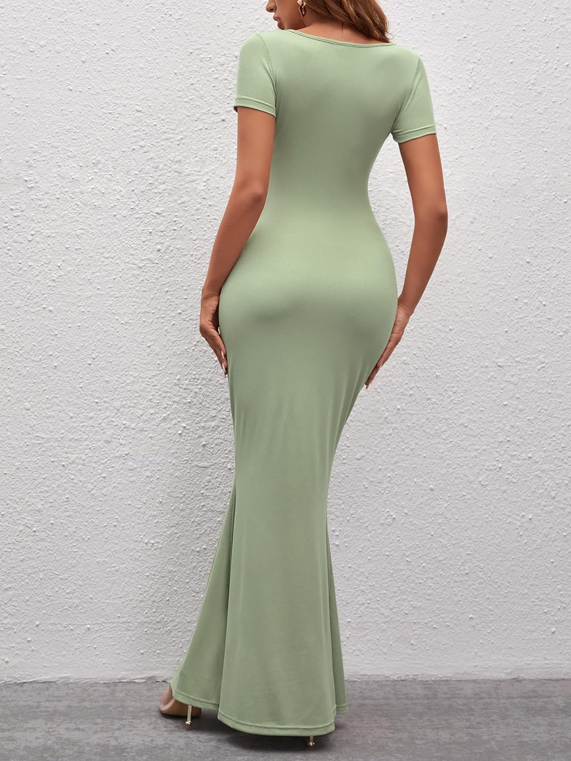 Verdusa Women's Square Neck Short Sleeve Fishtail Bodycon Maxi Dress