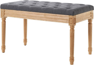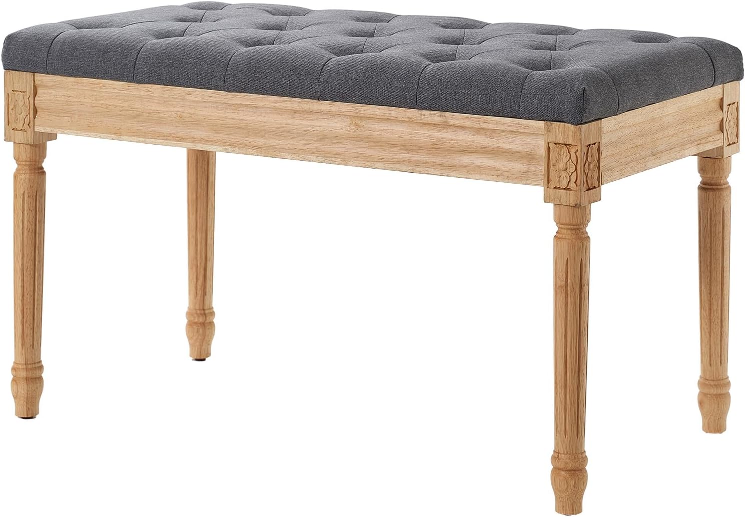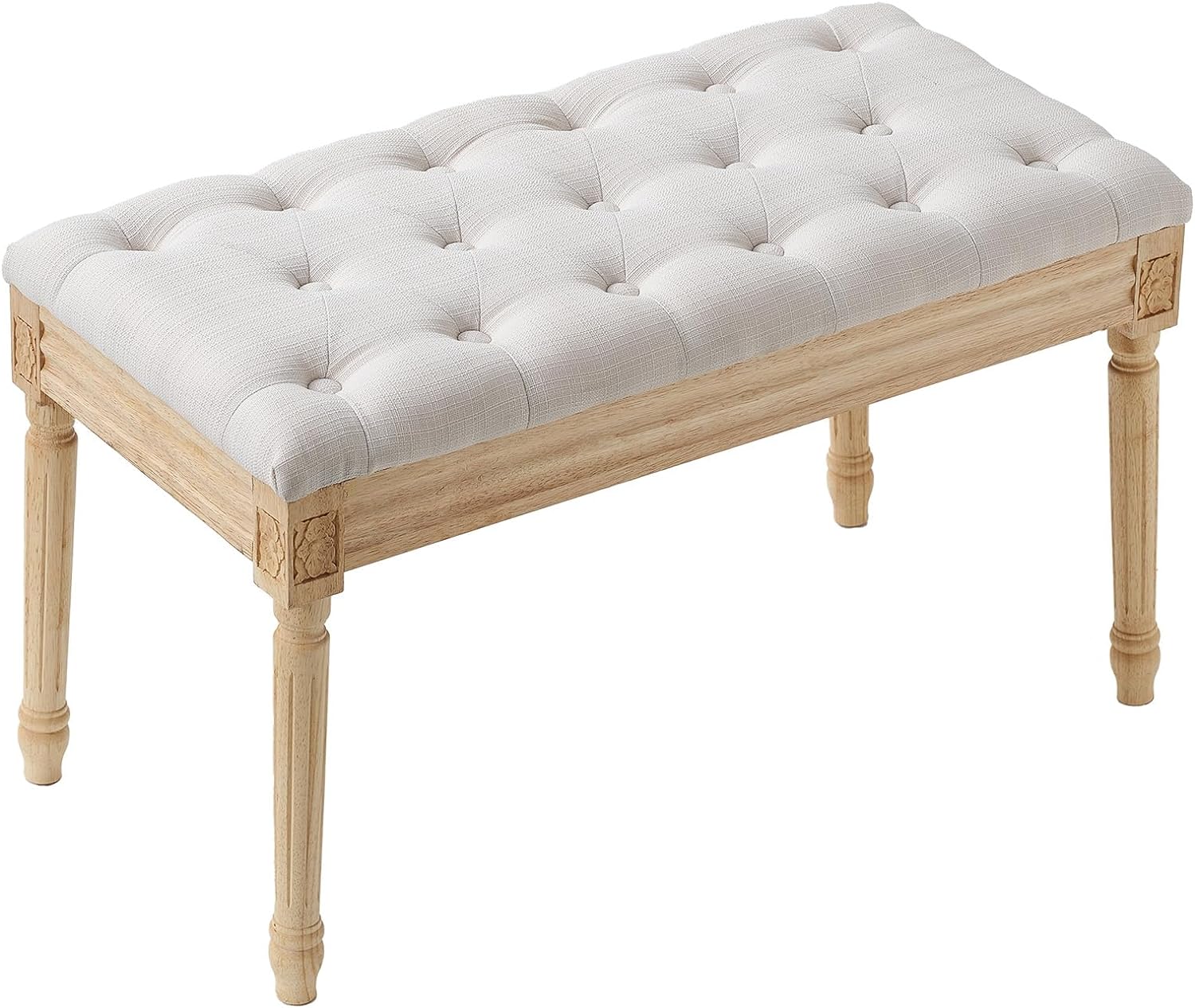 - Quality Craftsmanship, Elegantly Embellished: The bedroom bench surface features button tufting, simple and generous. The seat cushion is made of memory foam for strong rebound and comfortable sitting. The solid wood legs are meticulously carved with vintage patterns, adding a touch of taste to your life. Moreover, the rubber pads on the legs prevent scratches on any floor and reduce noise caused by moving the chair.