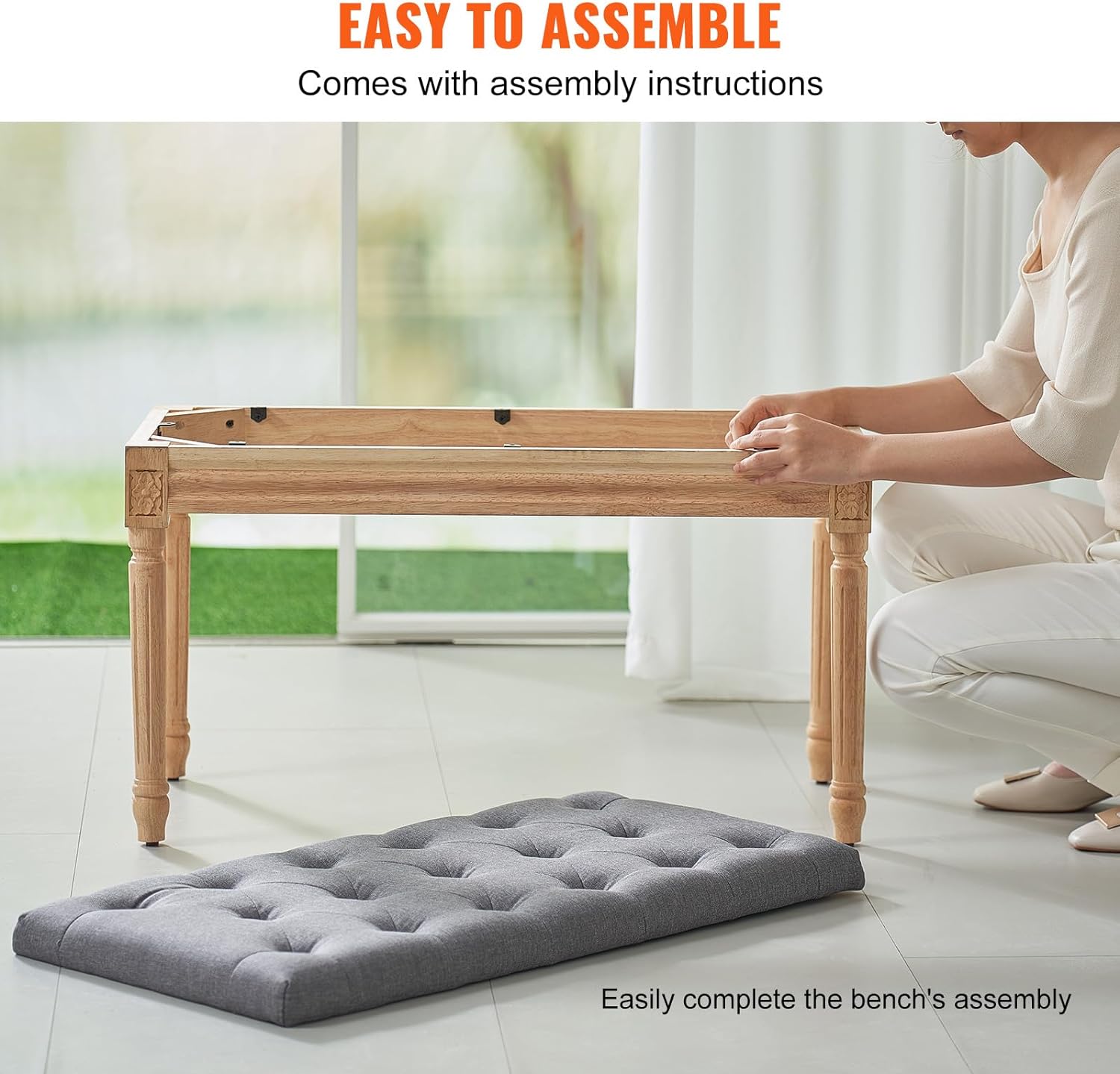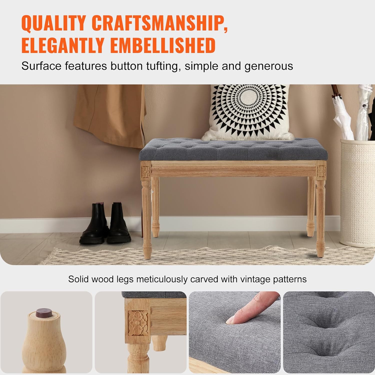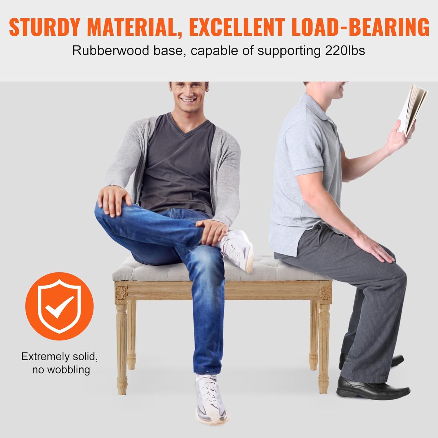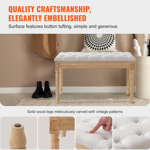 VEVOR Upholstered Bench for Bedroom end of Bed Vanity Foam Padded Cushion & Rubberwood Legs, Tufted Footrest Stool Entryway for Dining, Living Room, Piano, Hallway, 32 x 16 x 19 Inches, Beige