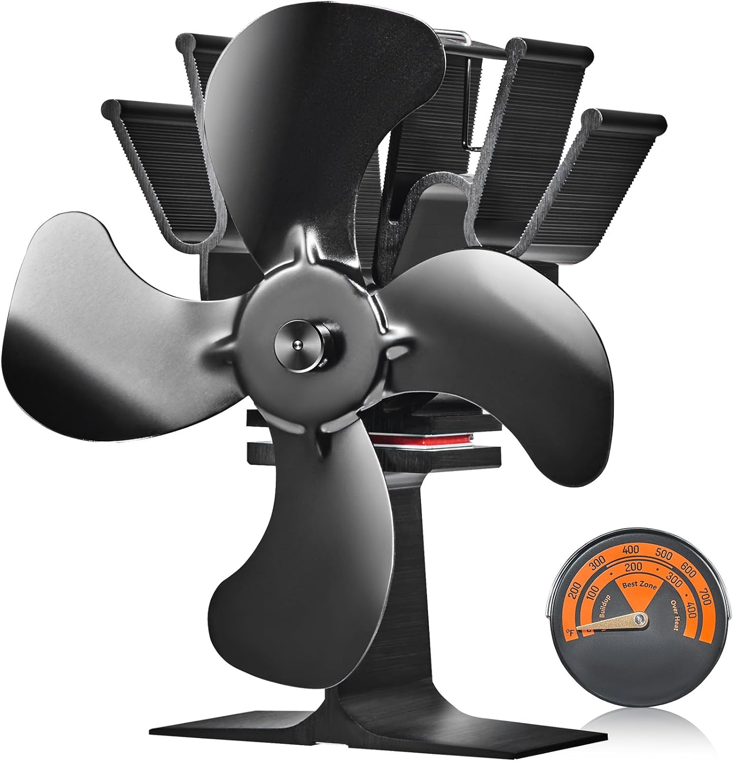 - Thoughtful Details: This fireplace fan operates simple. It starts running when the temperature reaches 176 ℉ (80 ℃). The base is equipped with a dual-metal safety device that gently lifts the front of the fan to protect the TEG and motor when the surface temperature exceeds 653 ℉ (345 ℃).