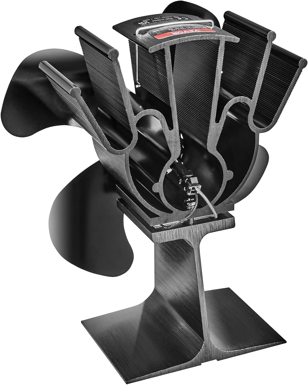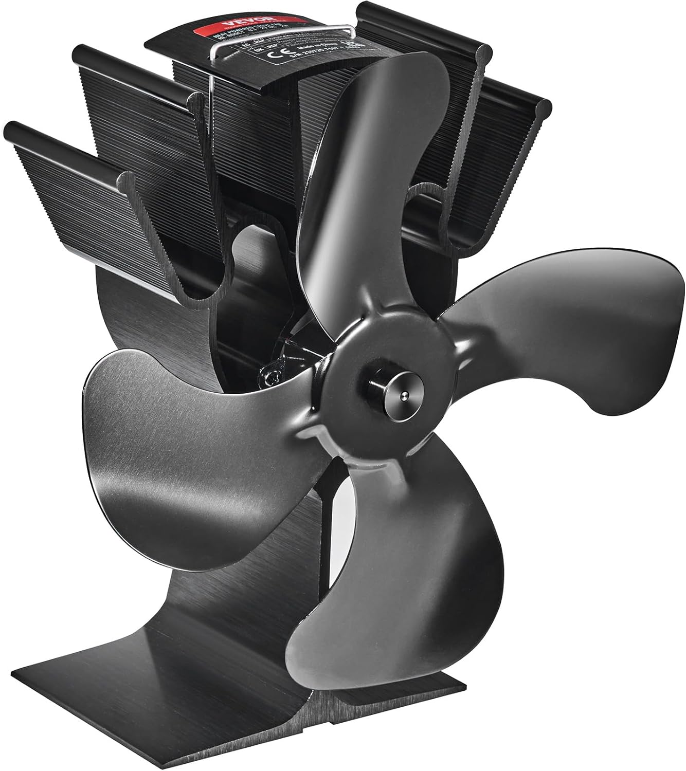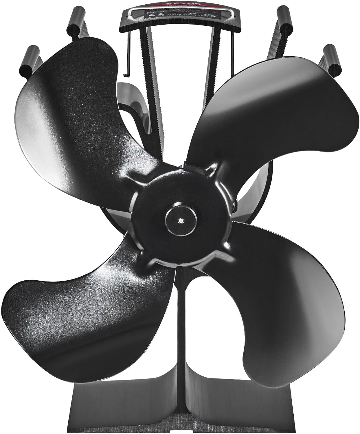 VEVOR Wood Stove Fan Heat Powered, Quiet Fireplace Fans for Wood/Log Burner/Heater, 180 CFM Max. Airflow Non Electric, Circulating Warm Air Saving Fuel, 4 Blades Upgrade Design, 9.3'' x 4.1'' x 9.1''