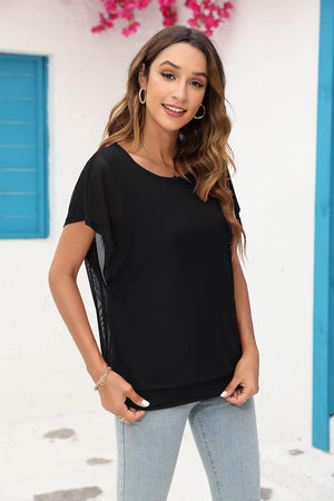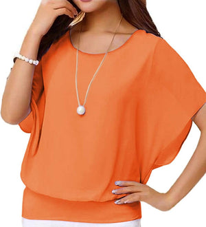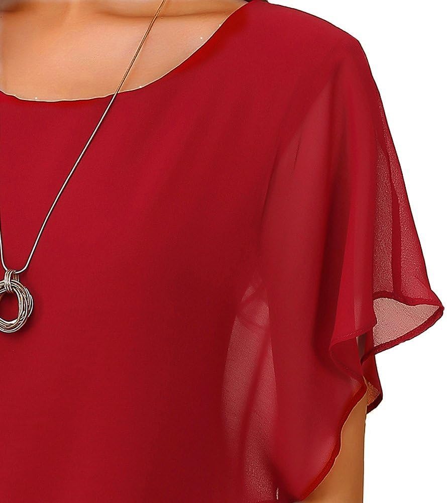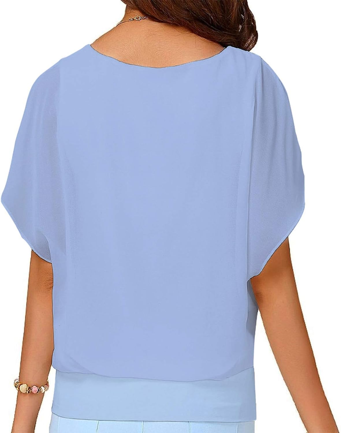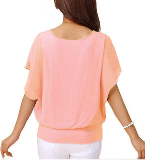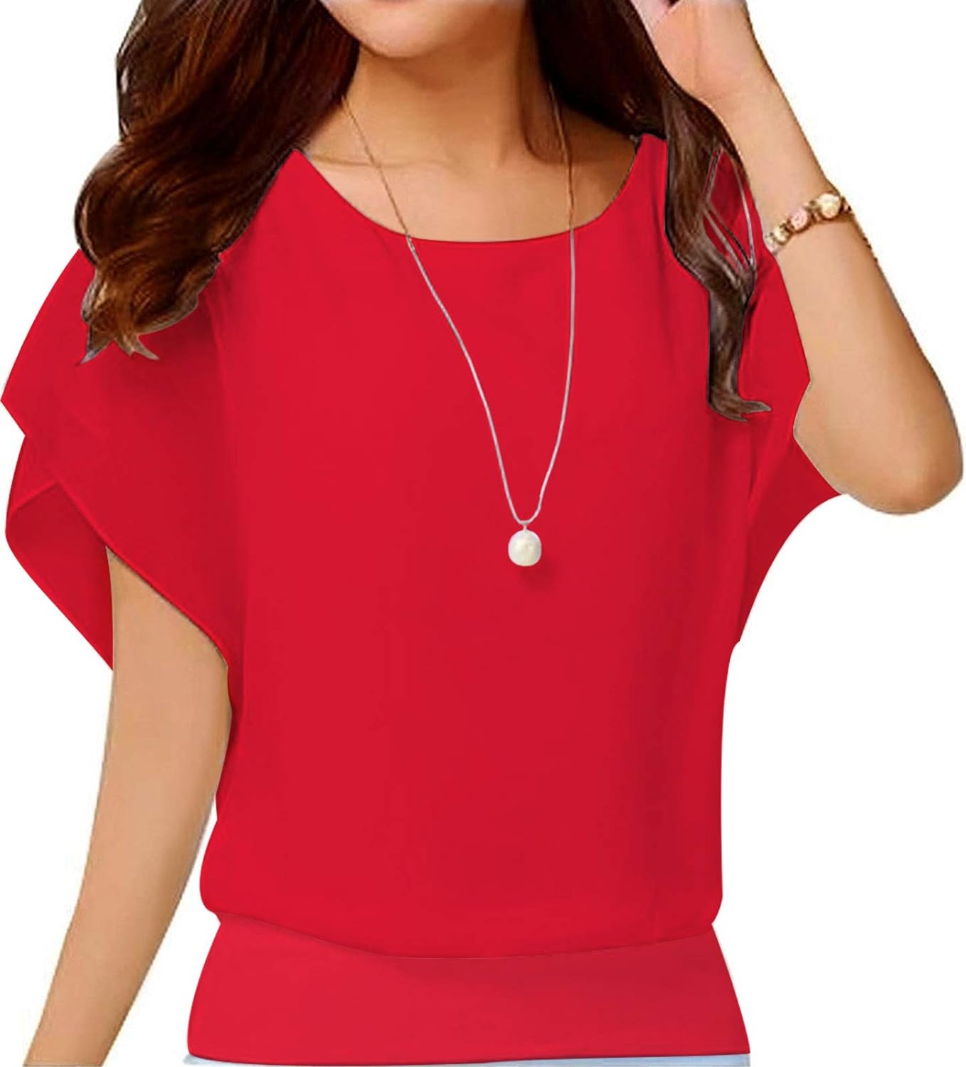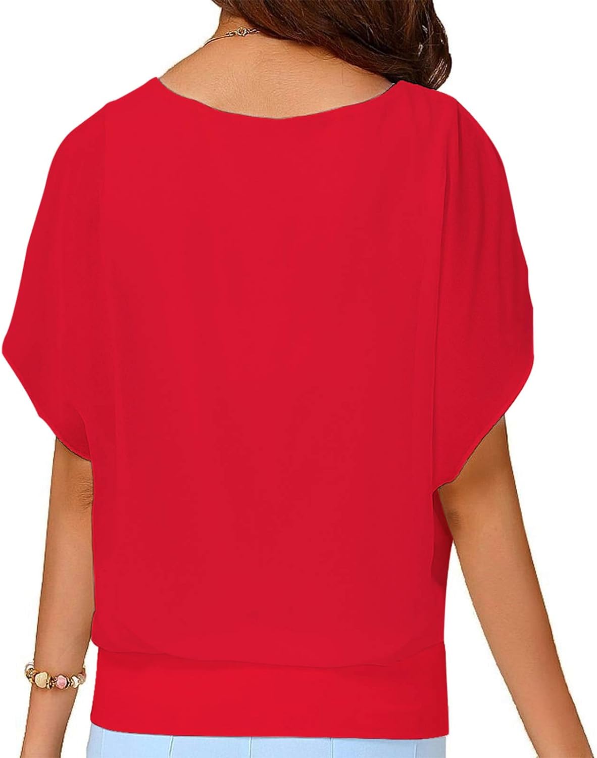 VIISHOW Women's Loose Casual Short Sleeve Chiffon Top T-Shirt Blouse