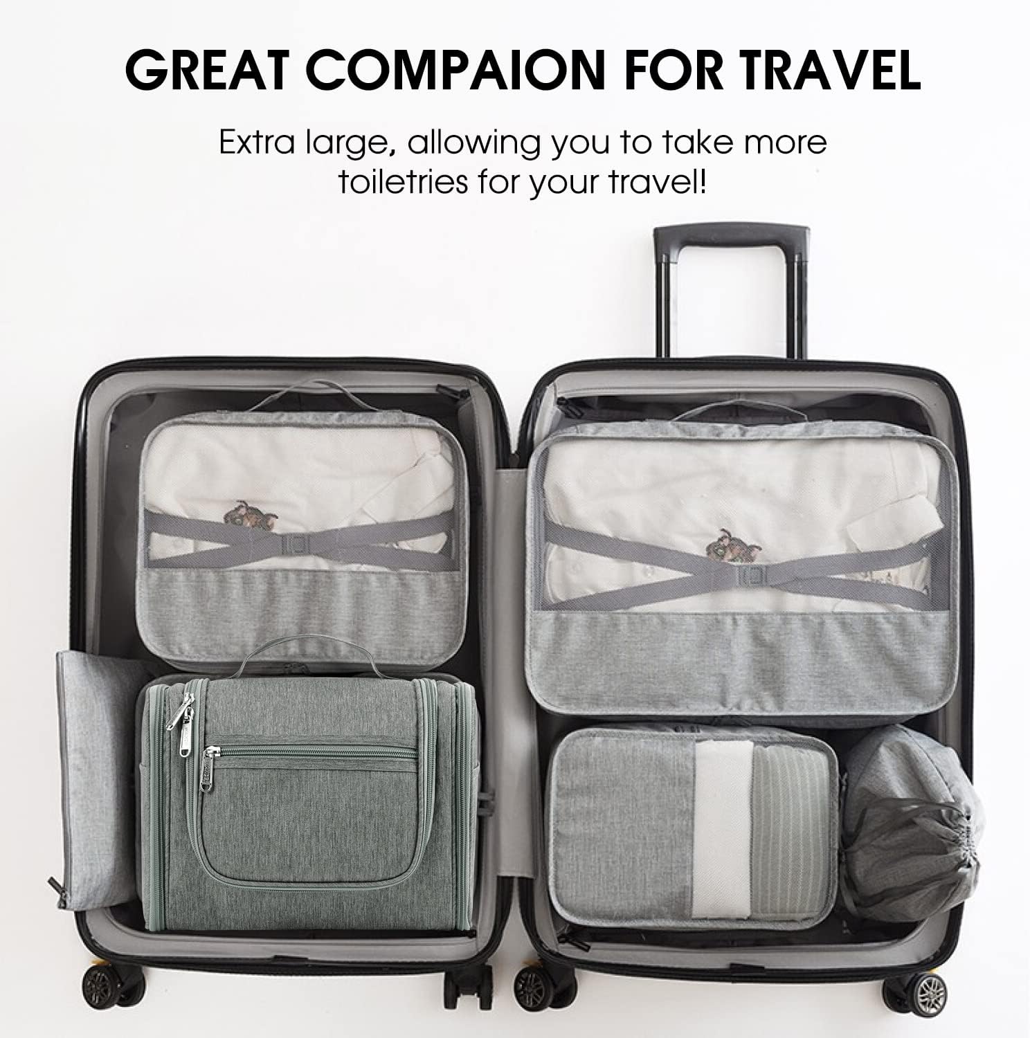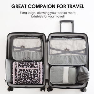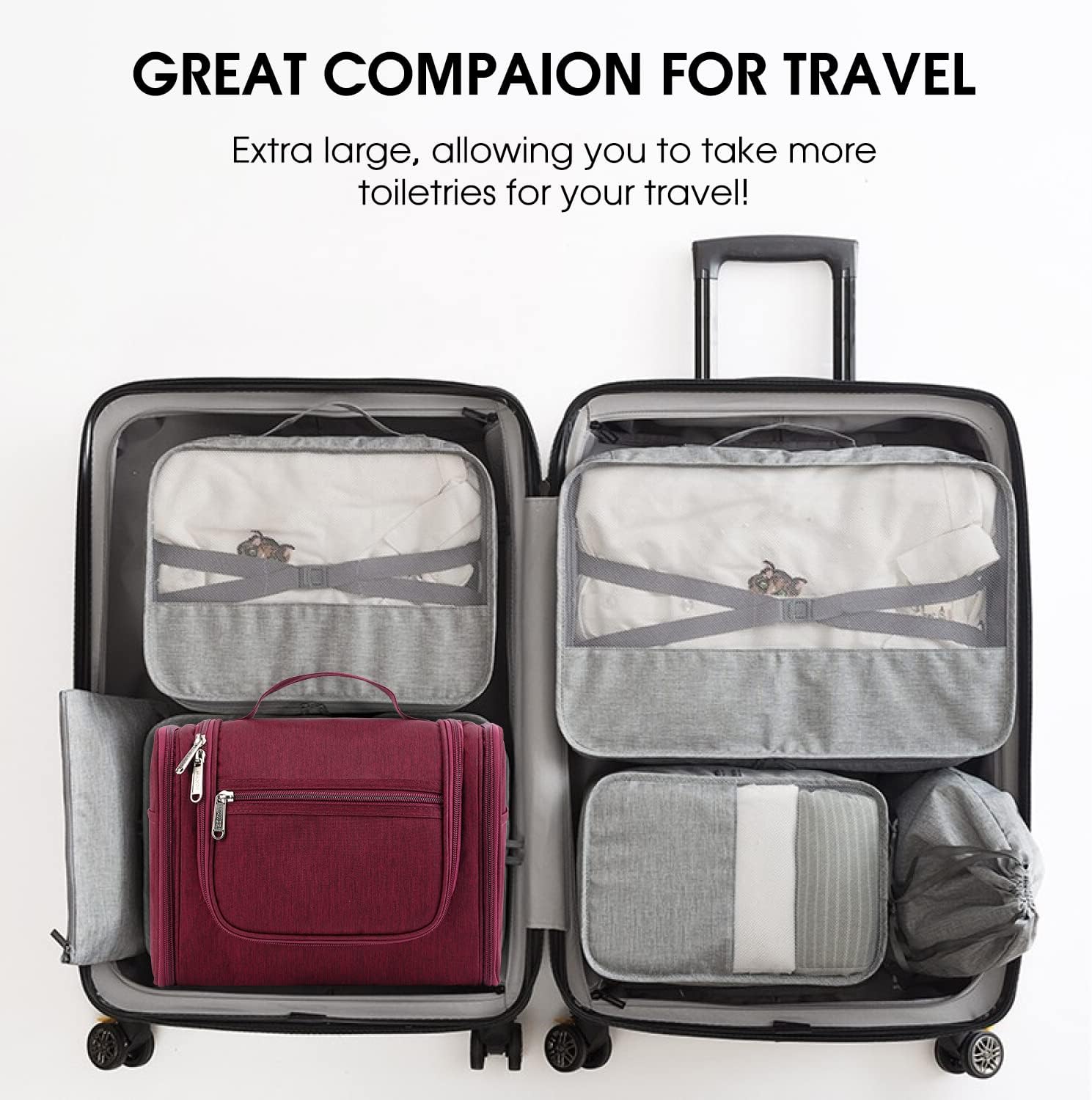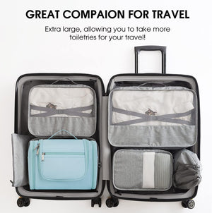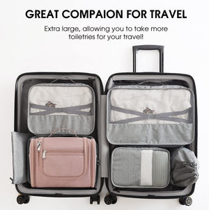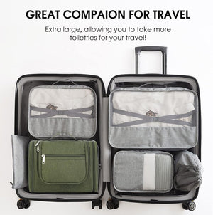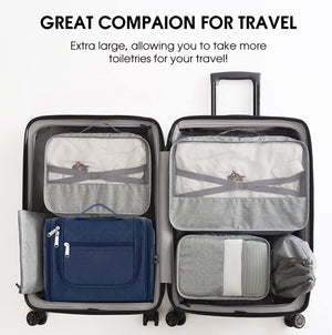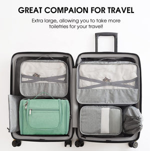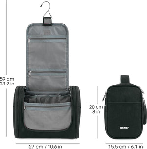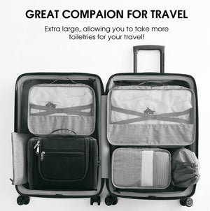 - 【ULTRA LARGE】 --- This extra large toiletry bag has a dimension of 12 x 6 x 23 IN with capacity of 7.3 liter, especially a practical height of 21 cm which could easily fit lots of essentials and toiletries as well as toothbrushes, toothbrushes, comb, makeup brush, etc.