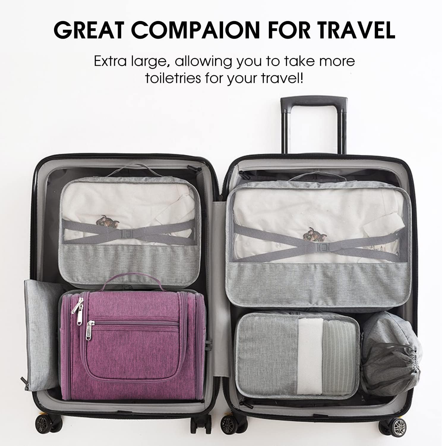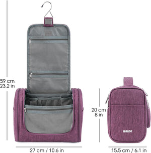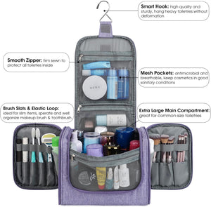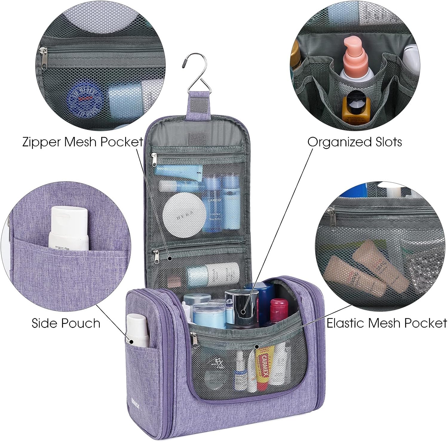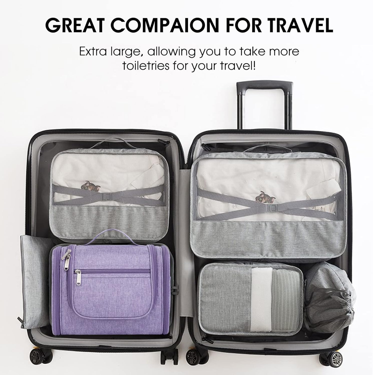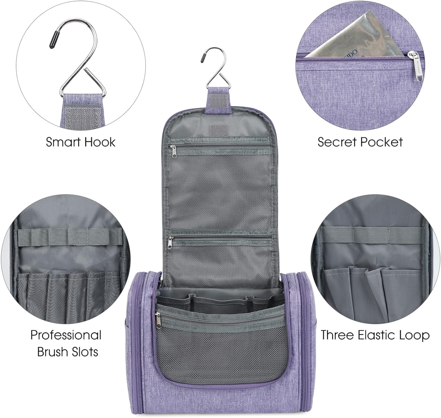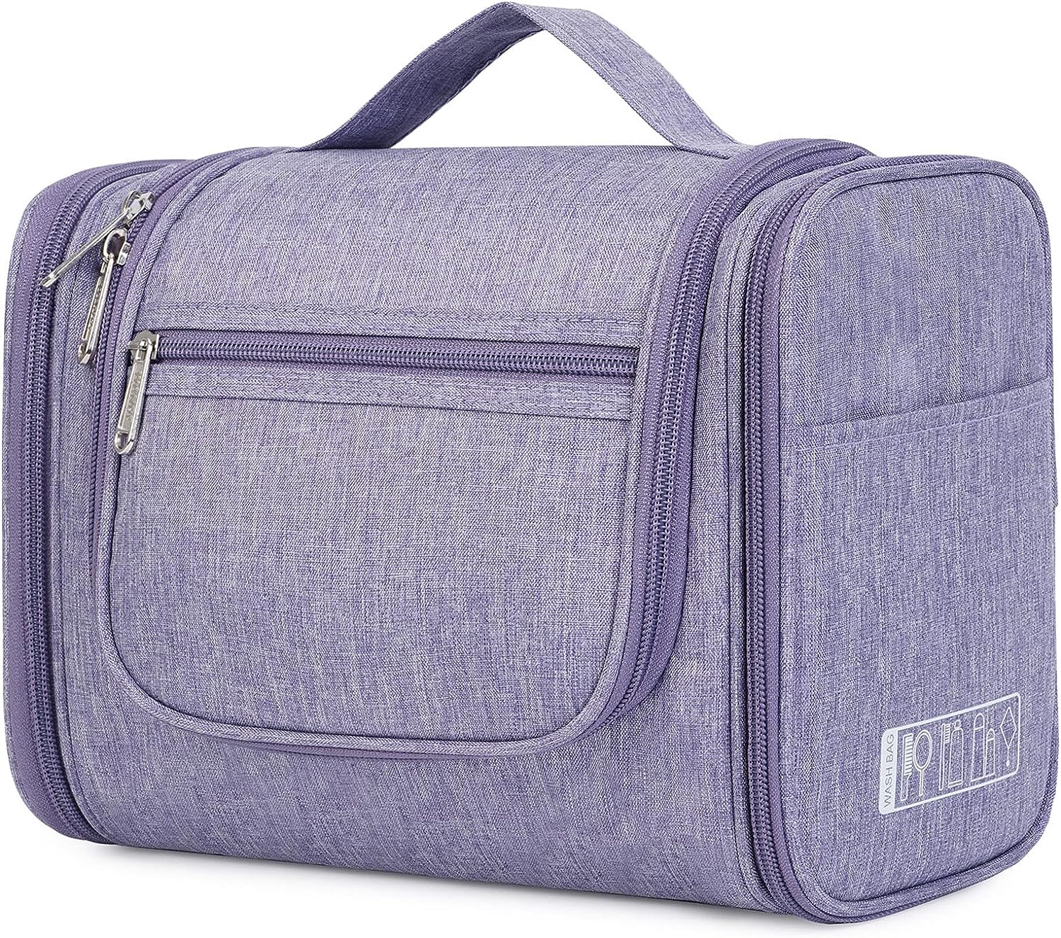 WANDF Large Hanging Toiletry Bag Travel Cosmetic Makeup Organizer Water-Resistant Shower Bathroom Bag for Women and Men, Light Purple
