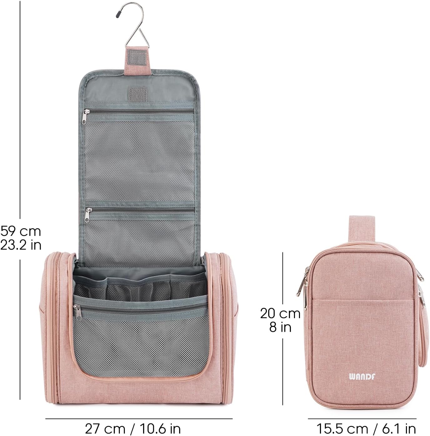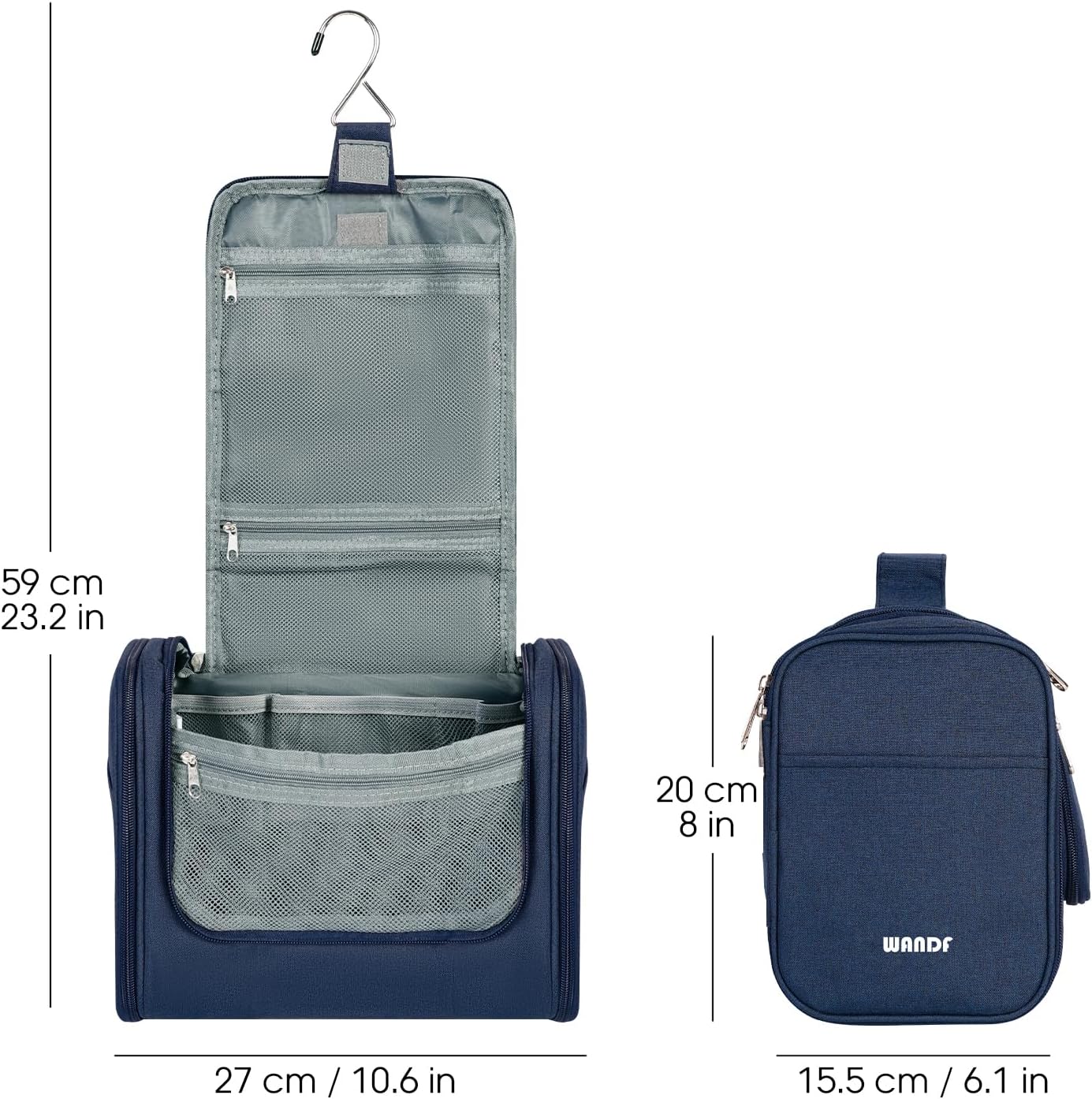 - 【EASY TO GET WHAT YOU WANT】 --- A premium quality metal hook can turn freely in any direction and hang the dorp kit on the coat hook or shower rod. Front zipper pocket makes you access medicine pills, and prescription easier. Designed with care, WANDF toiletry bag is the best choice for your travel.