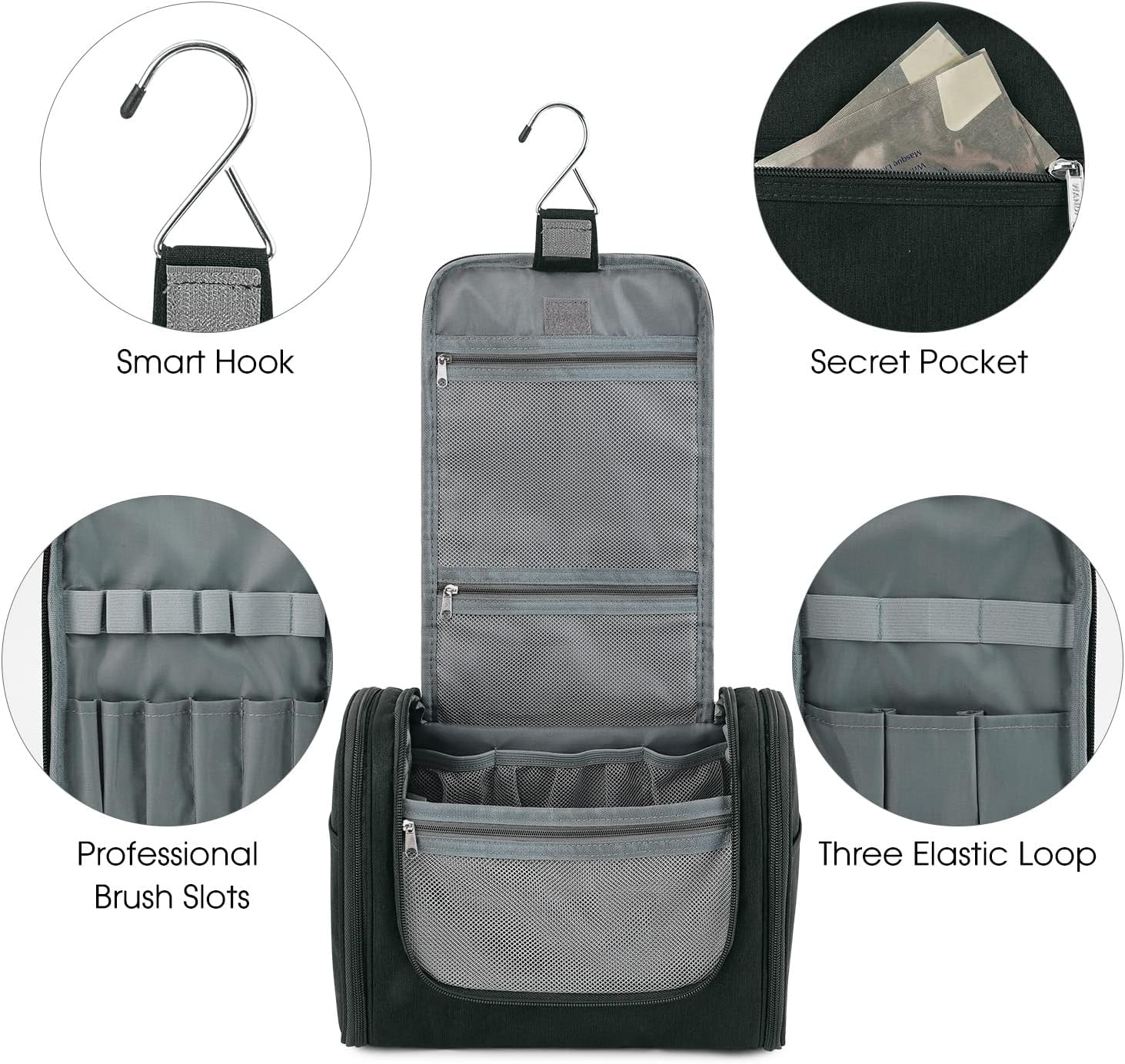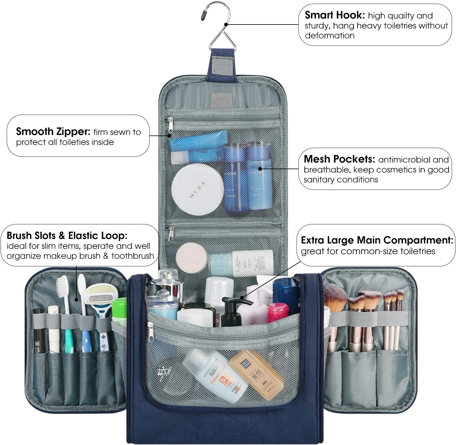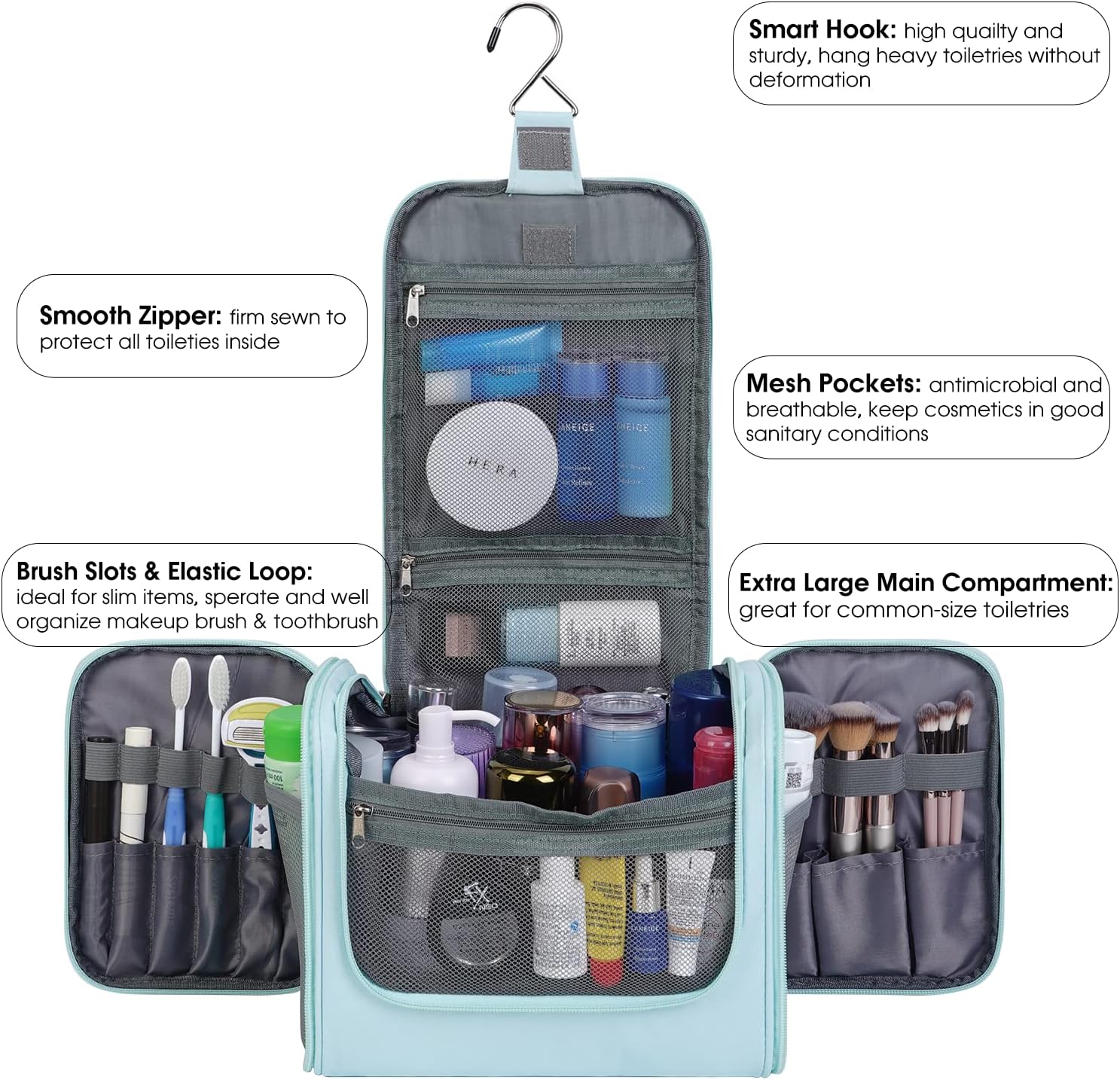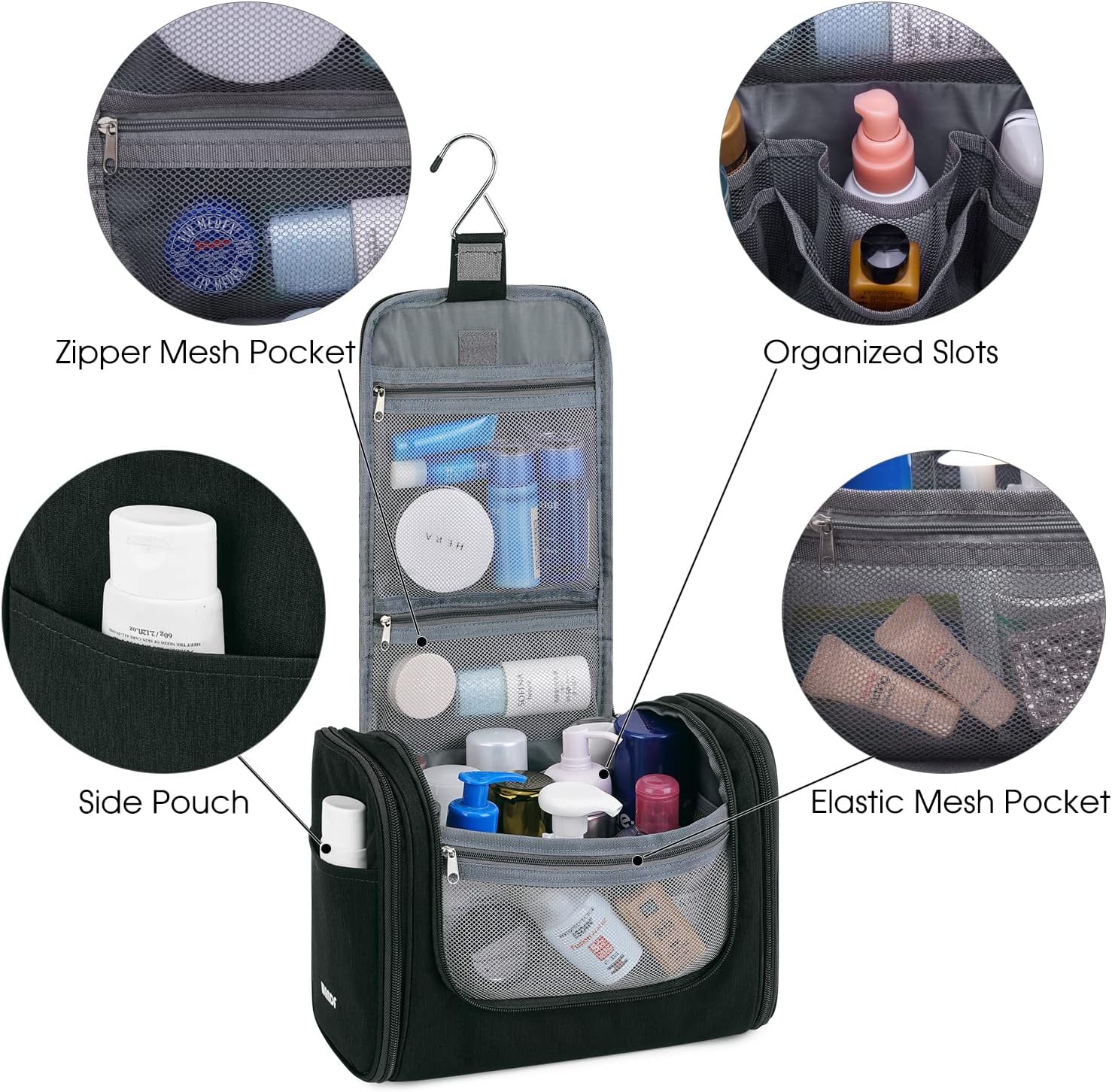 - 【PREMIUM QUALITY】 --- Come with clean stitching and strong zinc alloy zipper closure, this toiletry bag is also wearable and has a longer lifetime. Adopting with heavy duty water-resistant, light fabric, breathable mesh, SBS zippers, 360⁰ metal swivel hook and a foam layer which provides additional bottle protection, the top quality makes it a good companion for home, travel, workout shower, weekend trips, swimming, camping, hiking, etc.