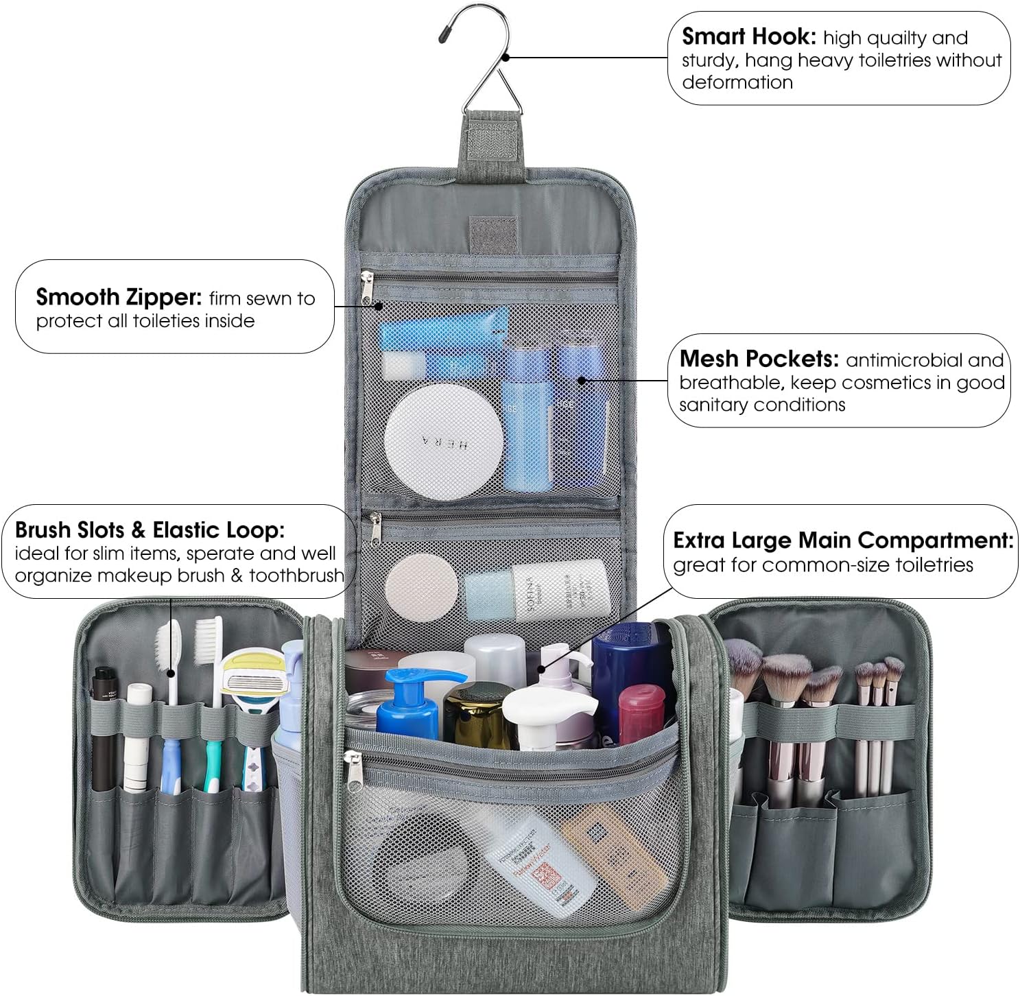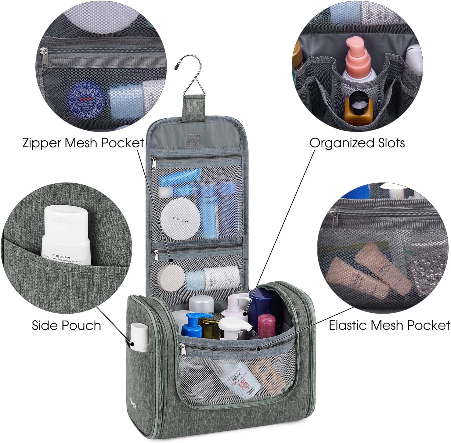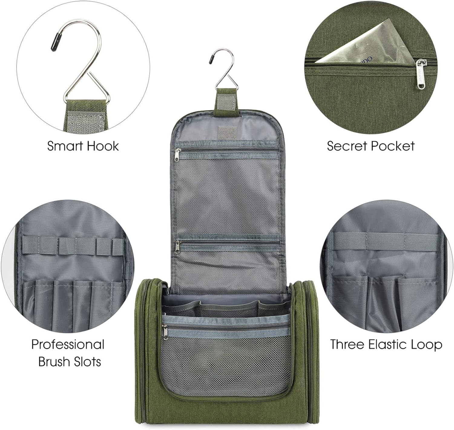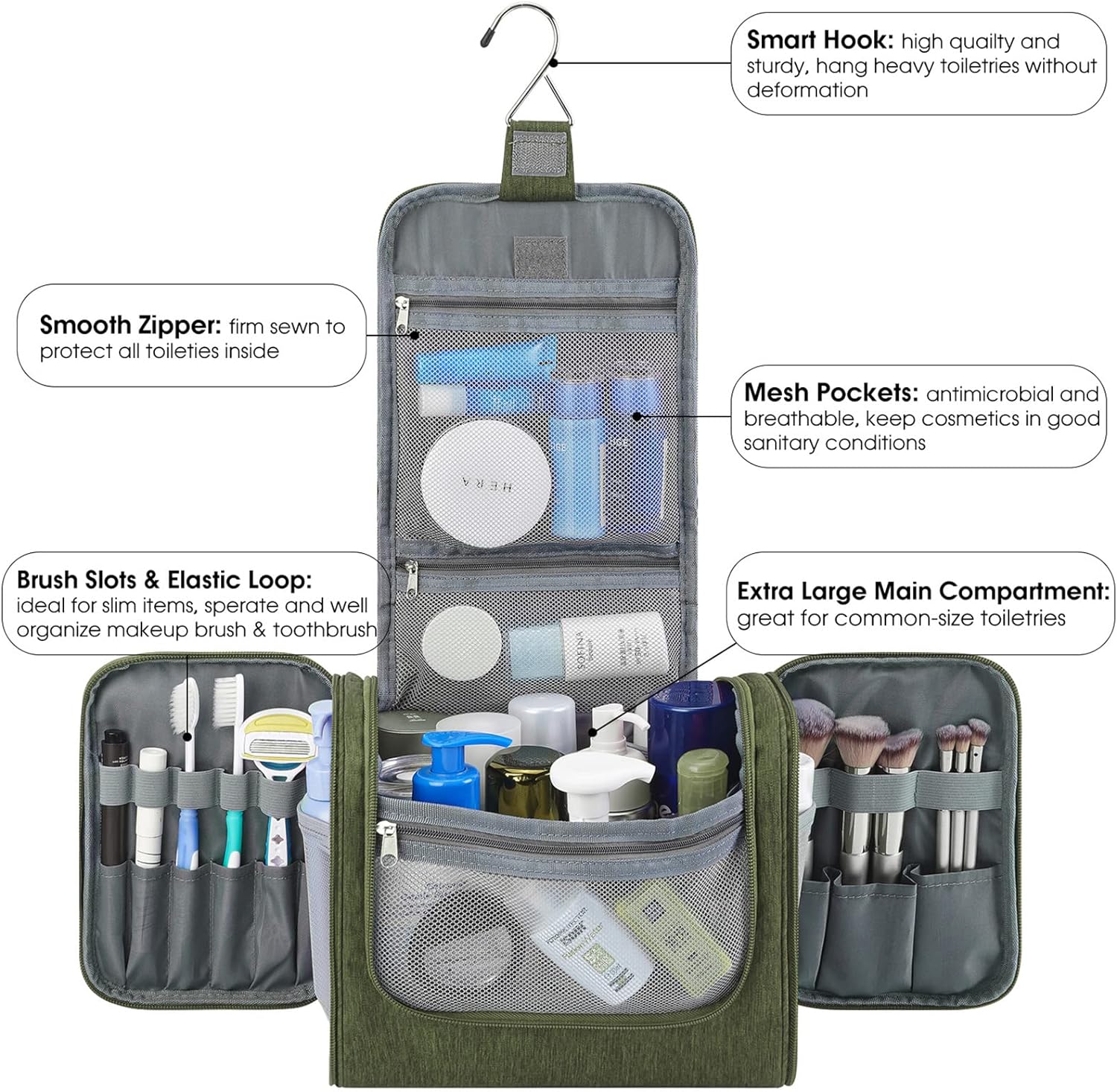 - 【PREMIUM QUALITY】 --- Come with clean stitching and strong zinc alloy zipper closure, this toiletry bag is also wearable and has a longer lifetime. Adopting with heavy duty water-resistant, light fabric, breathable mesh, SBS zippers, 360⁰ metal swivel hook and a foam layer which provides additional bottle protection, the top quality makes it a good companion for home, travel, workout shower, weekend trips, swimming, camping, hiking, etc.