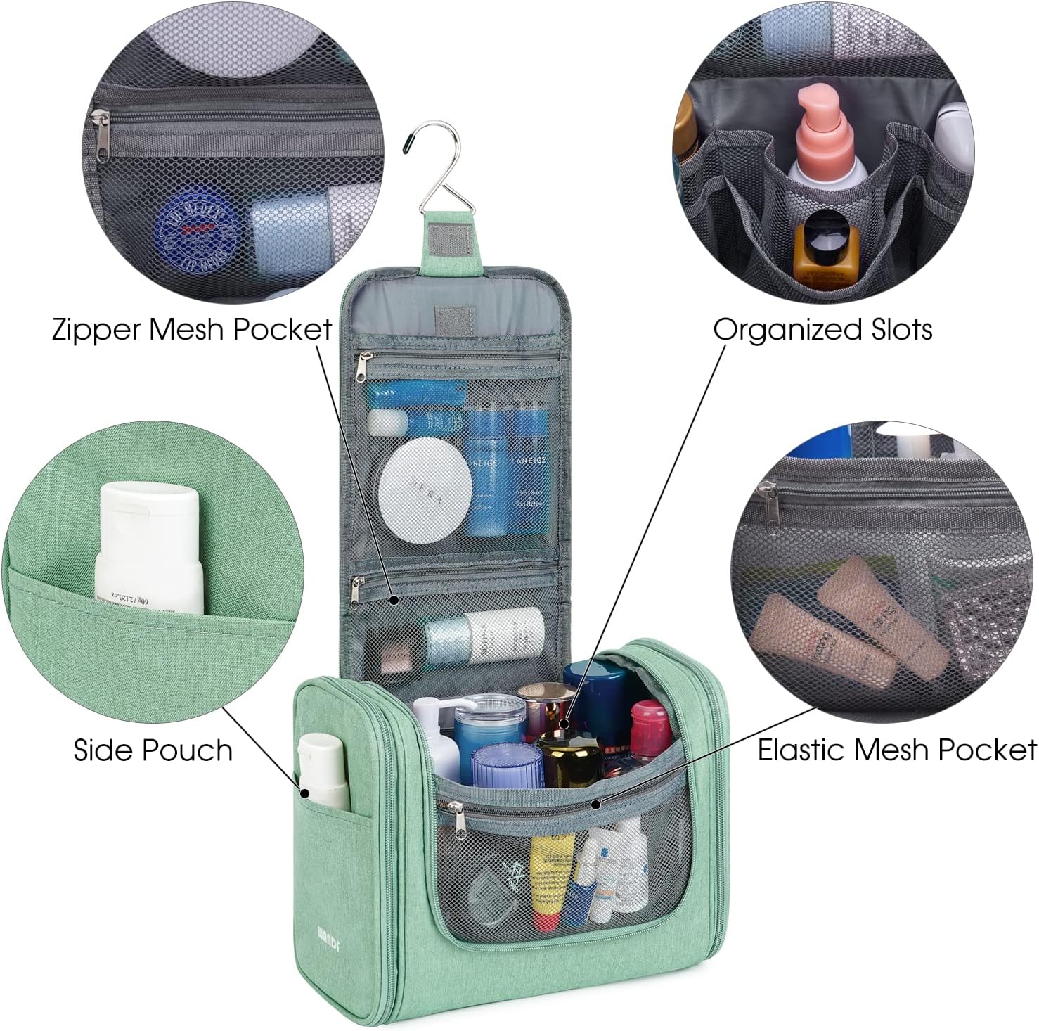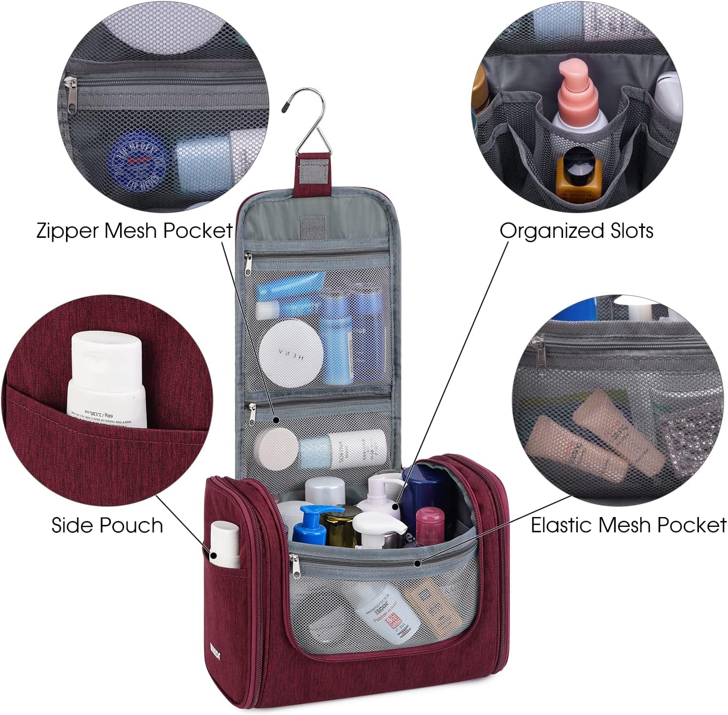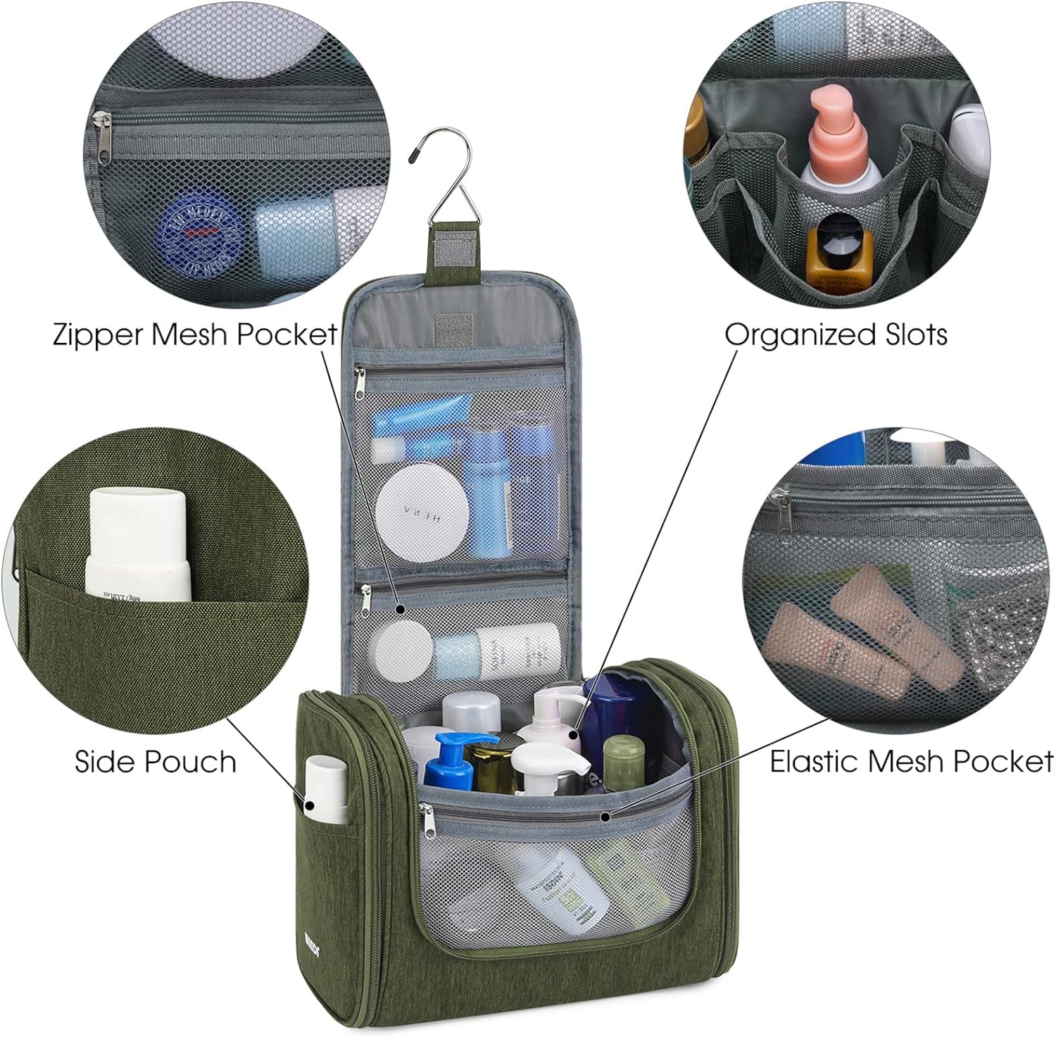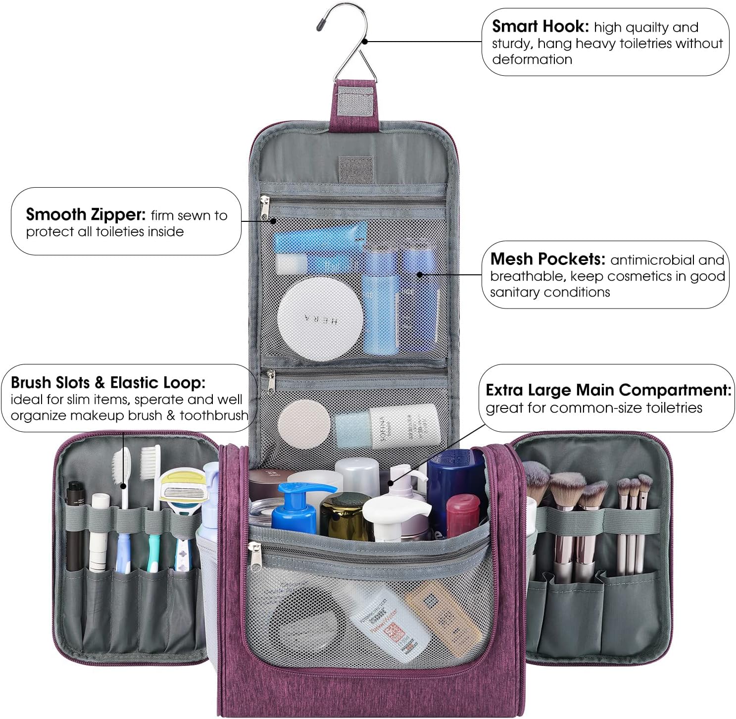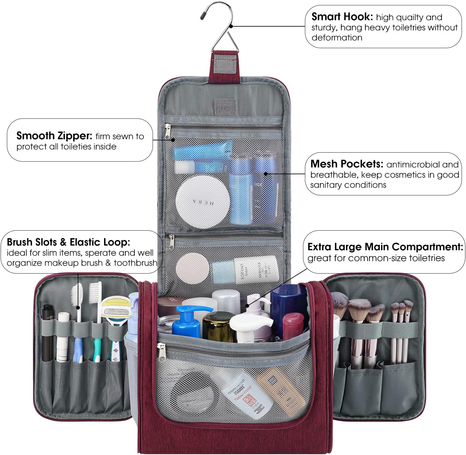 - 【PREMIUM QUALITY】 --- Come with clean stitching and strong zinc alloy zipper closure, this toiletry bag is also wearable and has a longer lifetime. Adopting with heavy duty water-resistant, light fabric, breathable mesh, SBS zippers, 360⁰ metal swivel hook and a foam layer which provides additional bottle protection, the top quality makes it a good companion for home, travel, workout shower, weekend trips, swimming, camping, hiking, etc.
