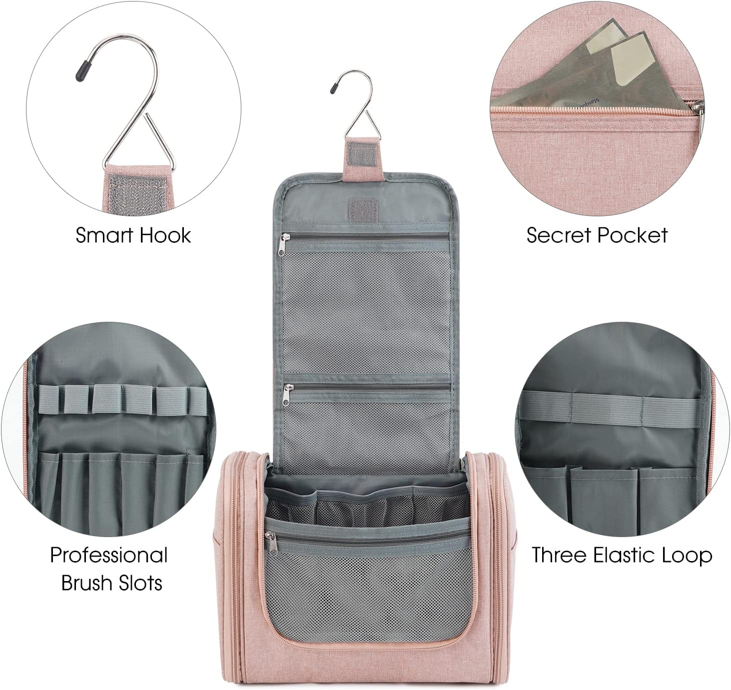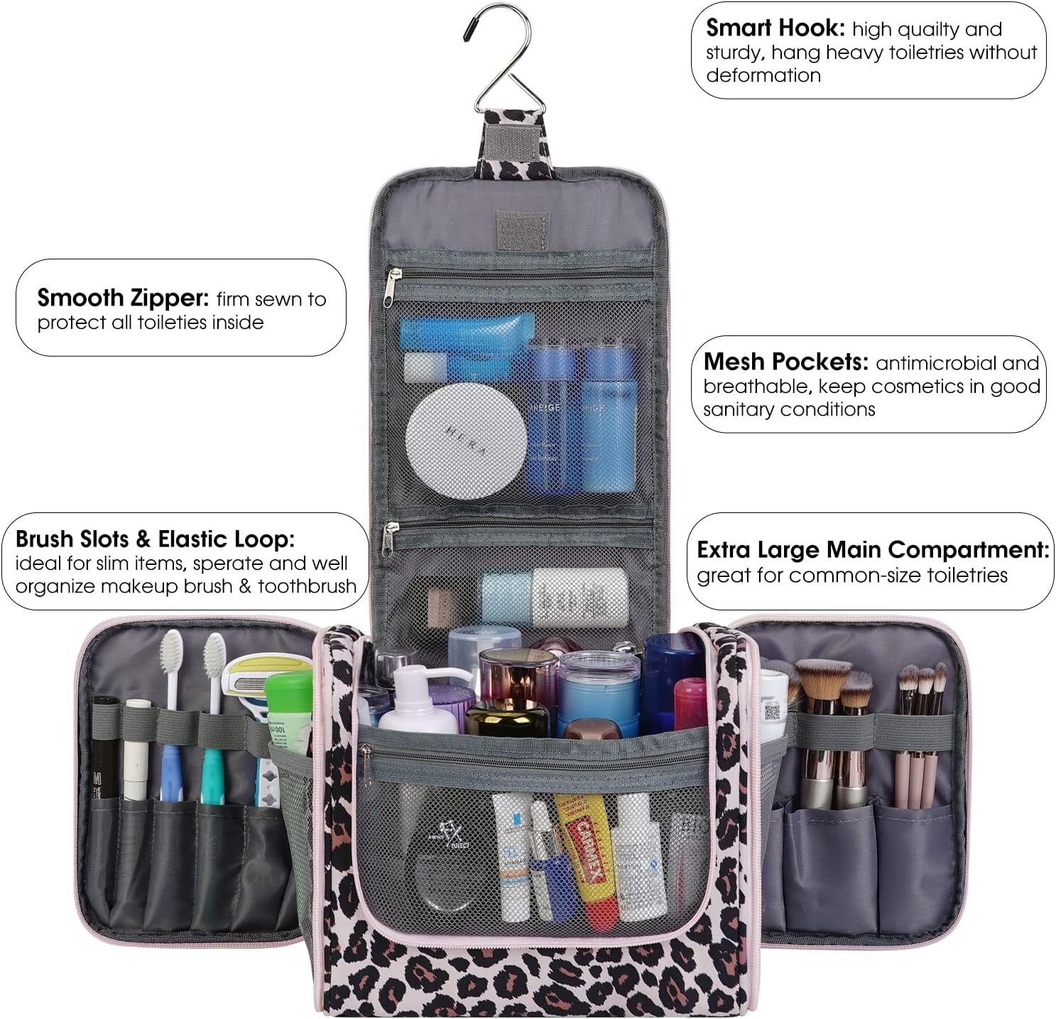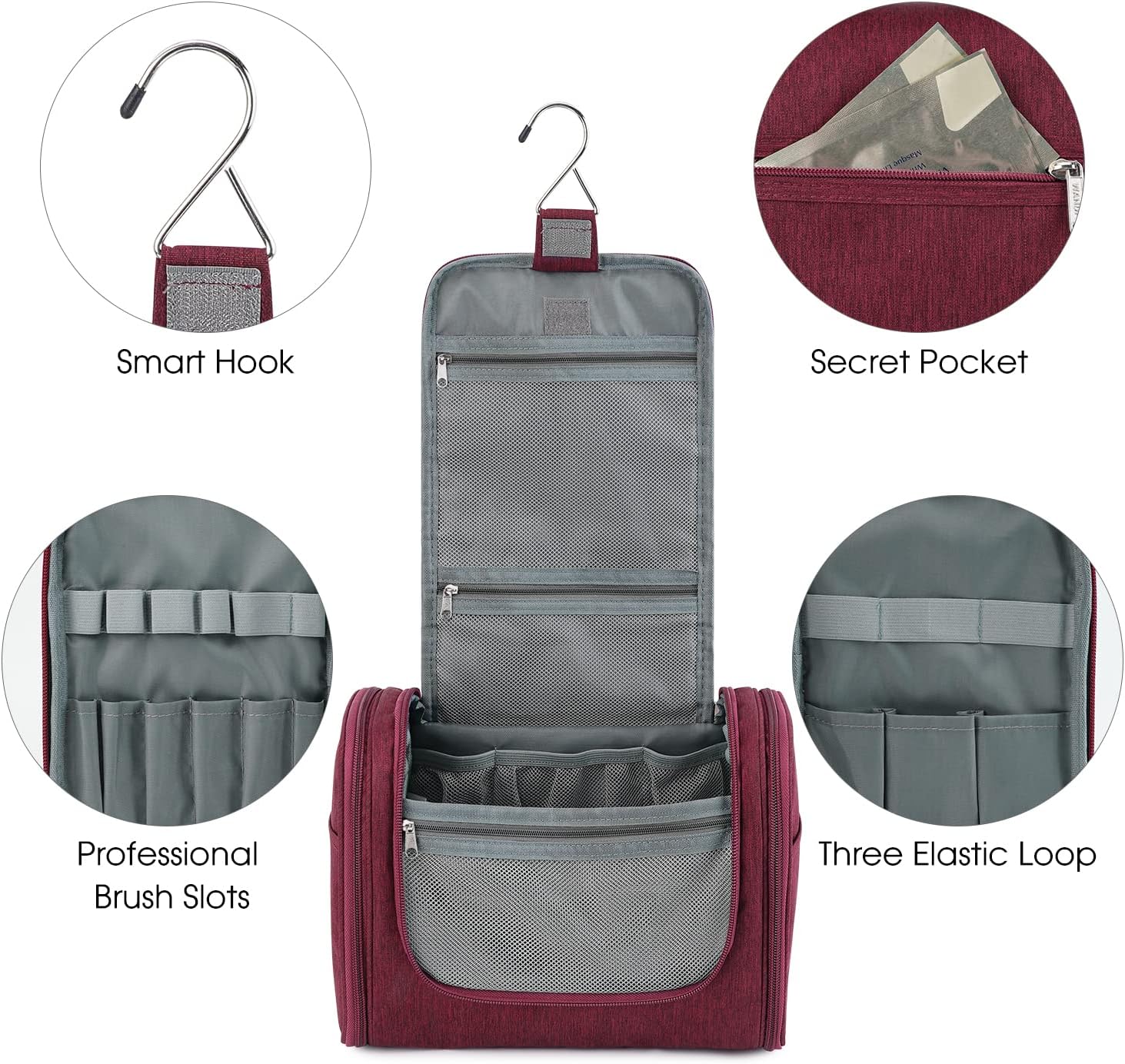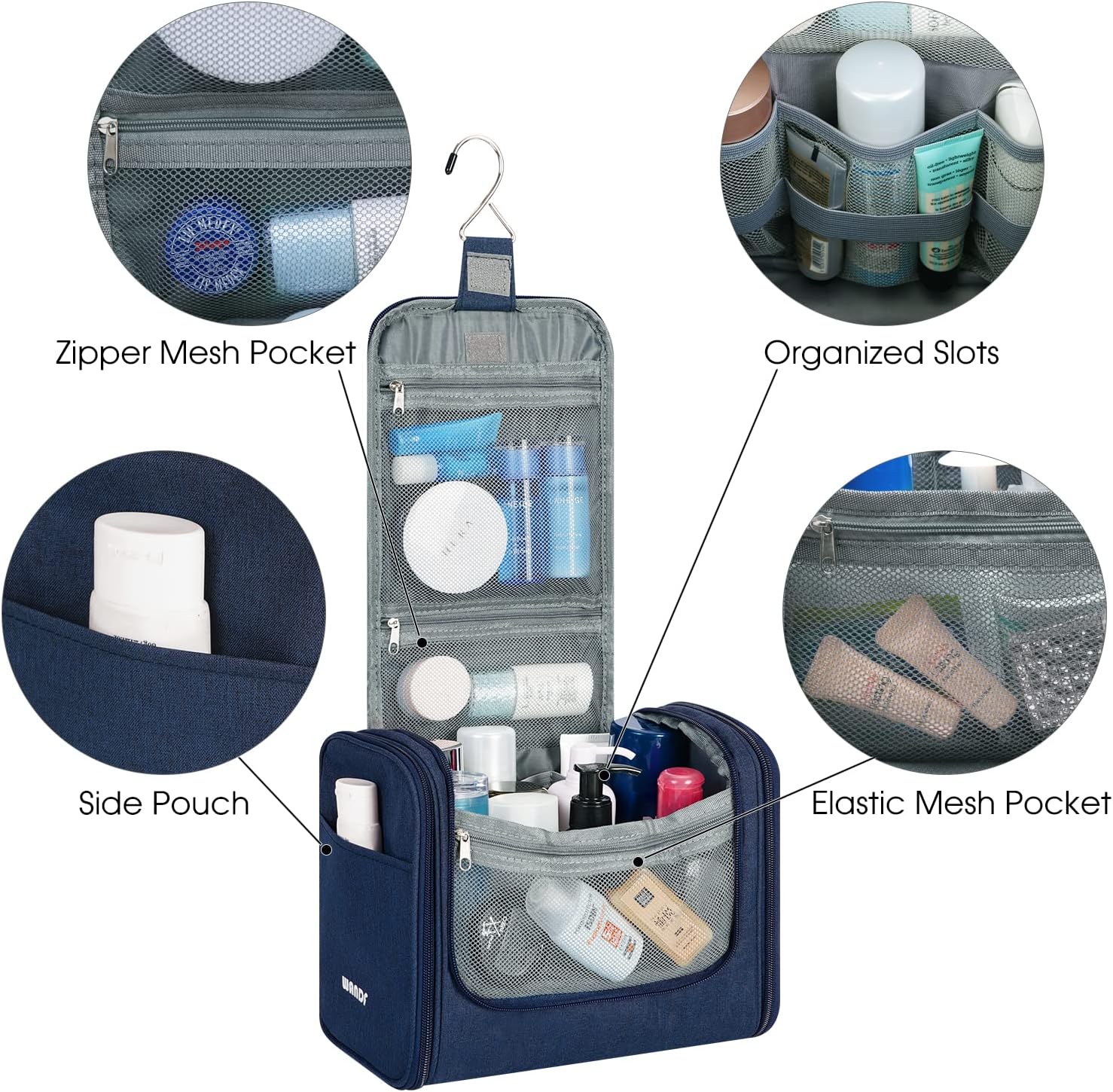 - 【PREMIUM QUALITY】 --- Come with clean stitching and strong zinc alloy zipper closure, this toiletry bag is also wearable and has a longer lifetime. Adopting with heavy duty water-resistant, light fabric, breathable mesh, SBS zippers, 360⁰ metal swivel hook and a foam layer which provides additional bottle protection, the top quality makes it a good companion for home, travel, workout shower, weekend trips, swimming, camping, hiking, etc.