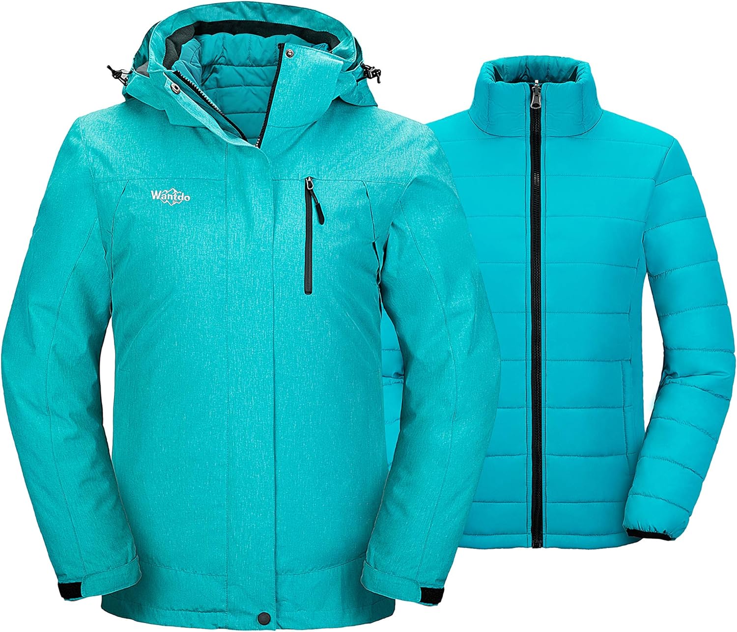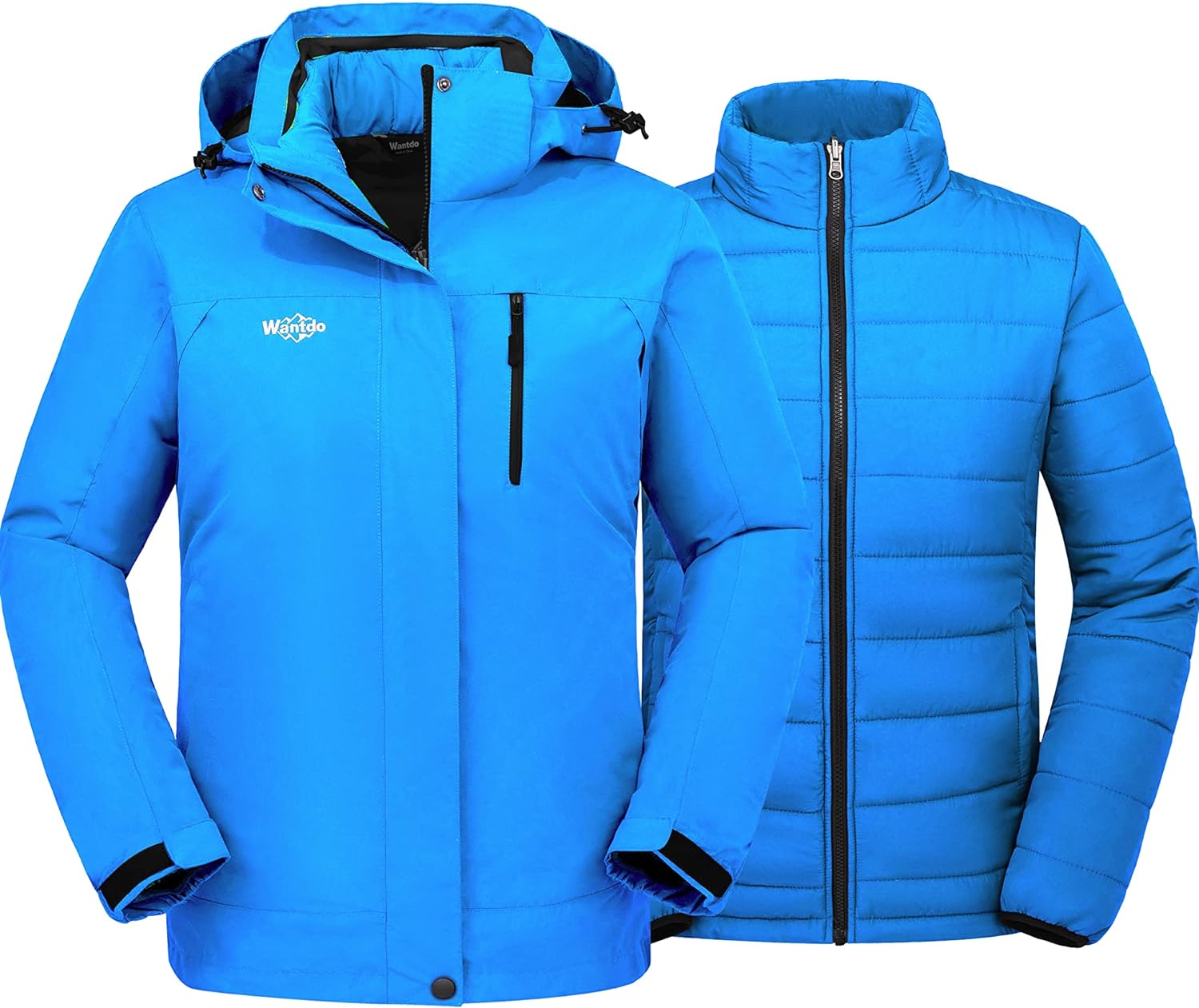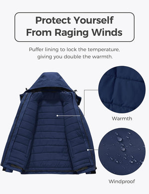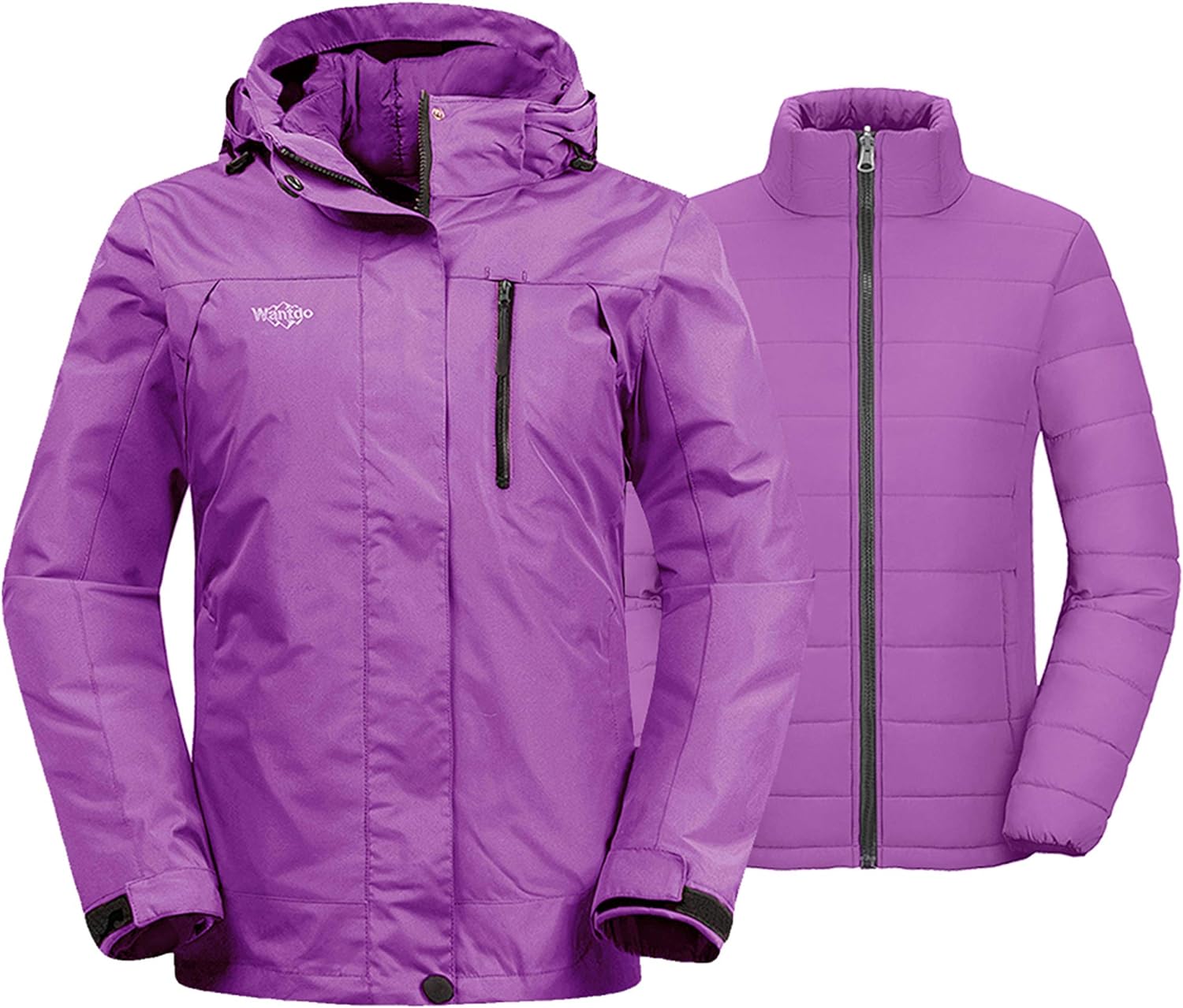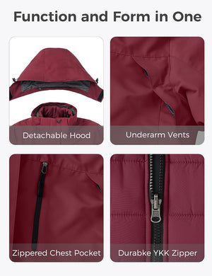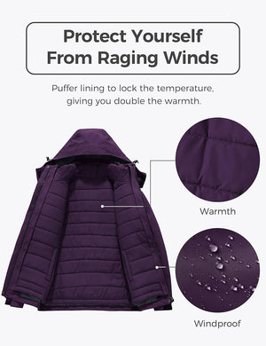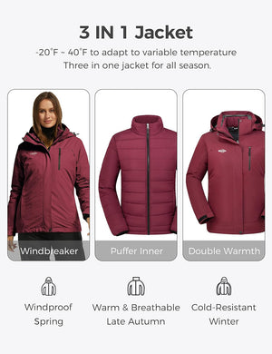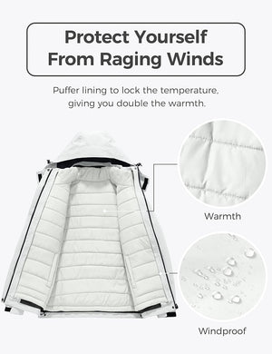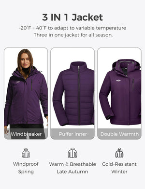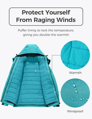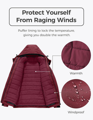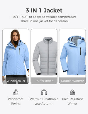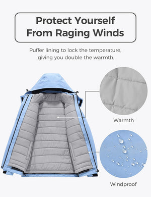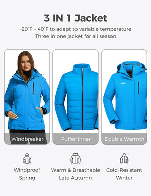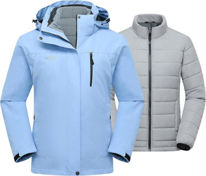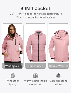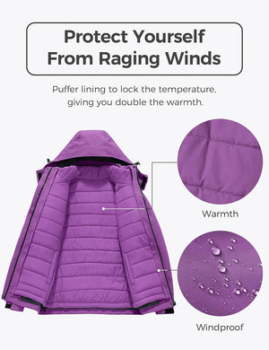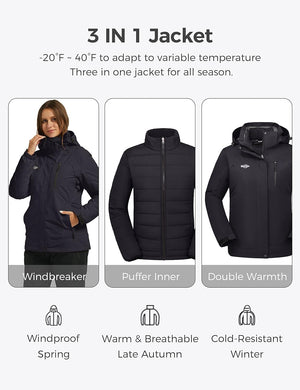 Wantdo Women's 3 in 1 Waterproof Ski Jacket Windproof Winter Snow Coat Snowboarding Jackets Warm Raincoat