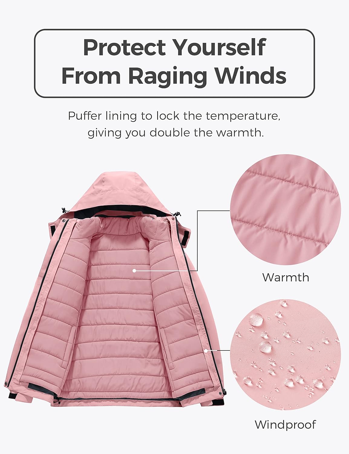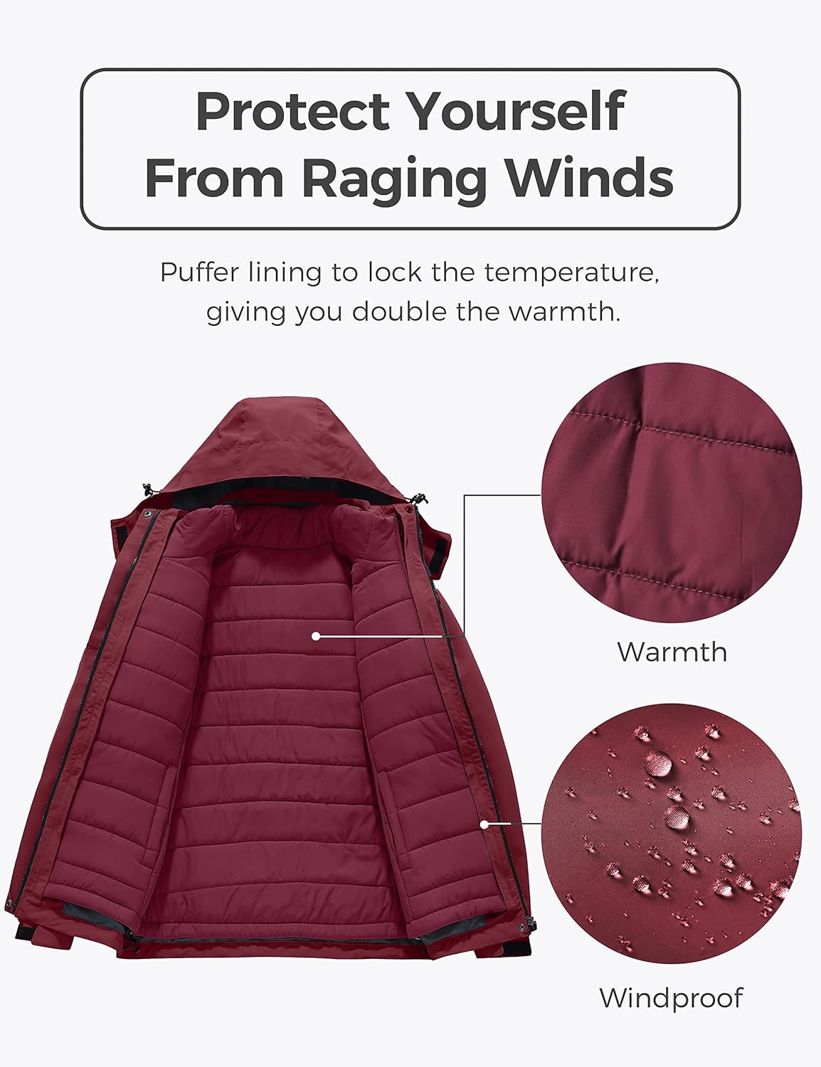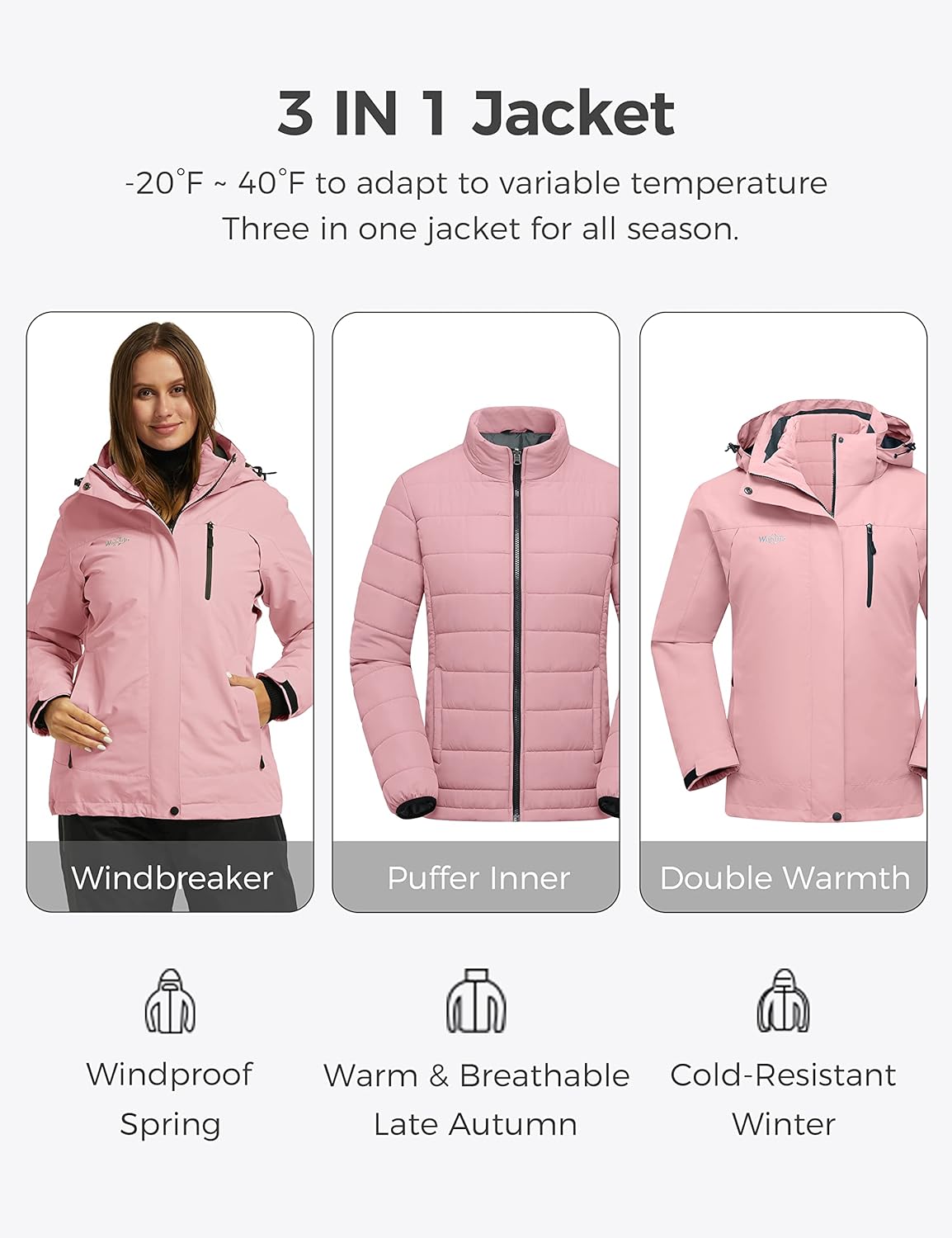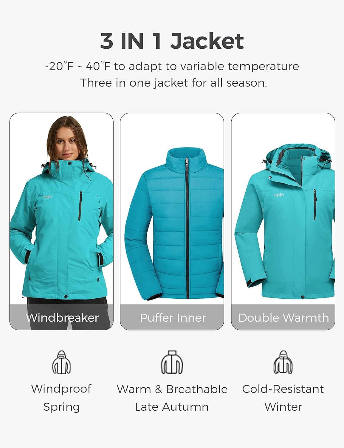 Wantdo Women's 3 in 1 Waterproof Ski Jacket Windproof Winter Snow Coat Snowboarding Jackets Warm Raincoat