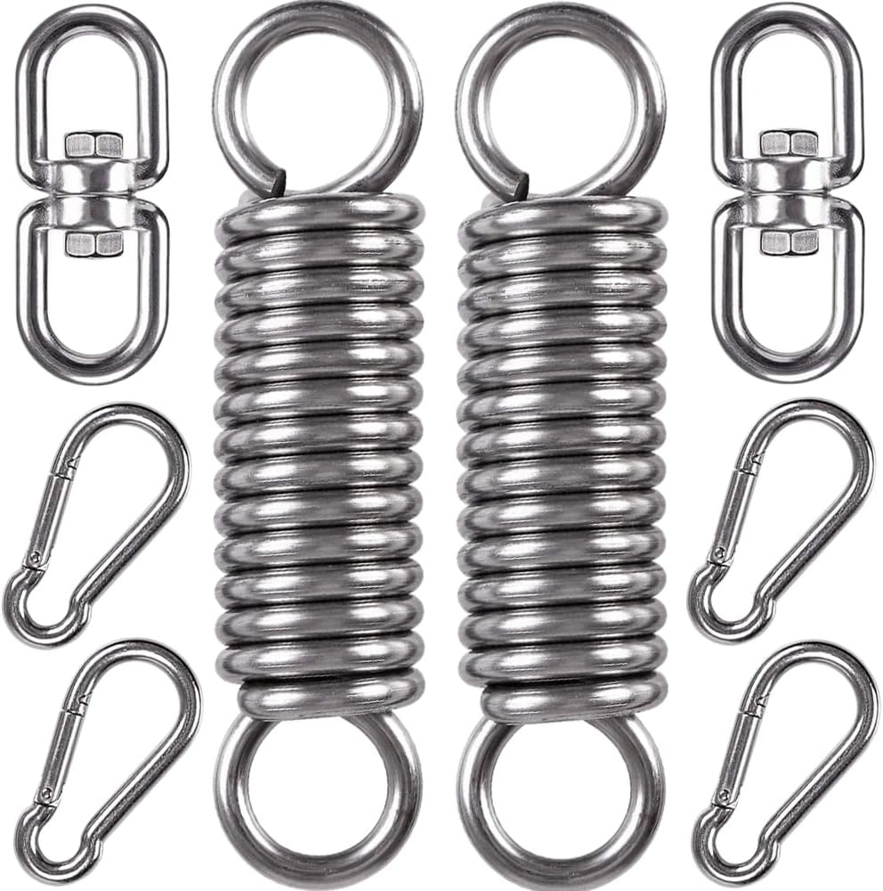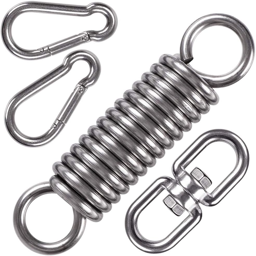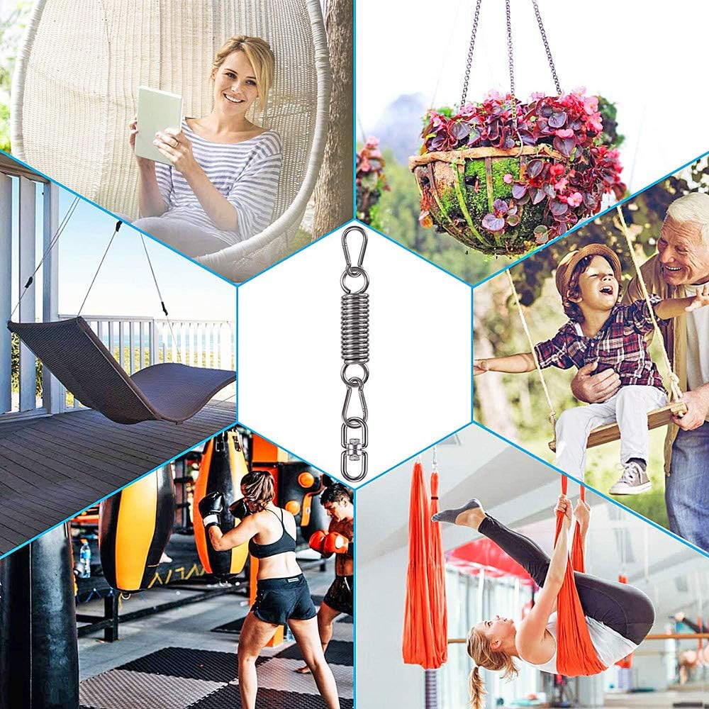 - SAFE AND SECURE: the springs are tightly coiled together for effective shock absorption enhancing the comfort of your porch swing with every movement, enhancing your comfort and protecting your overhead support.which is safe for adults and children of all ages,the swivel hook allows 360 degree rotation without any tangling or twisting, and the snap hook will securely clip onto your hammock or swinging chair.