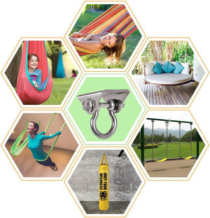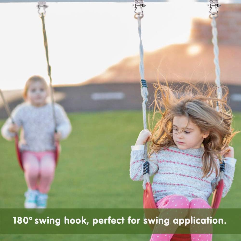 Ideal for multi-child swings, indoors or outdoors for sports playscape accessories, hammock cradle chair suspension hardware kit, porch swing, bench swing, yoga swing, hammock swing, porch swing springs, gymnastics rings equipment, swing seats belts, baby infant toddler buckets swings, nest , web, cocoons, a ez wood frame bracket, flying antigravity aerial yoga sling inversion, climbing rope ladder with platforms or hanging chair, sky chair, orbit, net, pod, swing-set brackets kit, door, swivel hook snap or other swing set stuff.hanging swing n slide bracket accessories or swings seat, also hangs commercial grade swings, trapeze rings swings, super spinner.