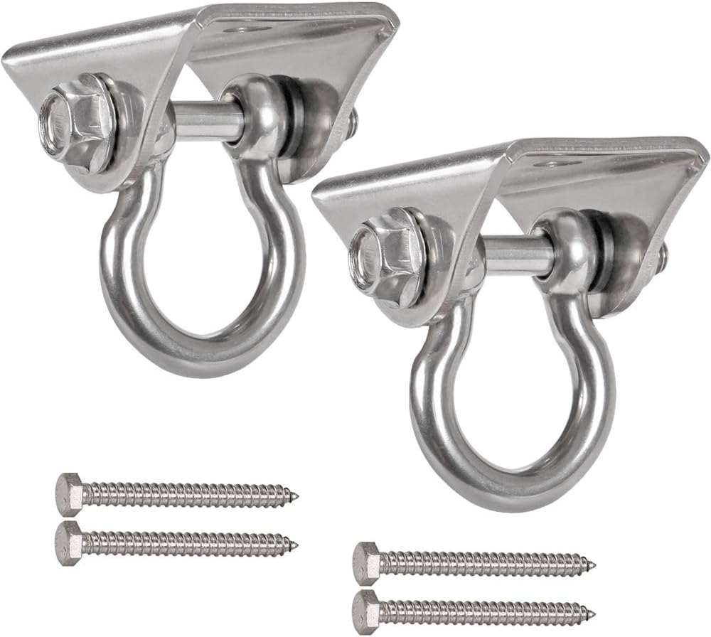 - WIDELY USED: Perfect swing set brackets for porch swing chair set, baby equipment swing toys, jungle hammock, gymnastics equipment for toddlers, porch swing springs, suspension strap trainer, battle ropes, olympic rings, gym accessories, heavy boxing punching bag sandbag, yoga swings, tire pod bed swing, gymnastics rings and hanging aerial yoga inversion trapeze swings seats, it is flexible in use and can suspend any other heavy object.