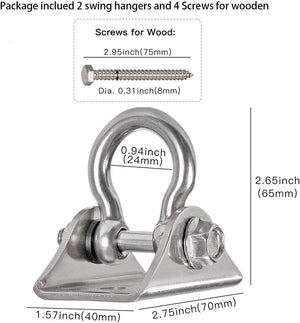 The high quality swing hangers come complete with 2 mounting hardware and 4 screws which fit wood application(expention bolt not included)