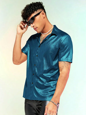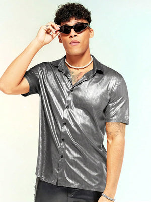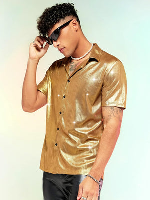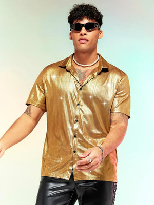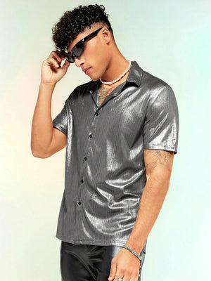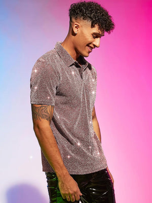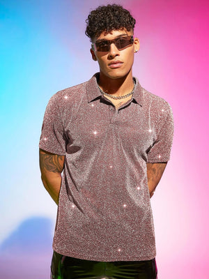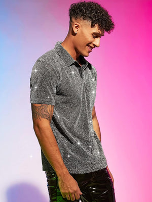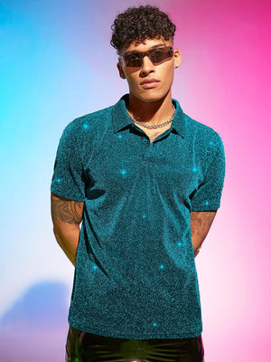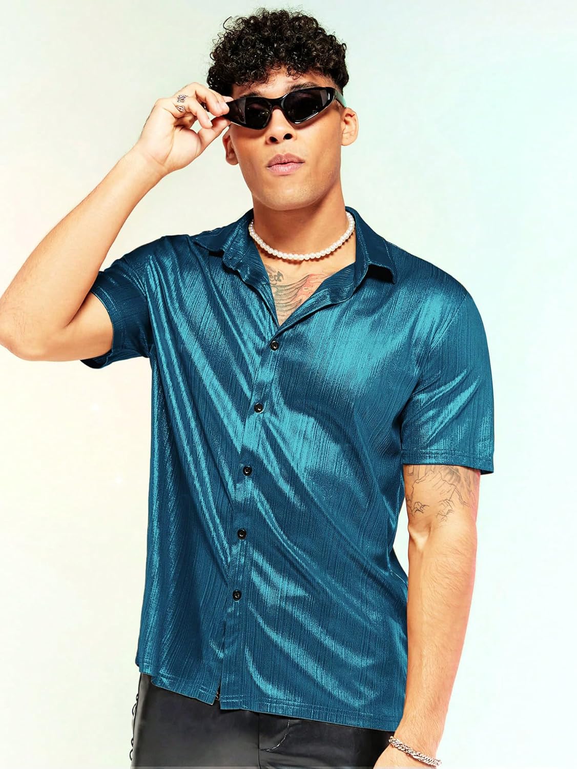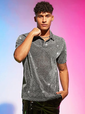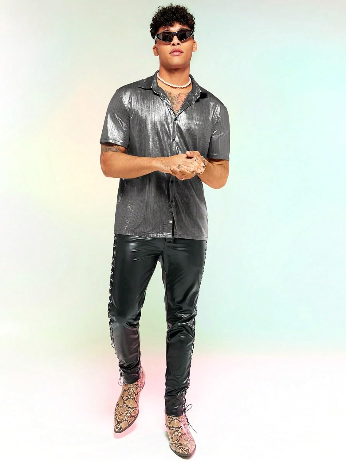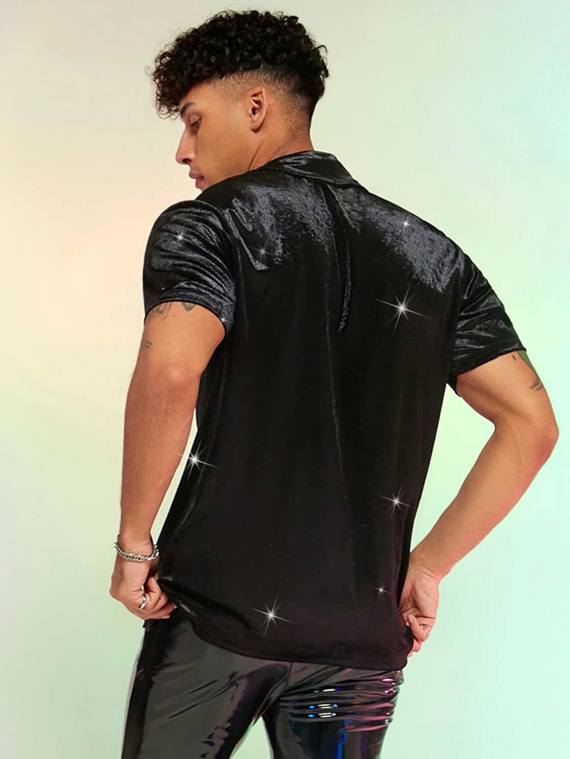 WDIRARA Men's Metallic Mesh V Neck Short Sleeve Sheer Top Golf Polo Shirts Partywear