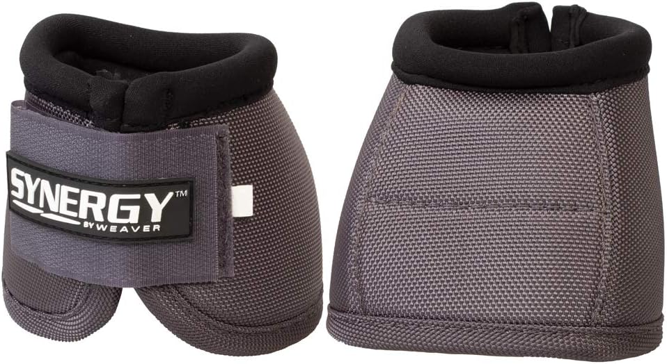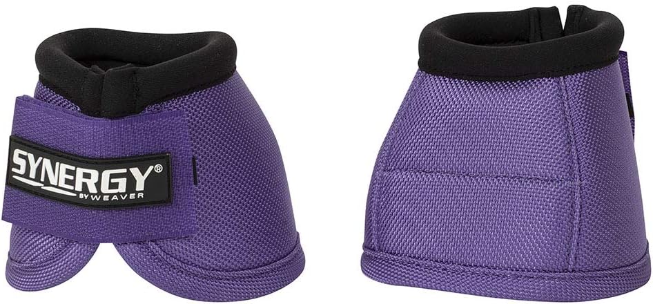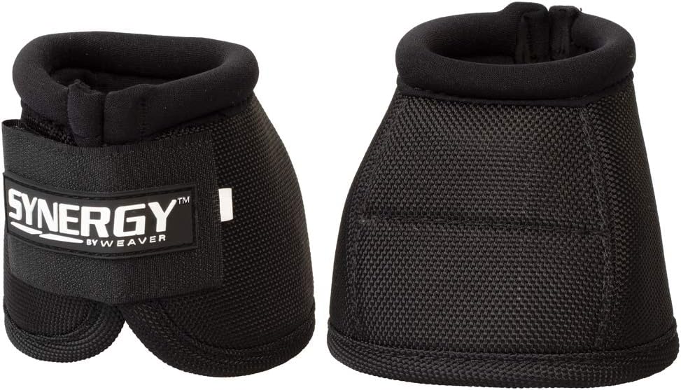 Weaver Synergy Ballistic Bell Boots Just as you and your equine athlete continually strive for the best, our team works tirelessly to design high-performing gear to support your partnership. You can be confident that the Synergy by Weaver line of products is crafted from the finest materials working together in synergy with the latest technology and innovation. Features: Shock-absorbing EVA sport foam covered with 2520D ballistic nylon and microfiber for maximum protection Double-ply hook and loop closure ensures a secure fit Neoprene lining adds protection for the heel bulb and coronet band Anatomical positioning bulb helps prevent turning Use in conjunction with athletic boots for maximum support and protection