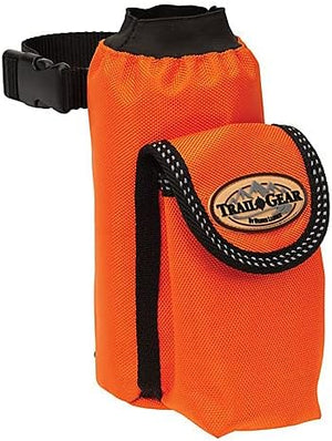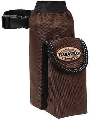 Weaver Trail Gear Water Bottle Holder Convenient holder constructed from thick, durable 1,680D polyester fabric coated with polyurethane for water resistance features an elastic opening that securely grips water bottle and a reflective accented front pocket with hook and loop closure for easy access to cell phone, keys or other small necessities. A strap at the top with a black plastic quick-release buckle and a black plastic dee at the bottom provide easy attachment to a saddle. Item Specifications: Measures 3-1/2" in diameter x 10" high with a 3-1/2" long x 7-1/2" high x 2" wide front pocket.