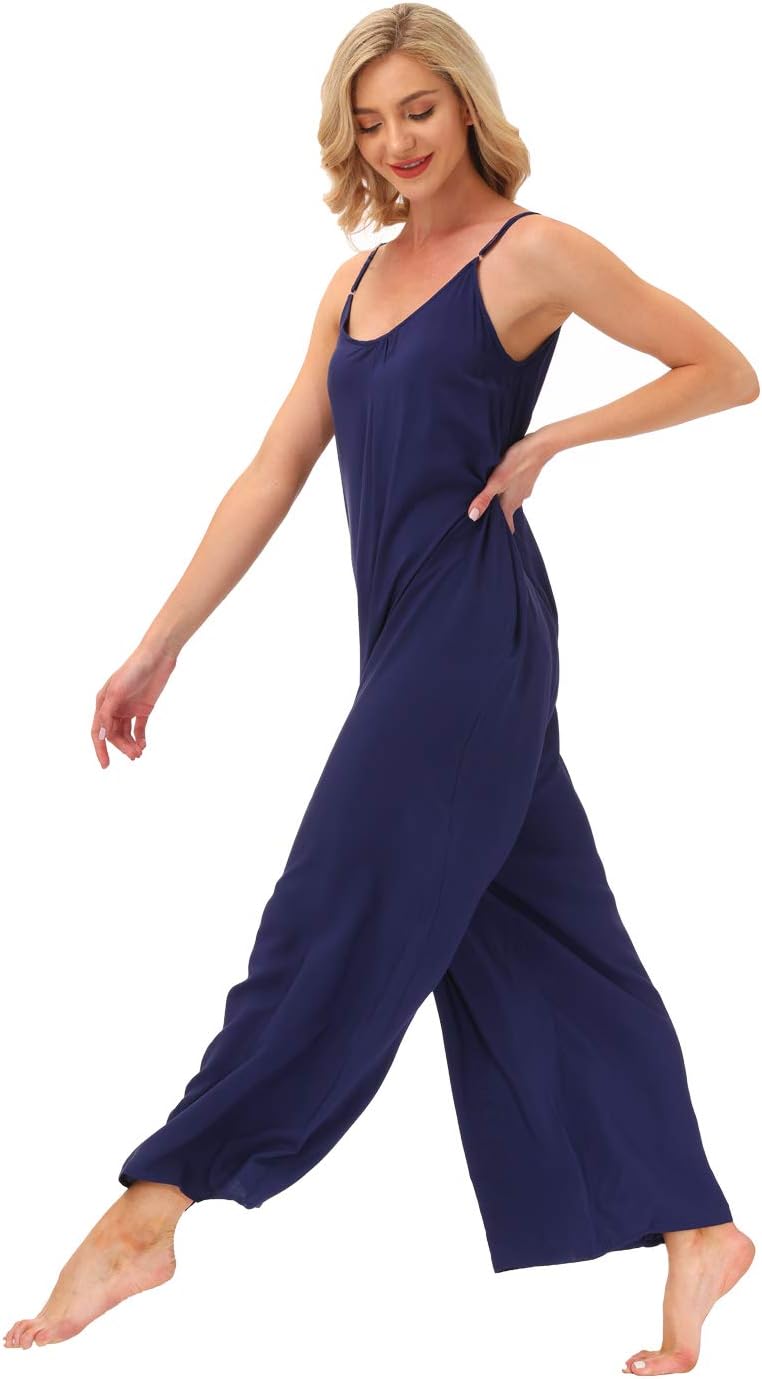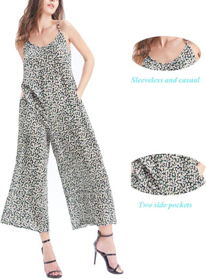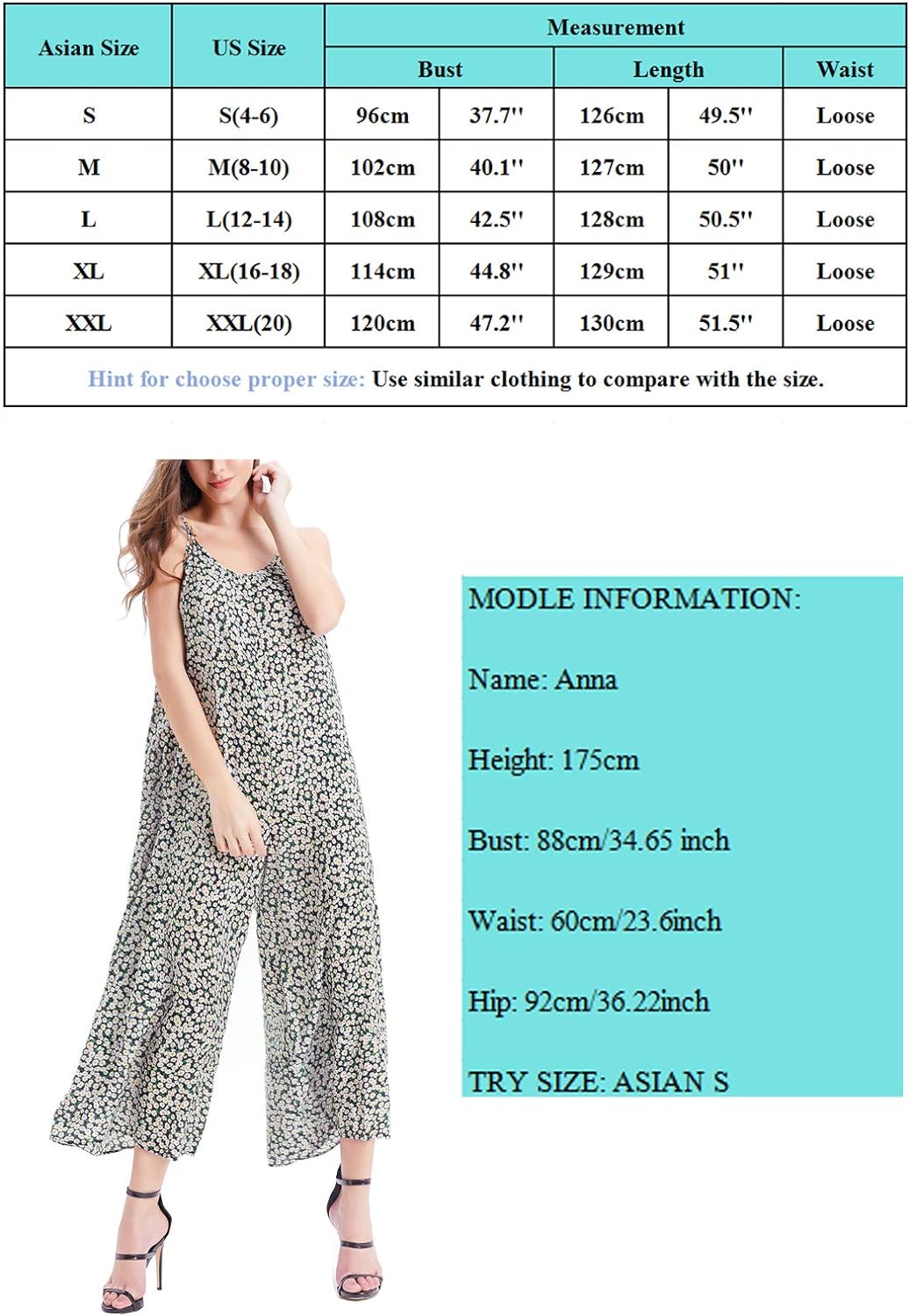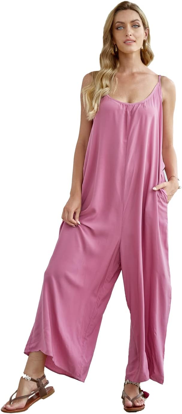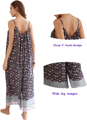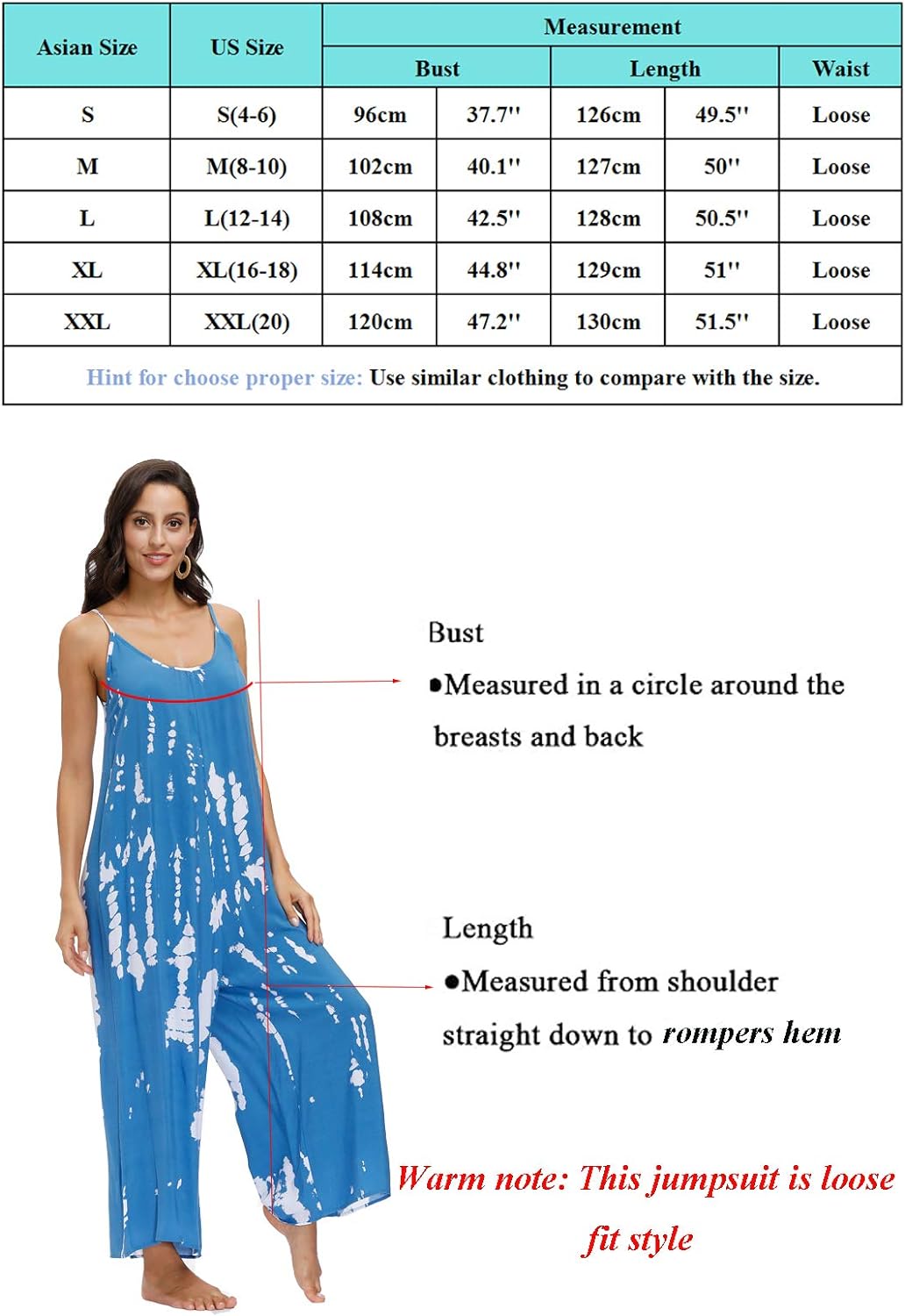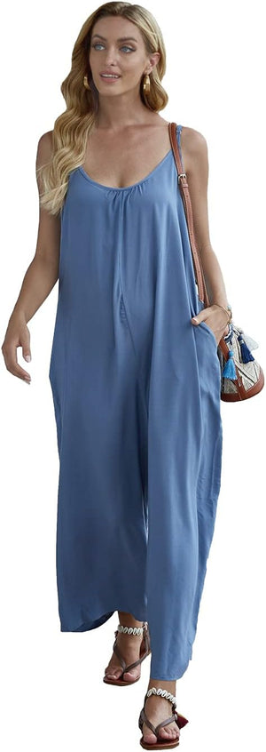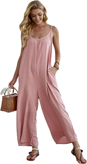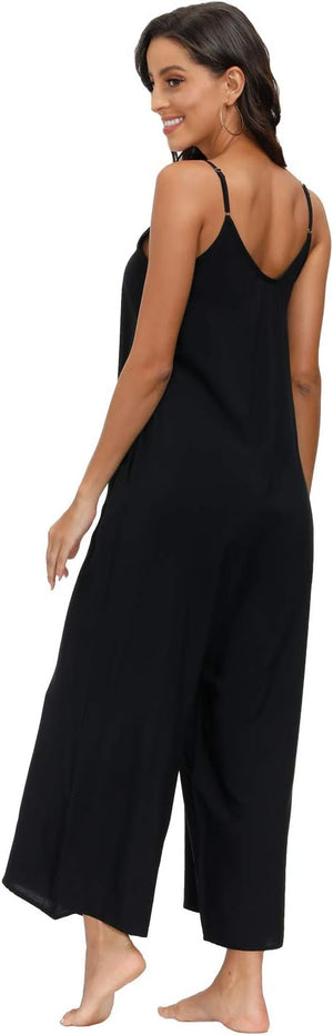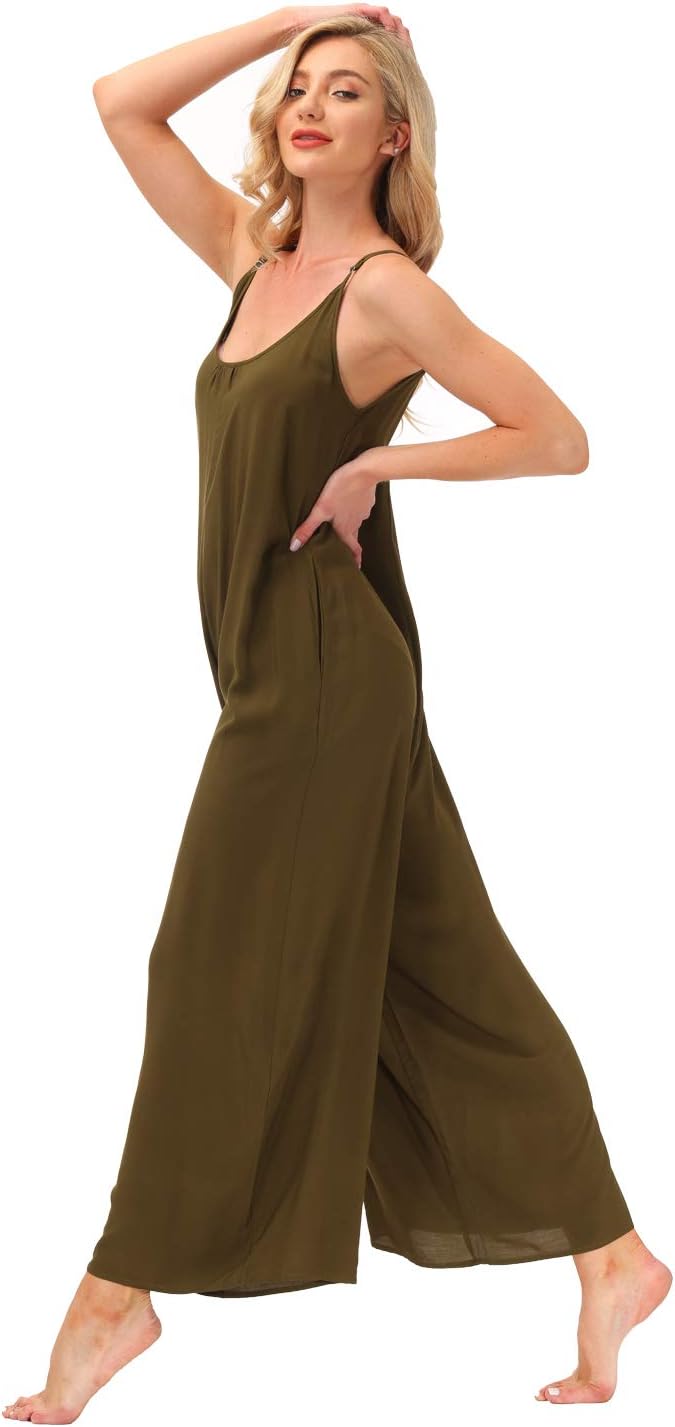 Womens Casual Loose Sleeveless Spaghetti Strap Wide Leg Pants Jumpsuit Rompers