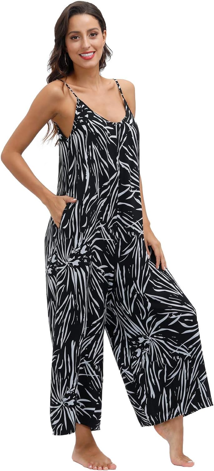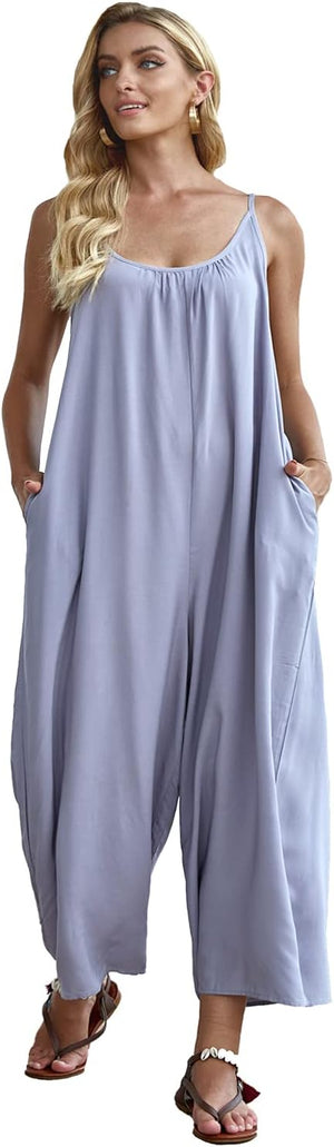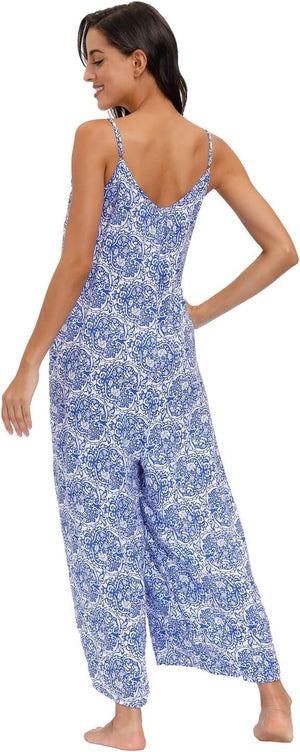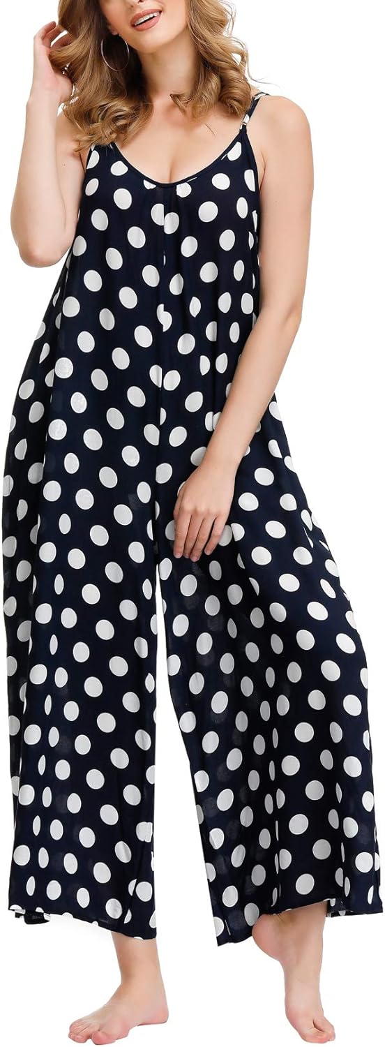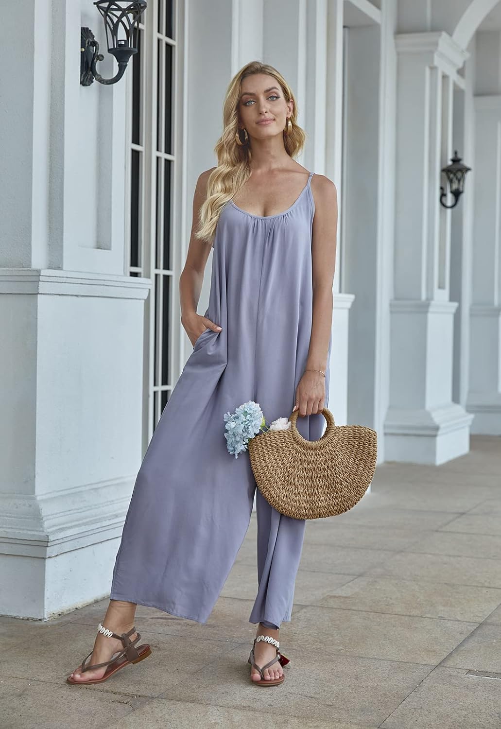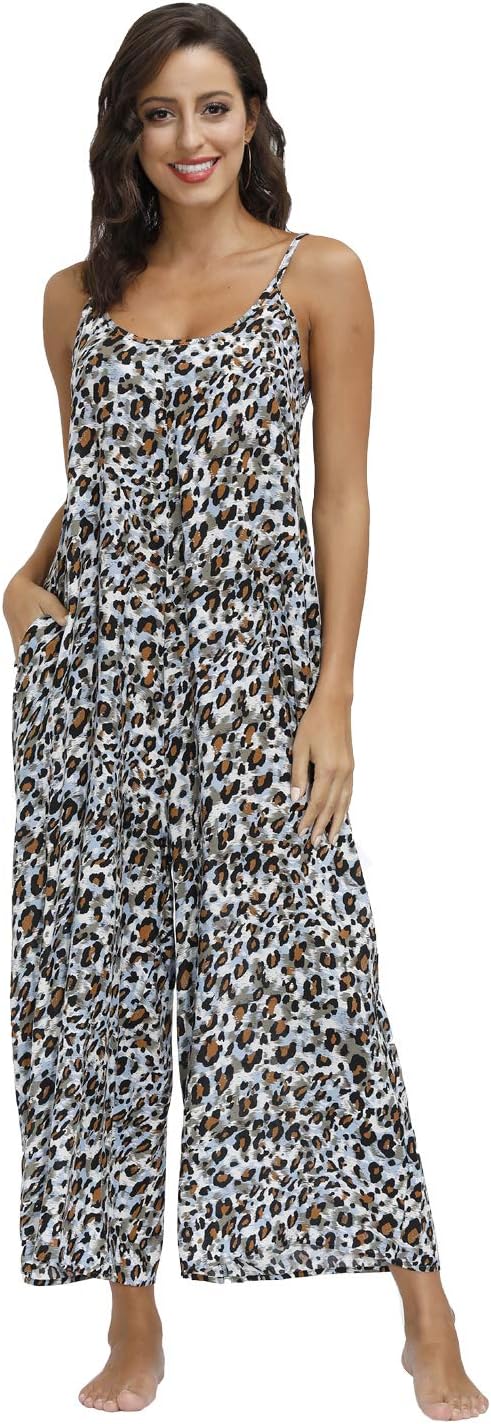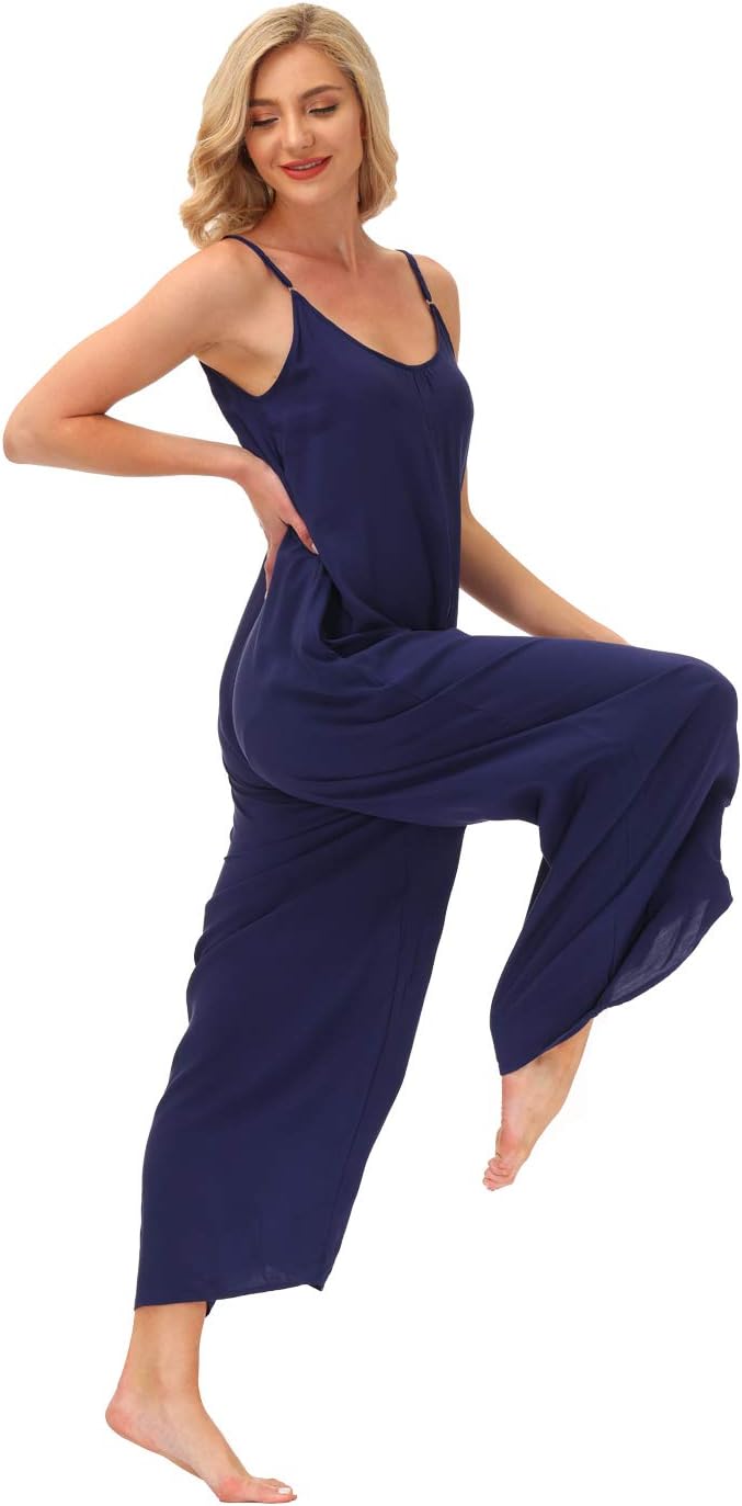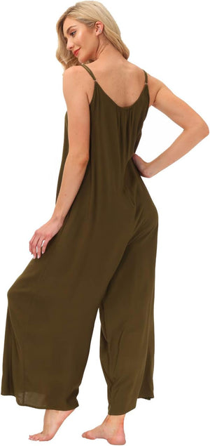 Womens Casual Loose Sleeveless Spaghetti Strap Wide Leg Pants Jumpsuit Rompers