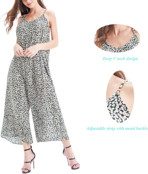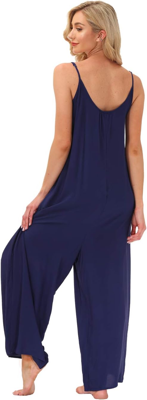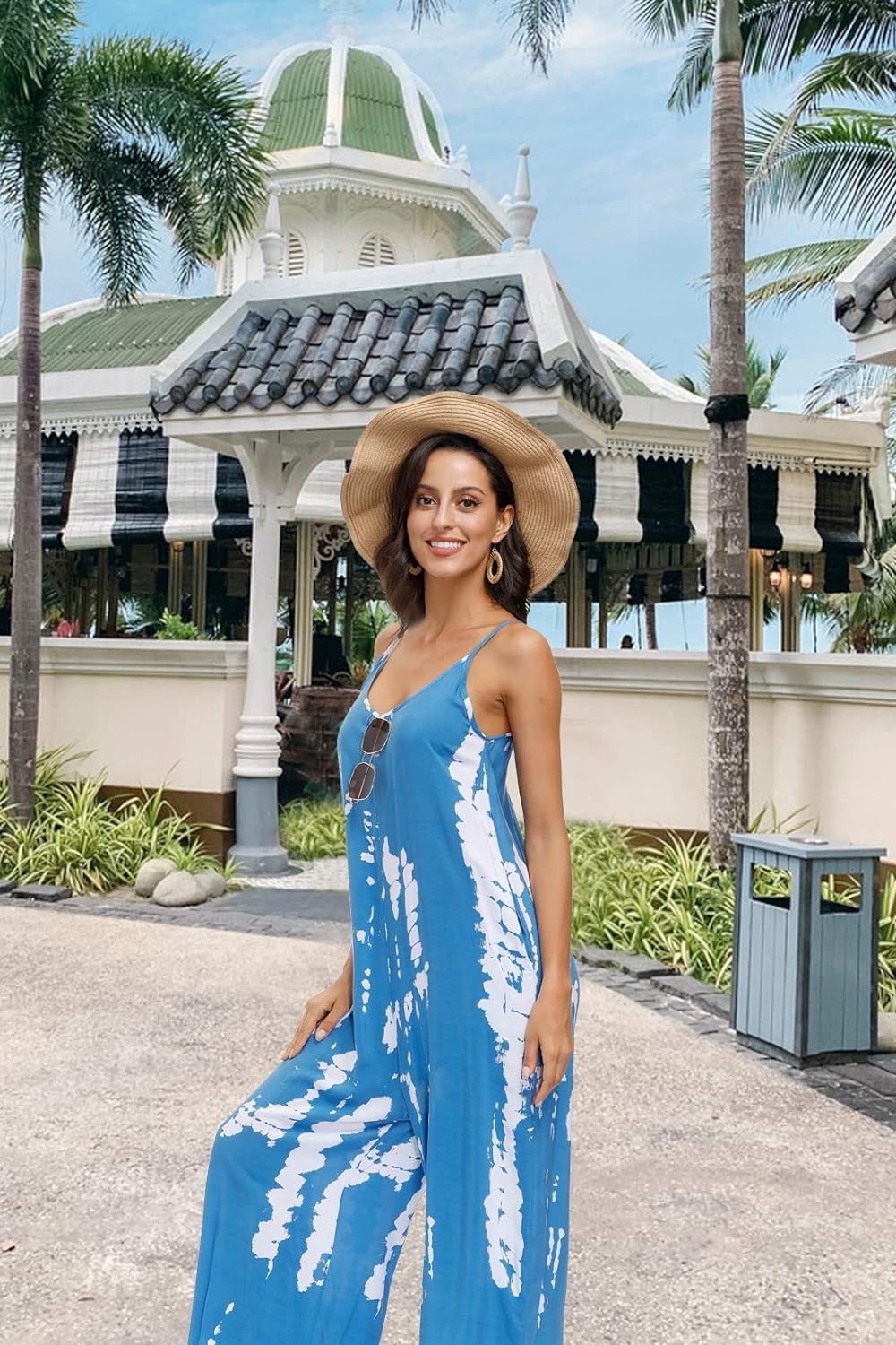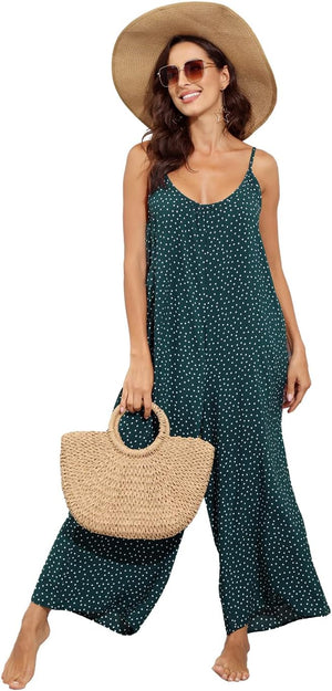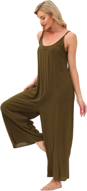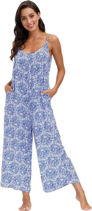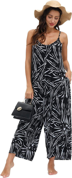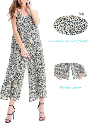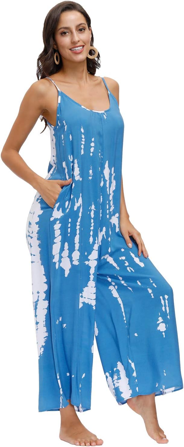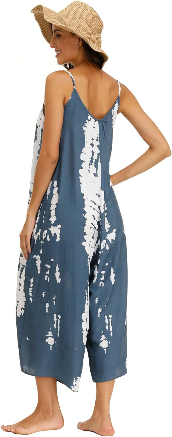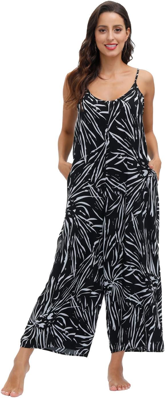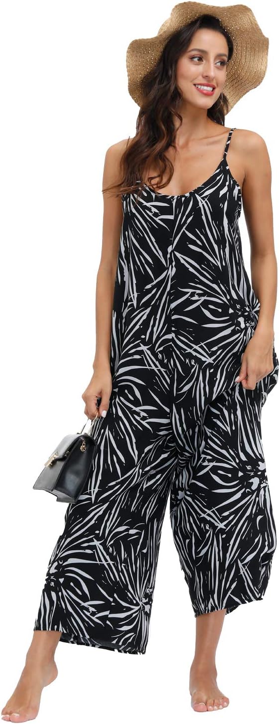 Womens Casual Loose Sleeveless Spaghetti Strap Wide Leg Pants Jumpsuit Rompers