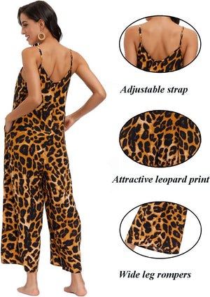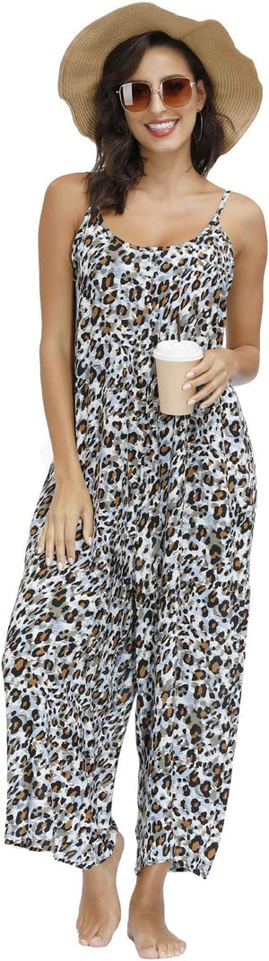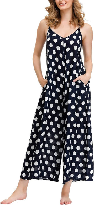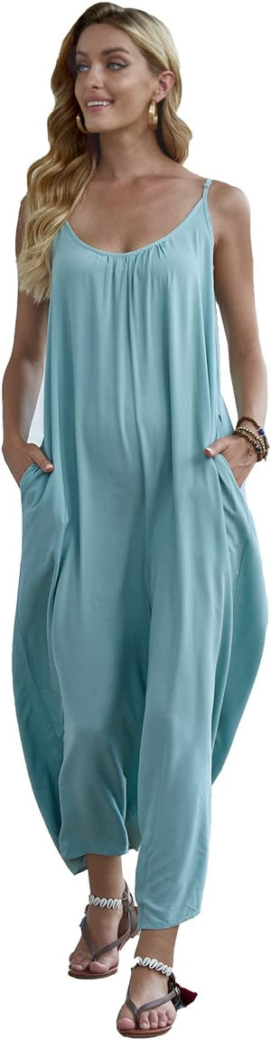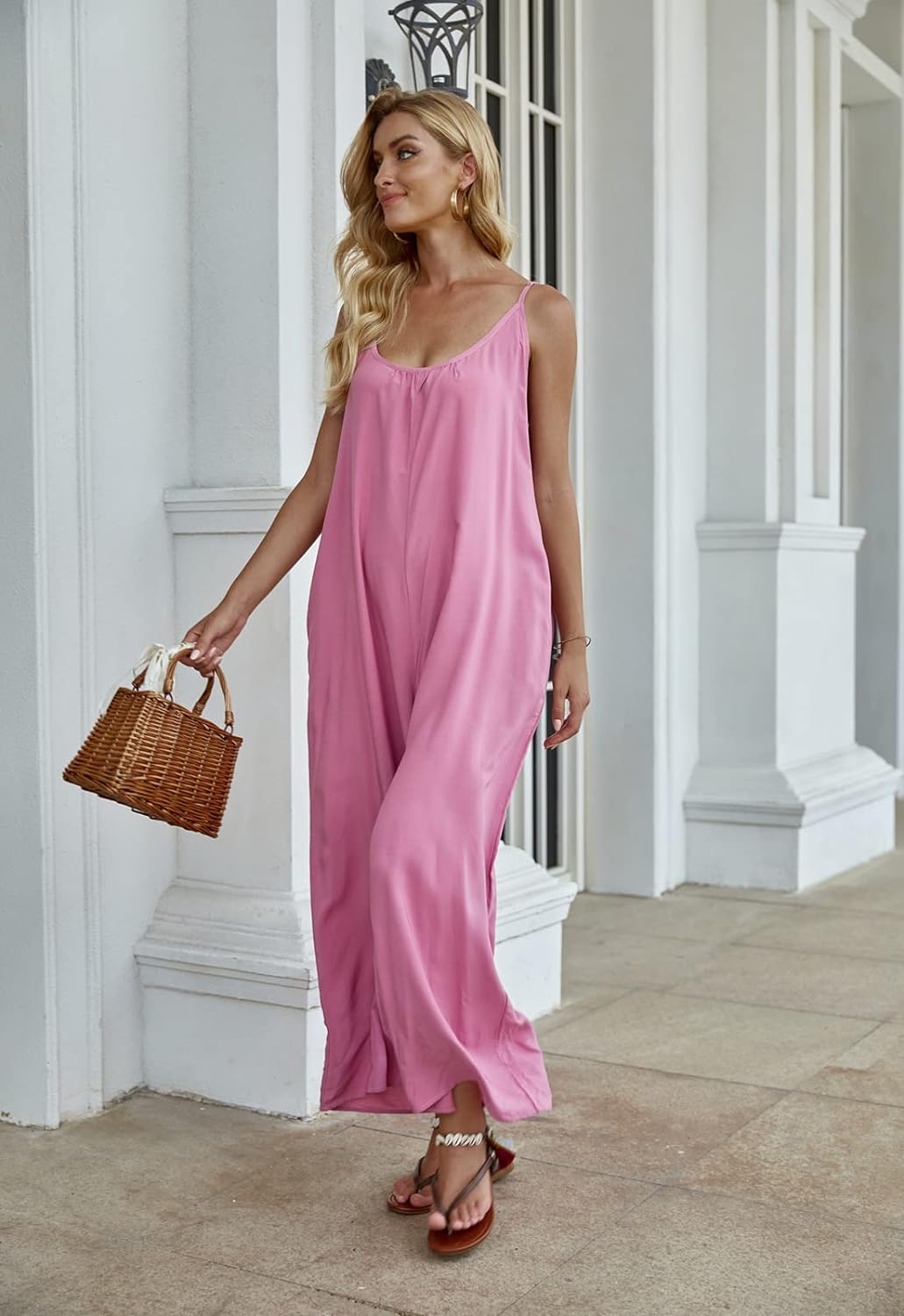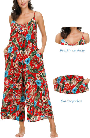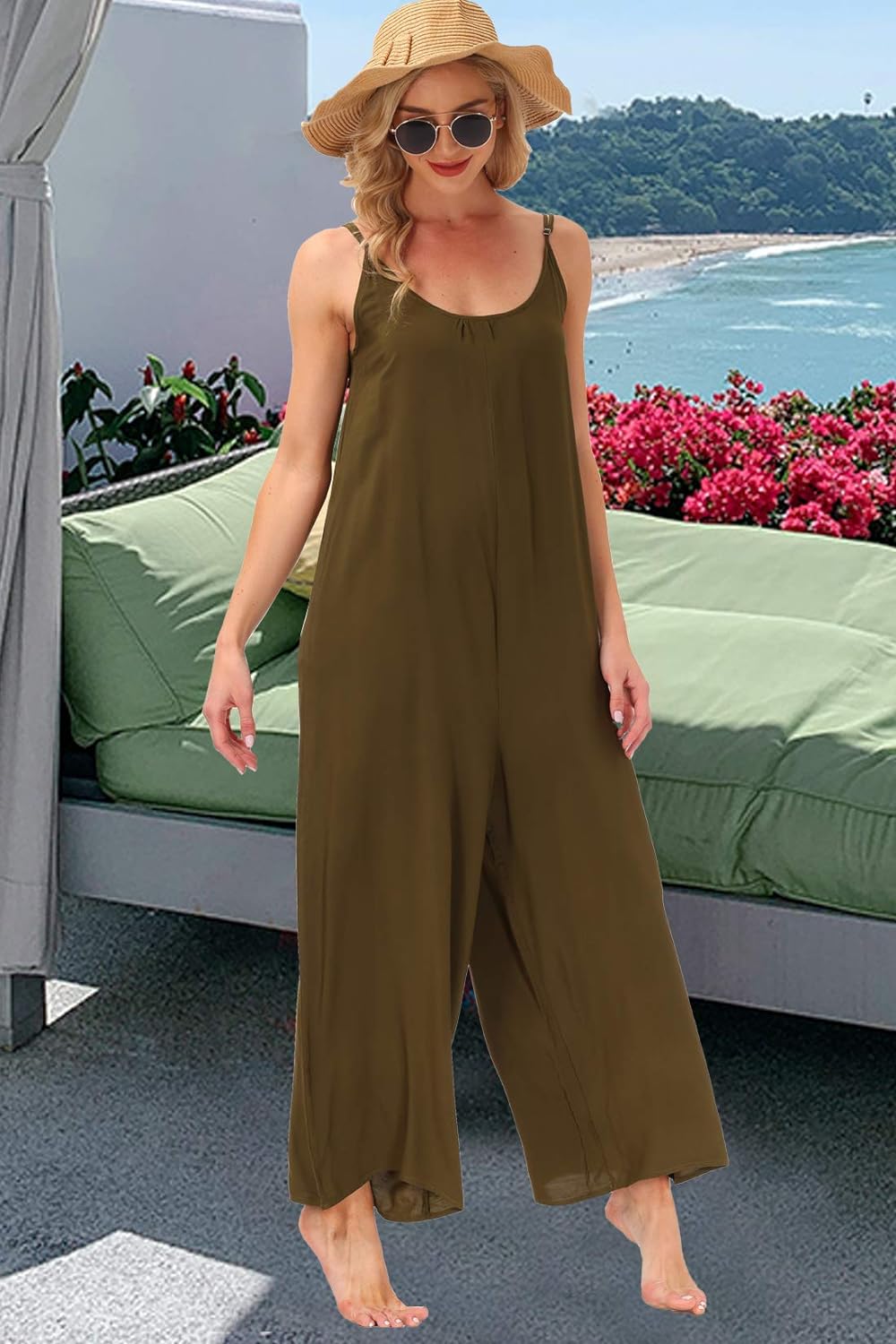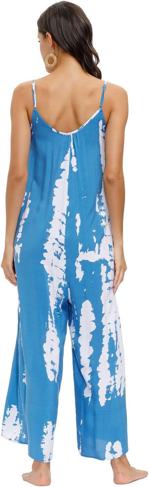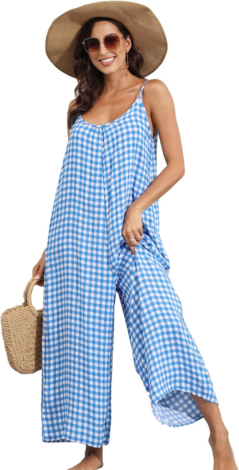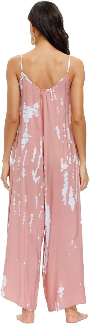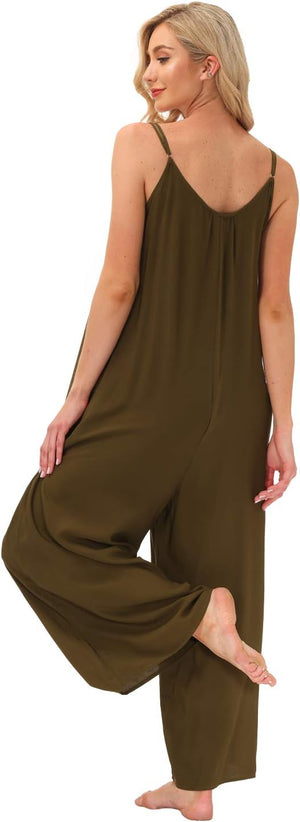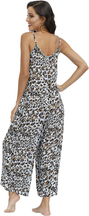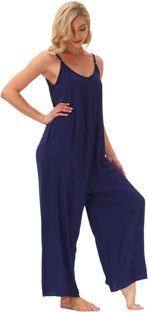 Womens Casual Loose Sleeveless Spaghetti Strap Wide Leg Pants Jumpsuit Rompers
