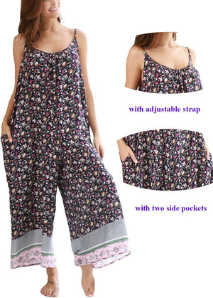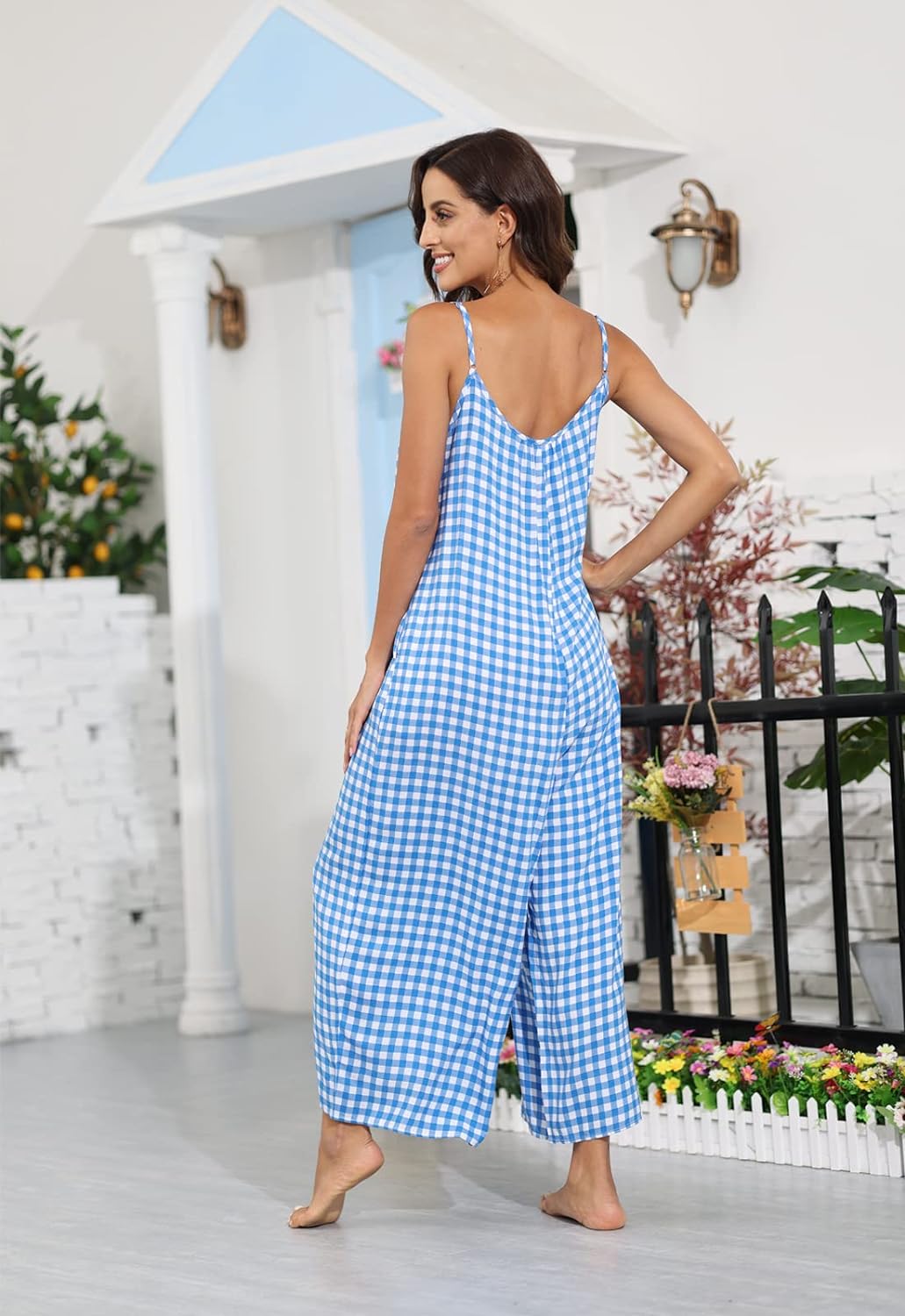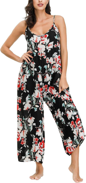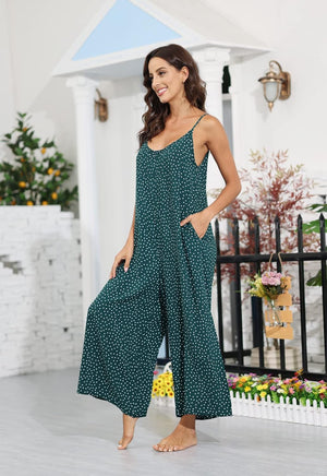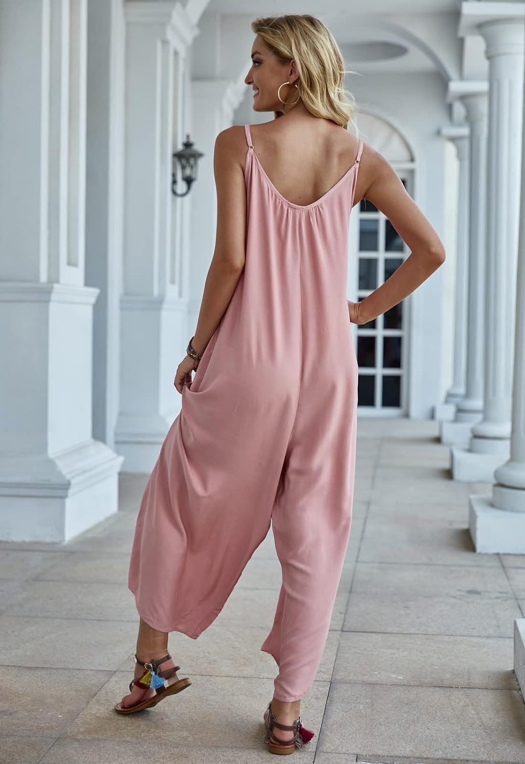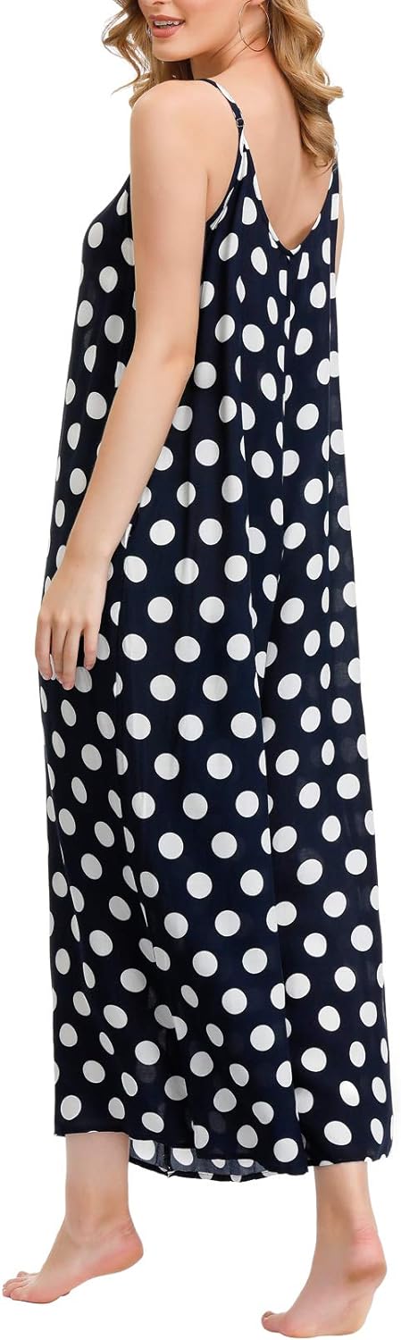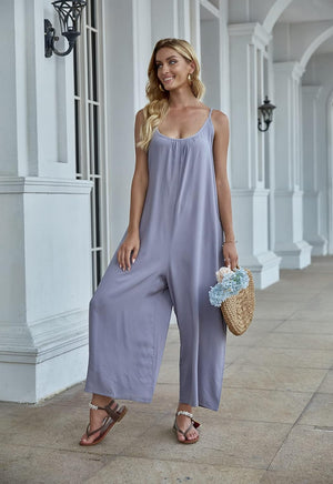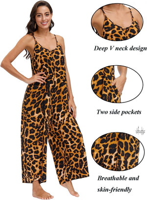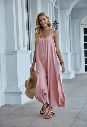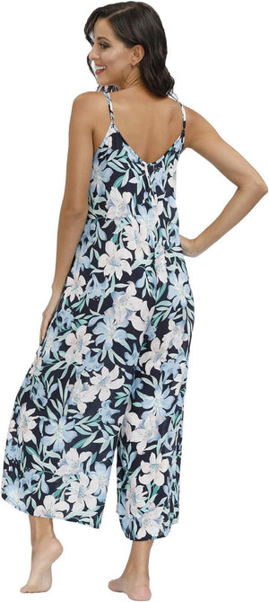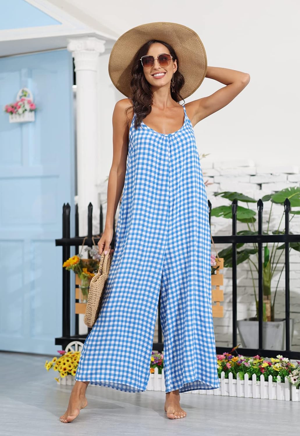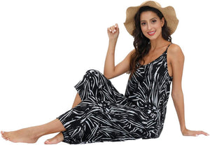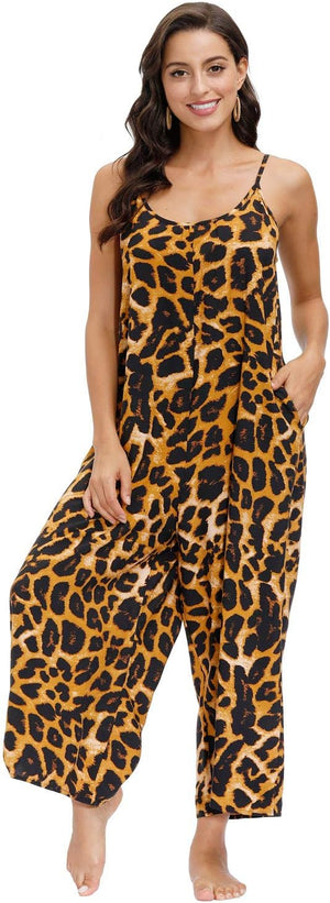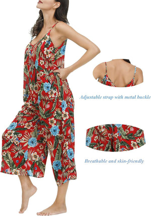 Womens Casual Loose Sleeveless Spaghetti Strap Wide Leg Pants Jumpsuit Rompers