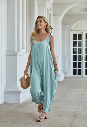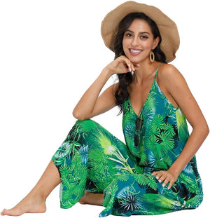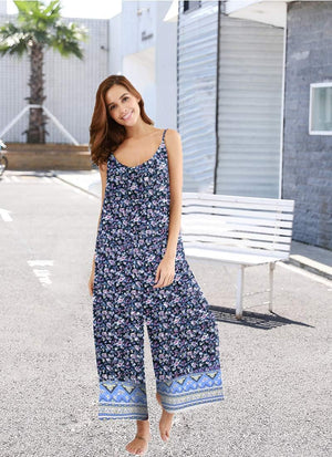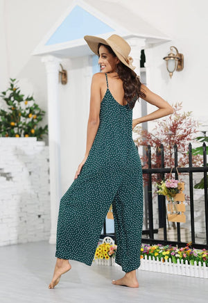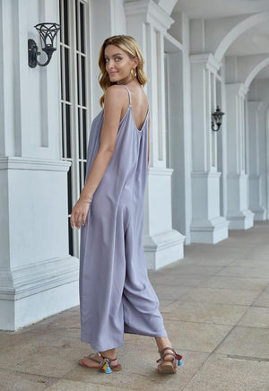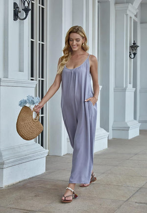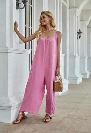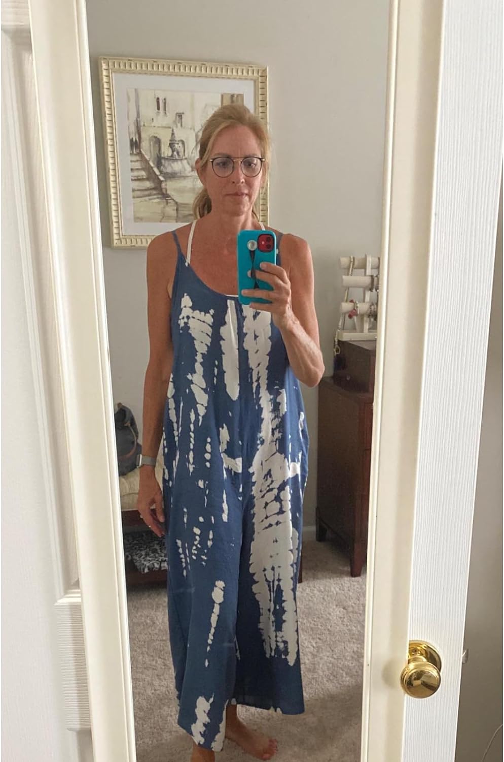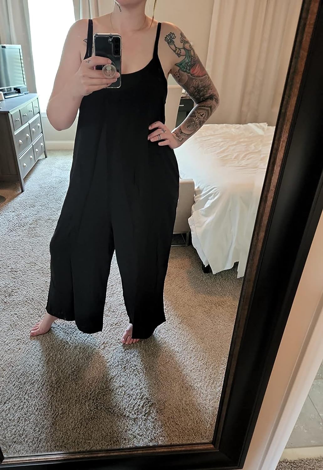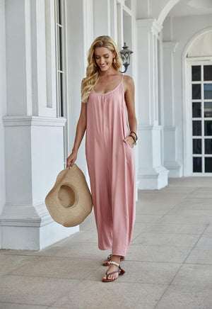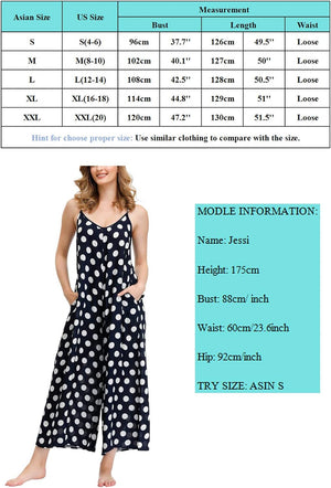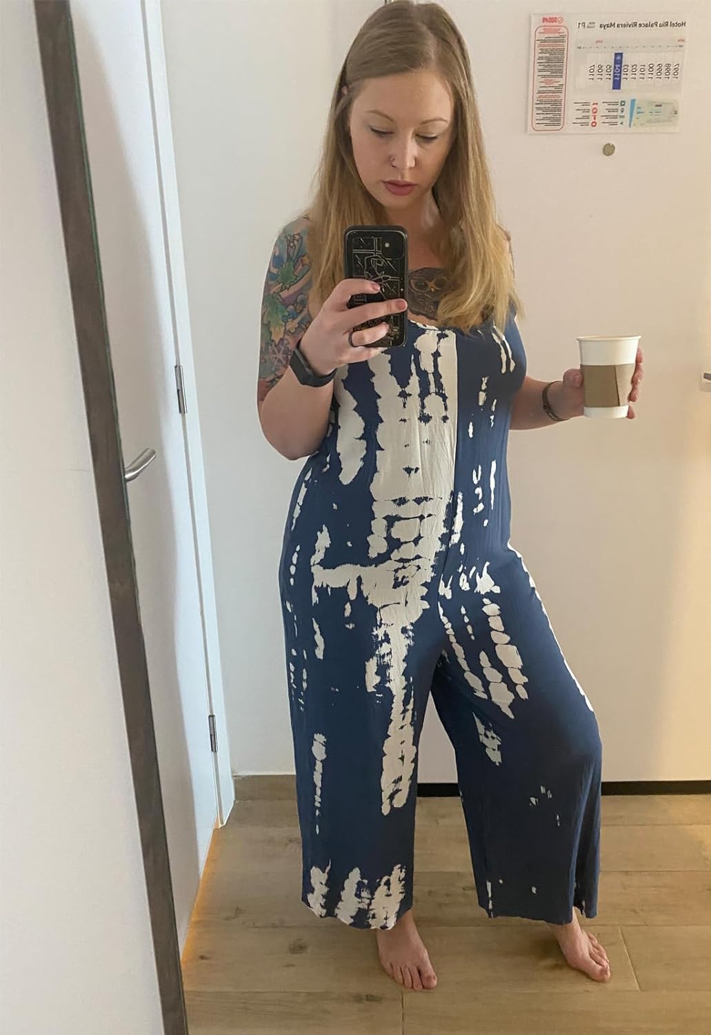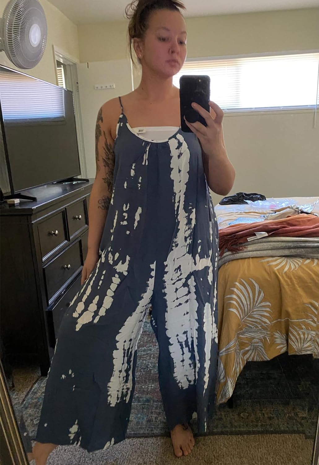 Womens Casual Loose Sleeveless Spaghetti Strap Wide Leg Pants Jumpsuit Rompers
