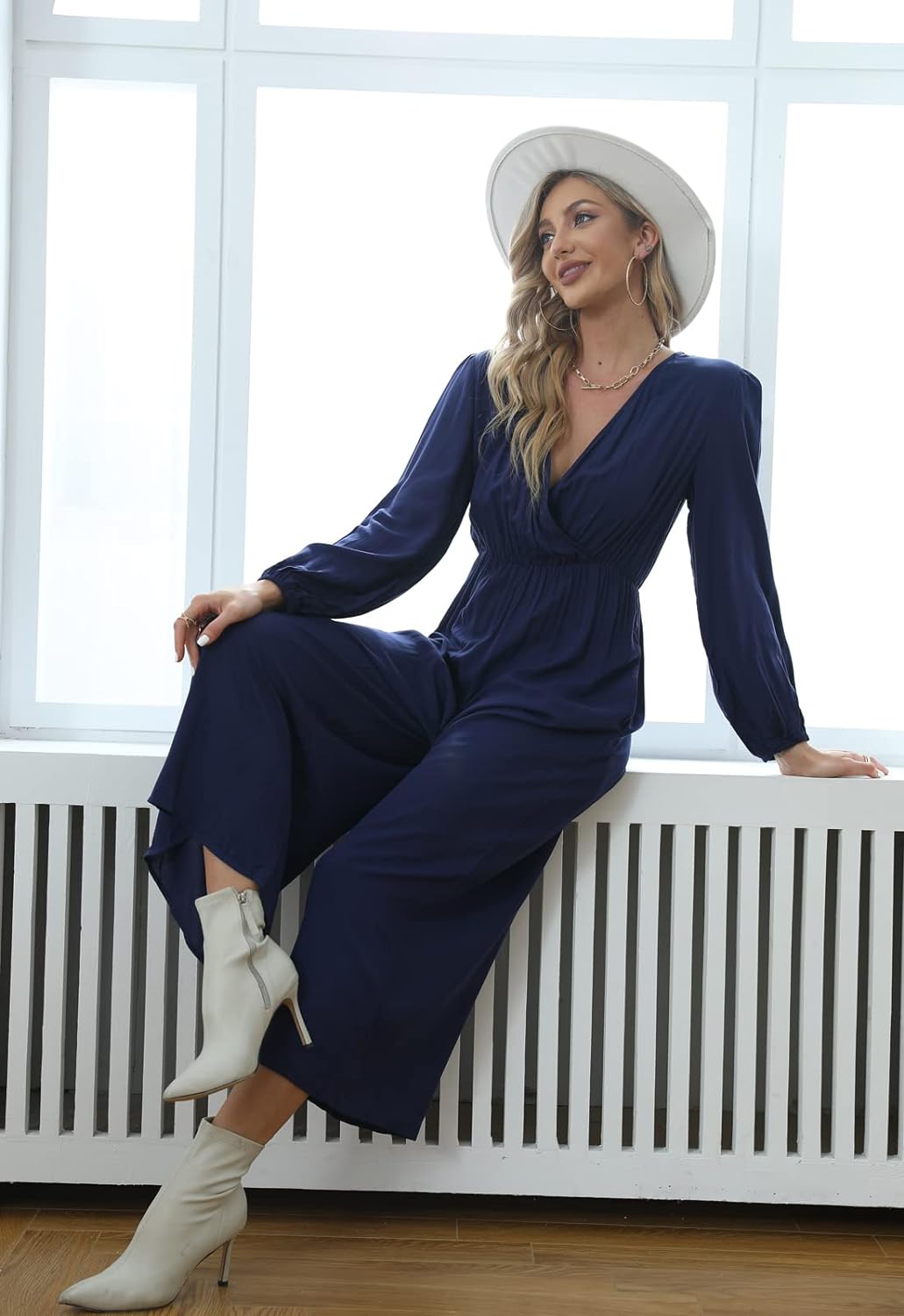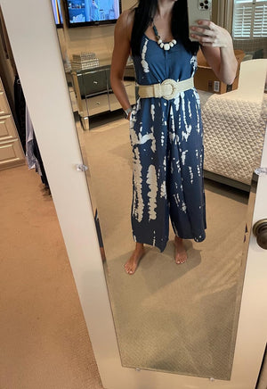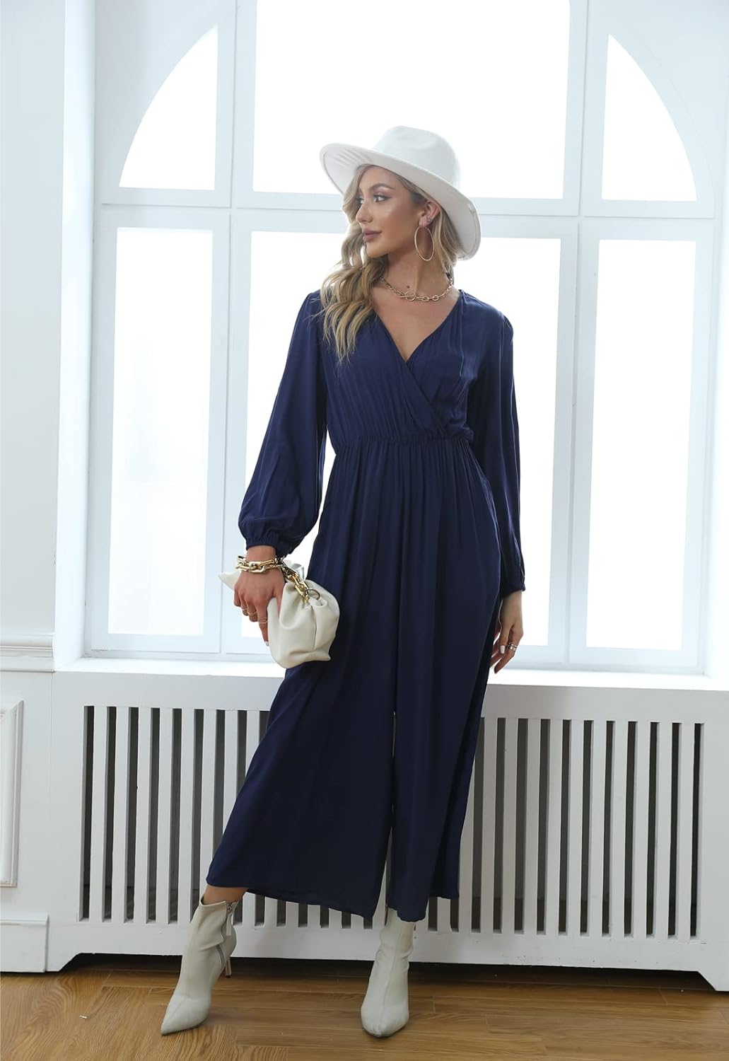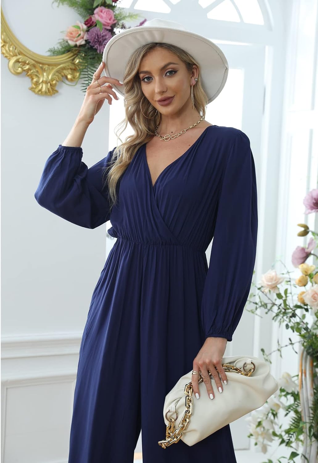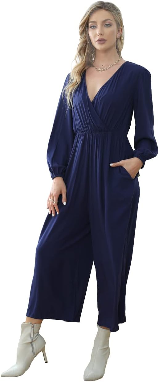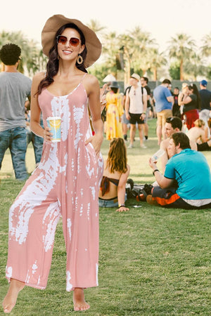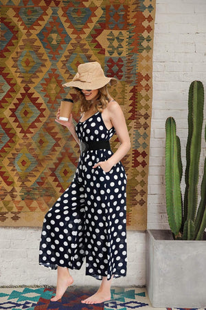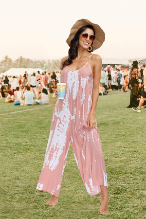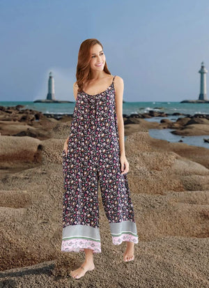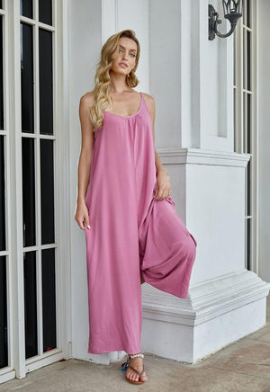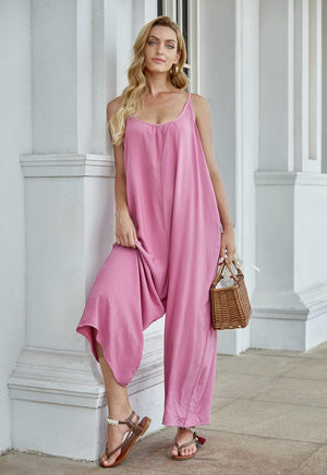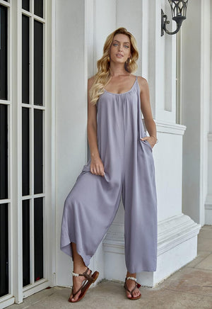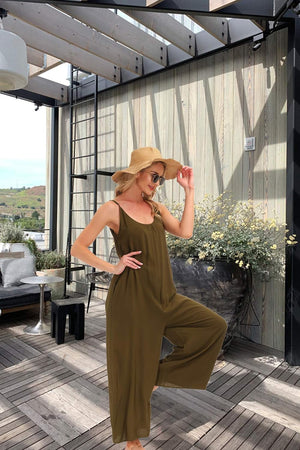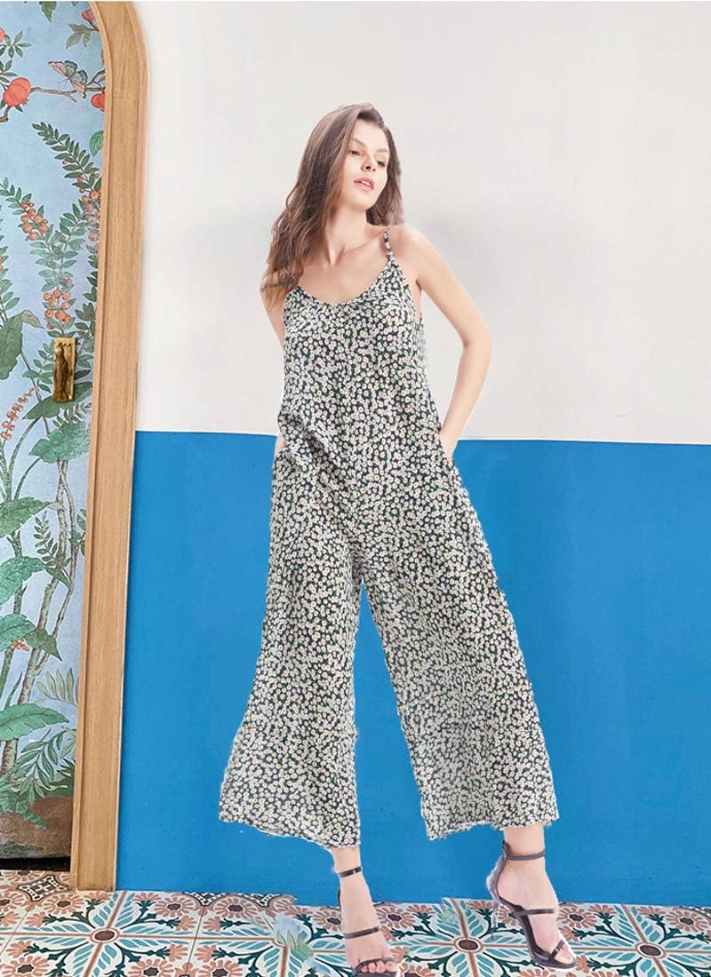 Womens Casual Loose Sleeveless Spaghetti Strap Wide Leg Pants Jumpsuit Rompers