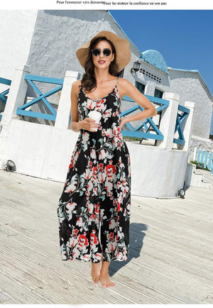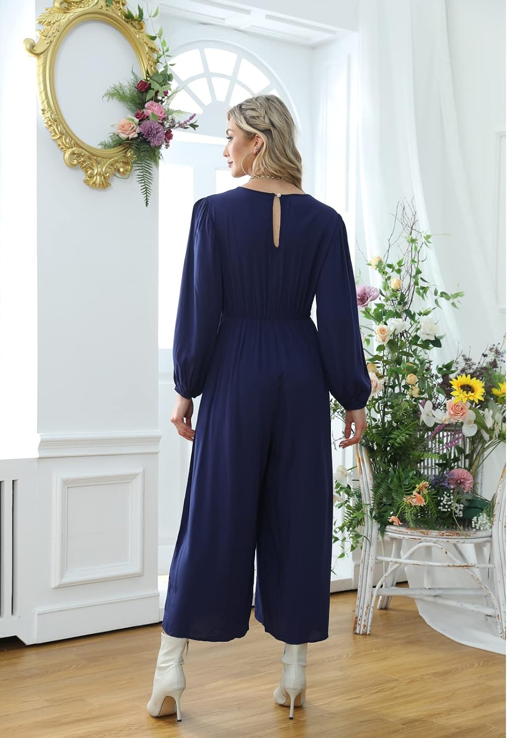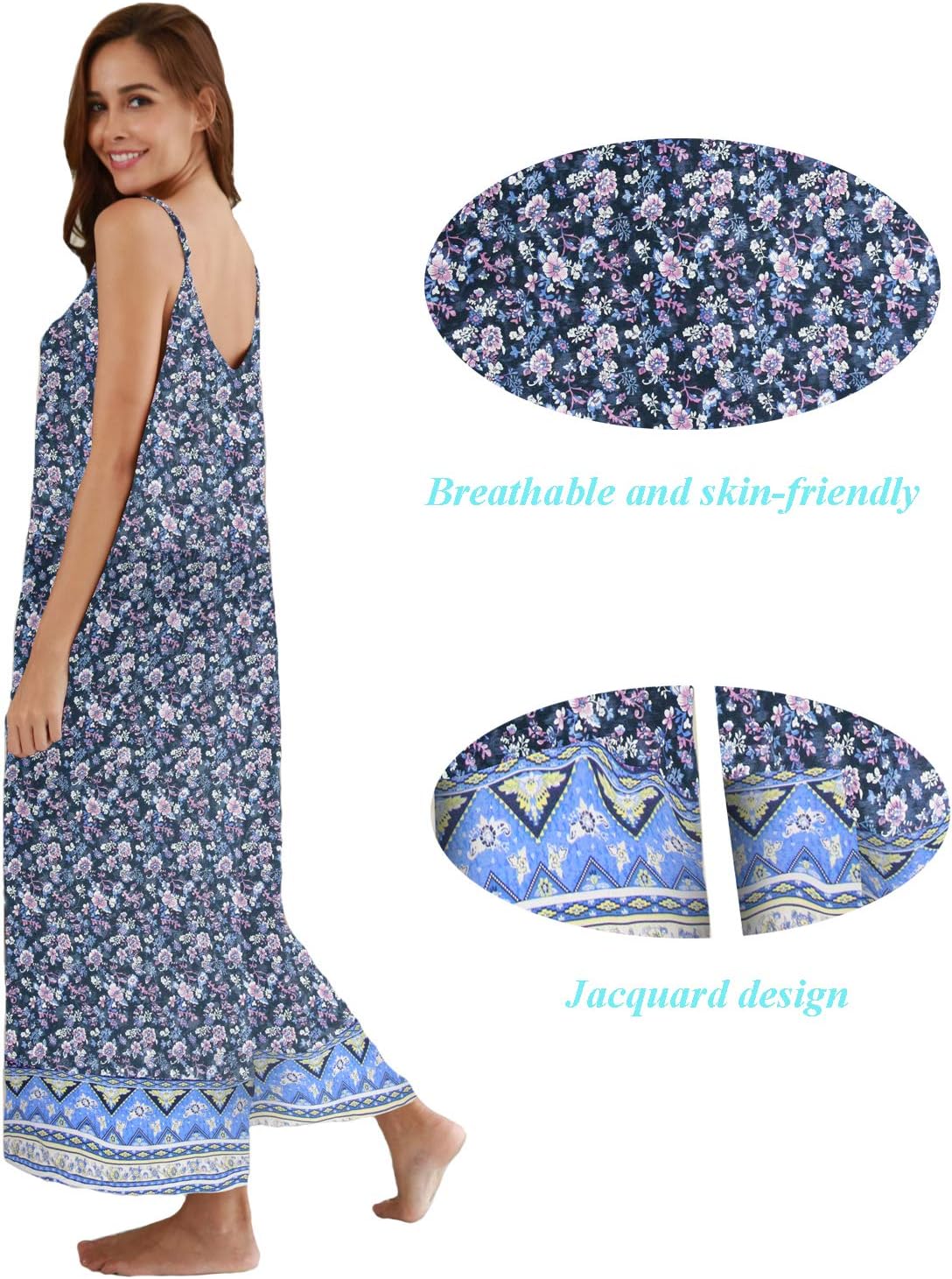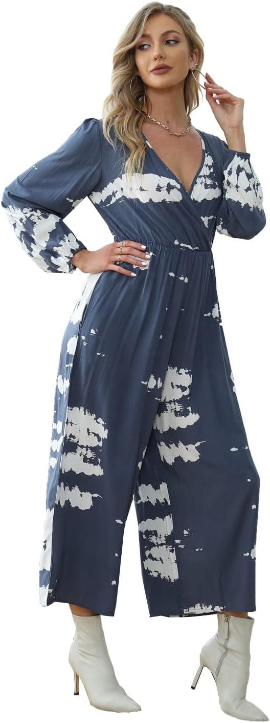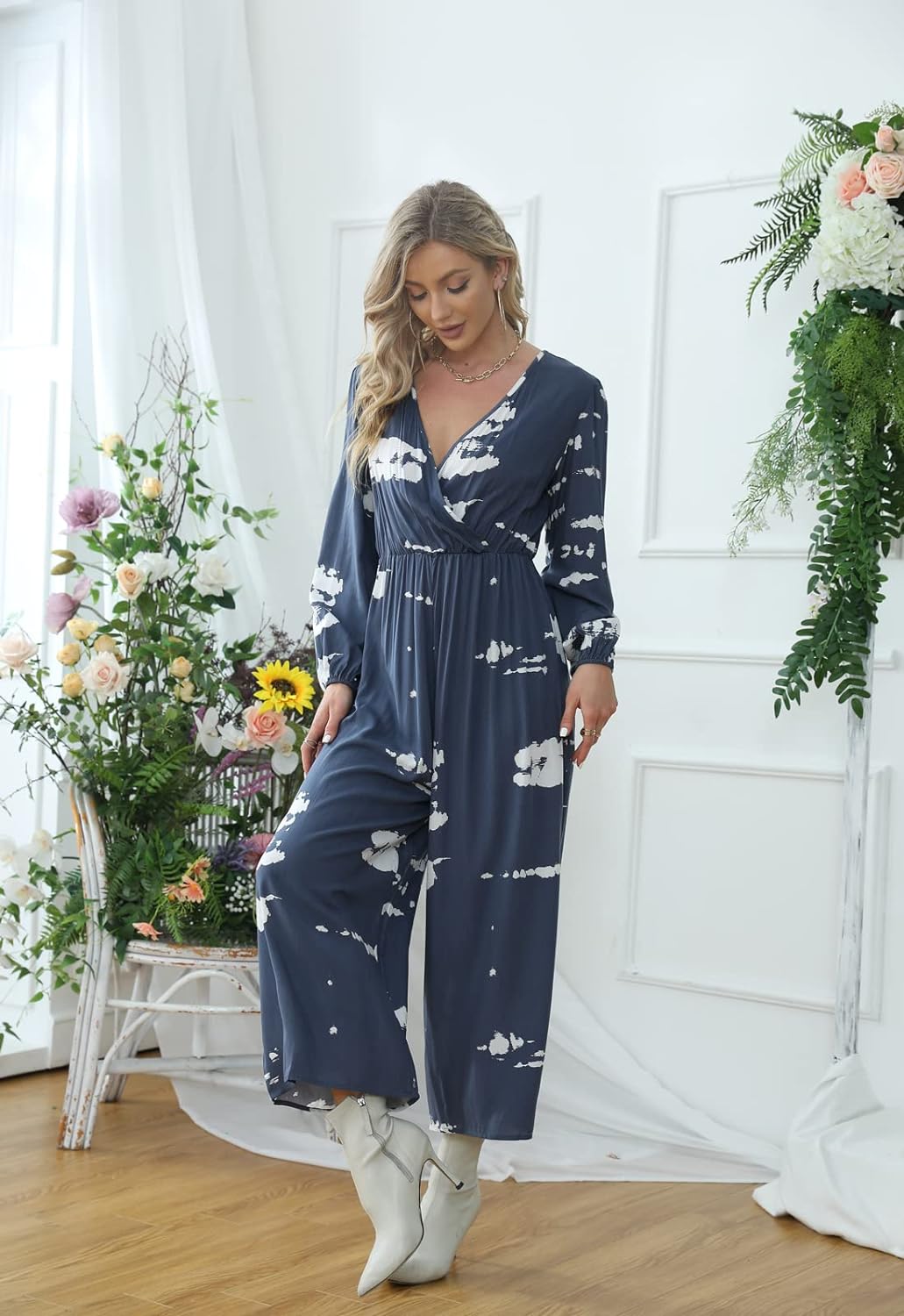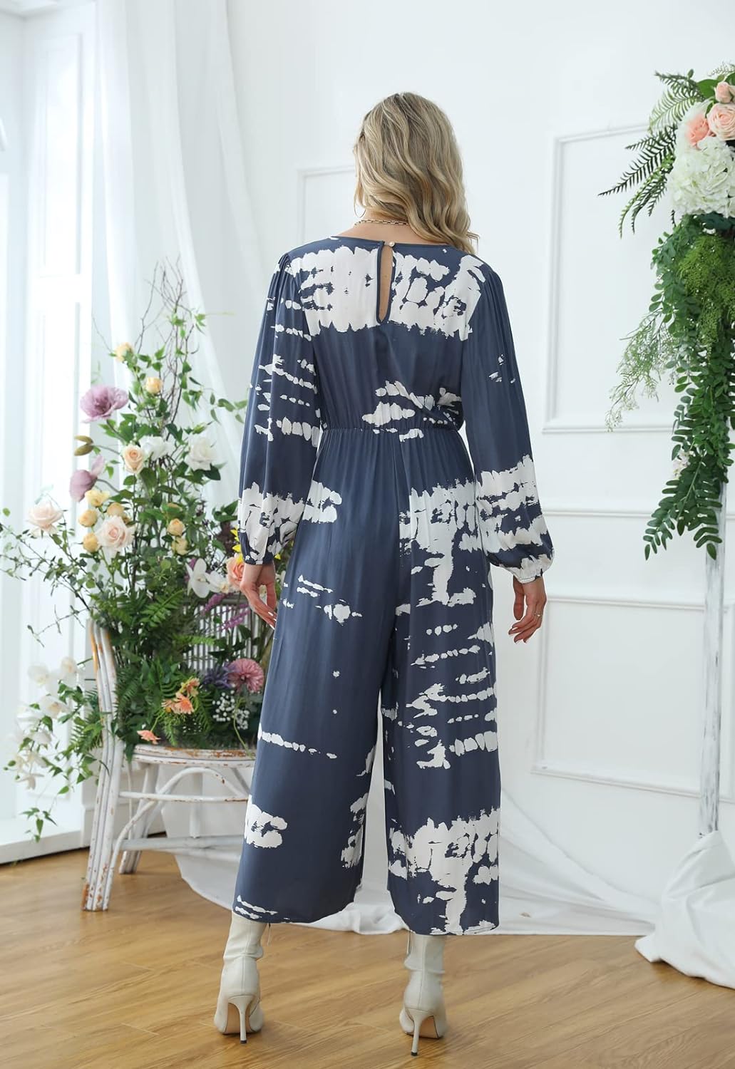 wexcen Jumpsuits for Women Floral Wide Leg Spaghetti Strap Sleeveless Casual Loose Ethnic Long Rompers with Pockets