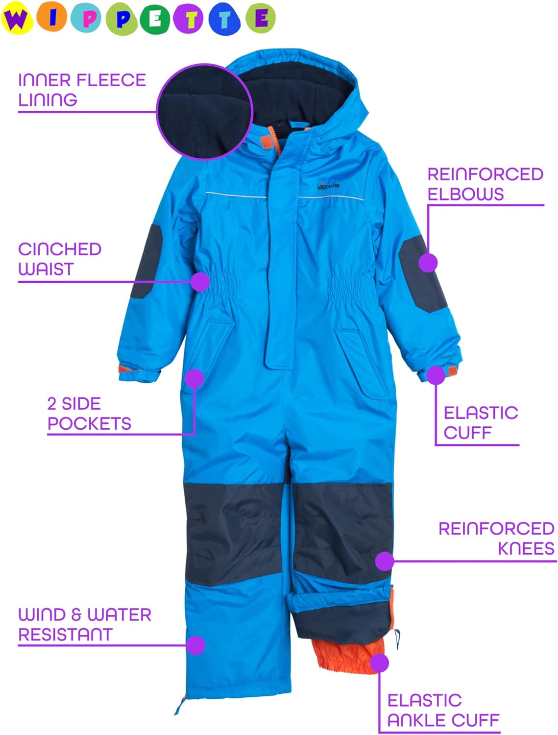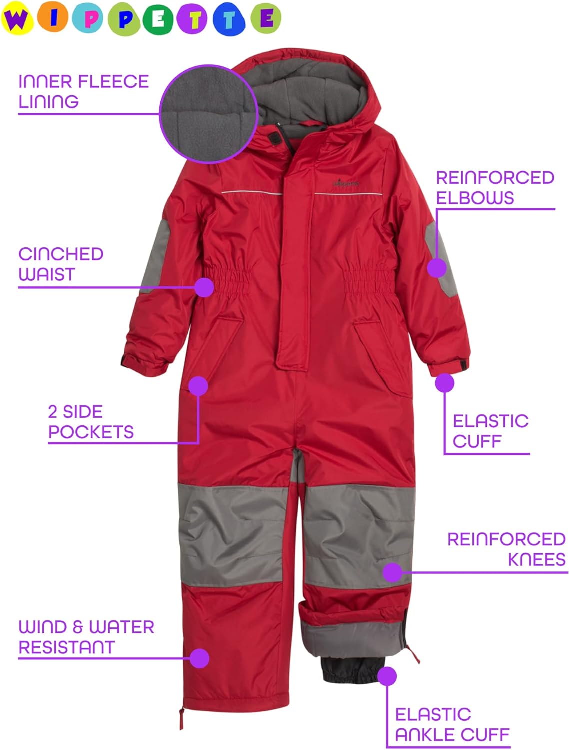 Wippette Baby Boys’ Snowsuit – Waterproof Insulated Fleece Lined Pram Snowmobile Ski Suit Coveralls (18M-7)