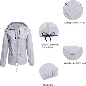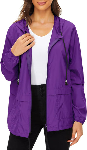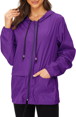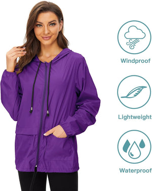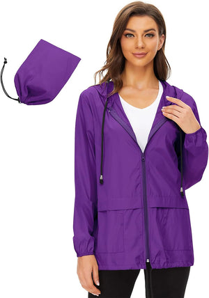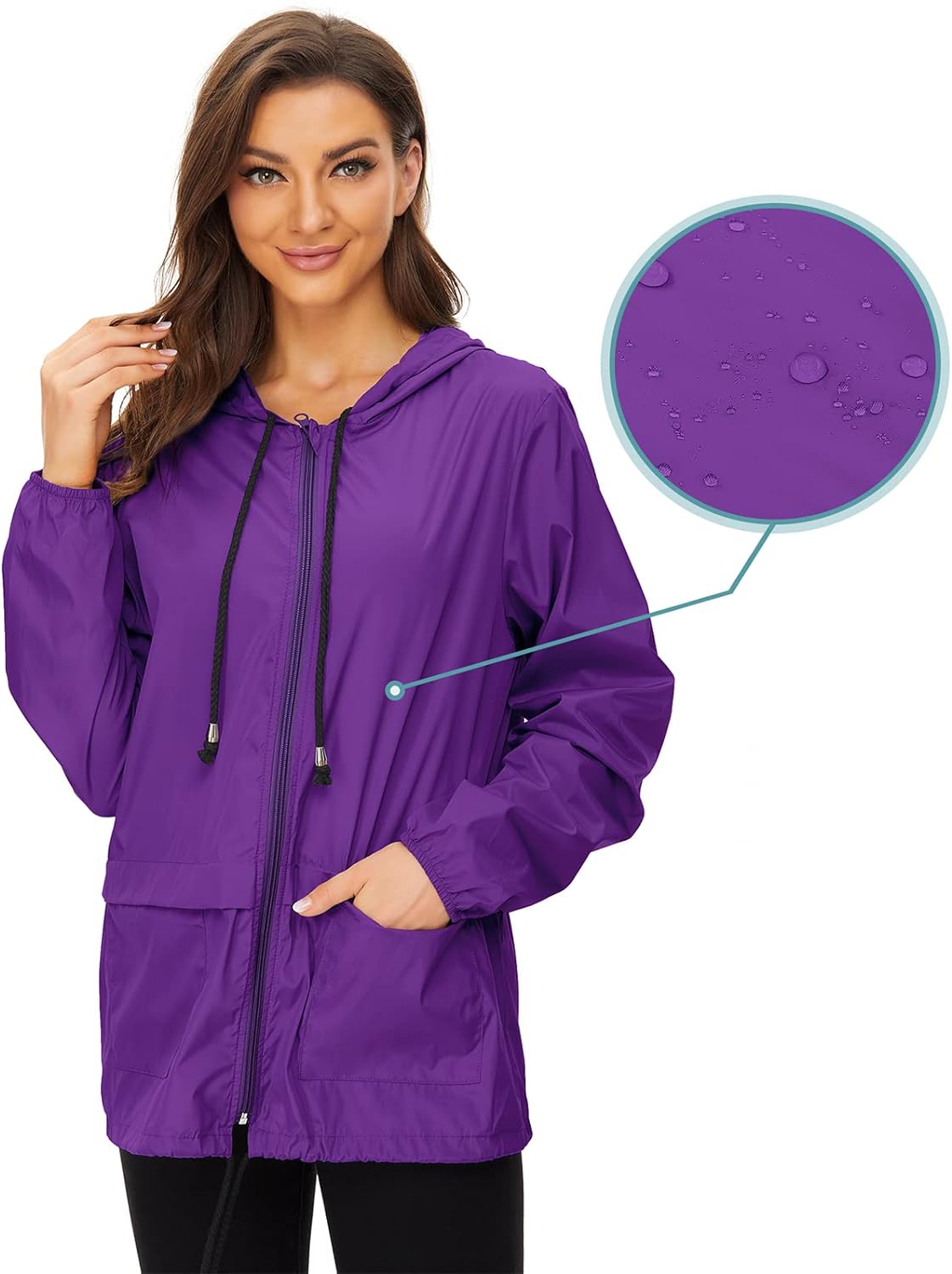 Women Rain Jackets Waterproof Packable Women's Active Jacket Hoodie Lightweight Raincoat Purple Large
