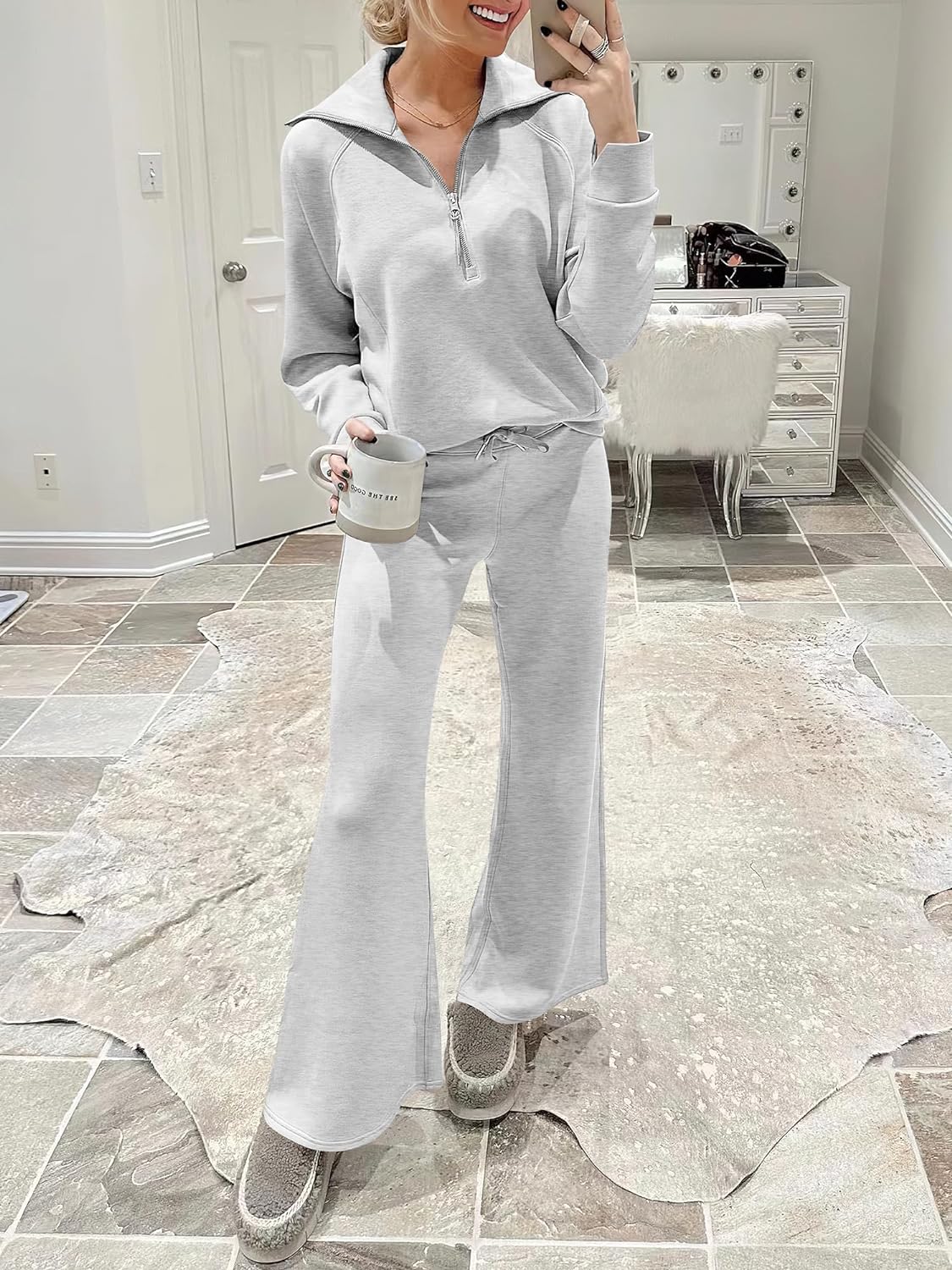 Features - This Sweatsuit Set featured Half zip long sleeve oversized sweatshirt & high waist drawstring wide leg sweatpant for a 2 piece tracksuit set.