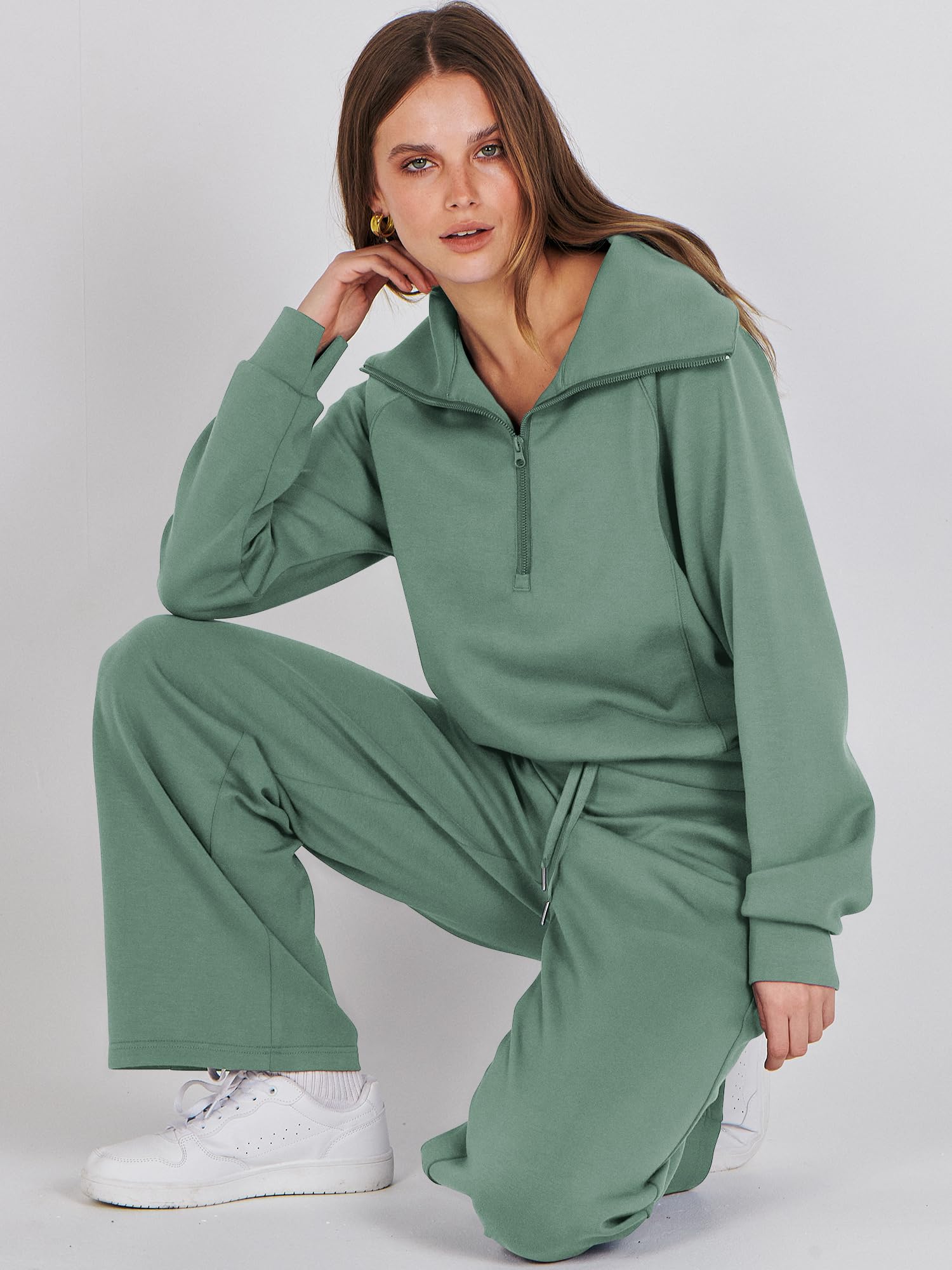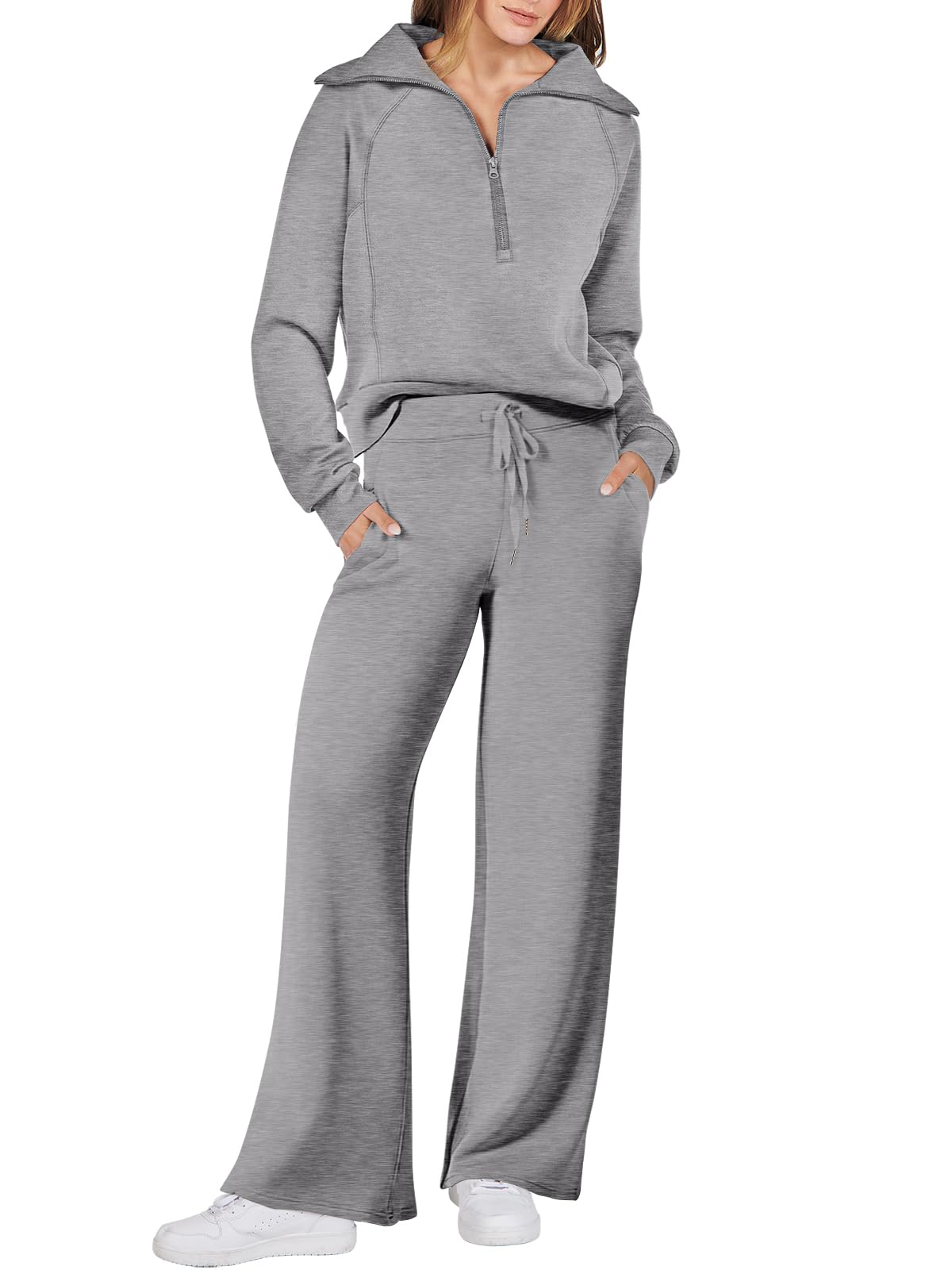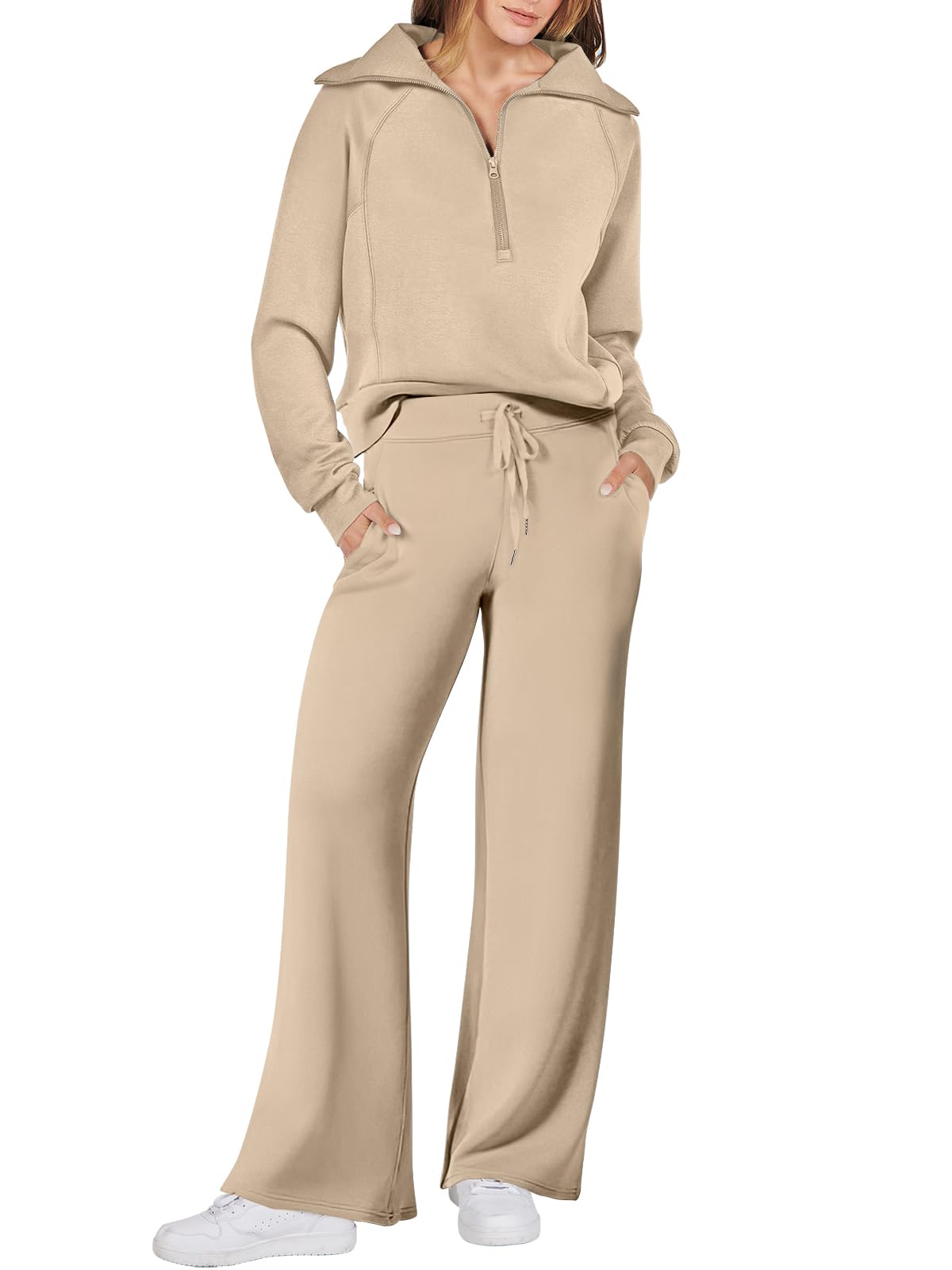 Features - This Sweatsuit Set featured Half zip long sleeve oversized sweatshirt & high waist drawstring wide leg sweatpant for a 2 piece tracksuit set.