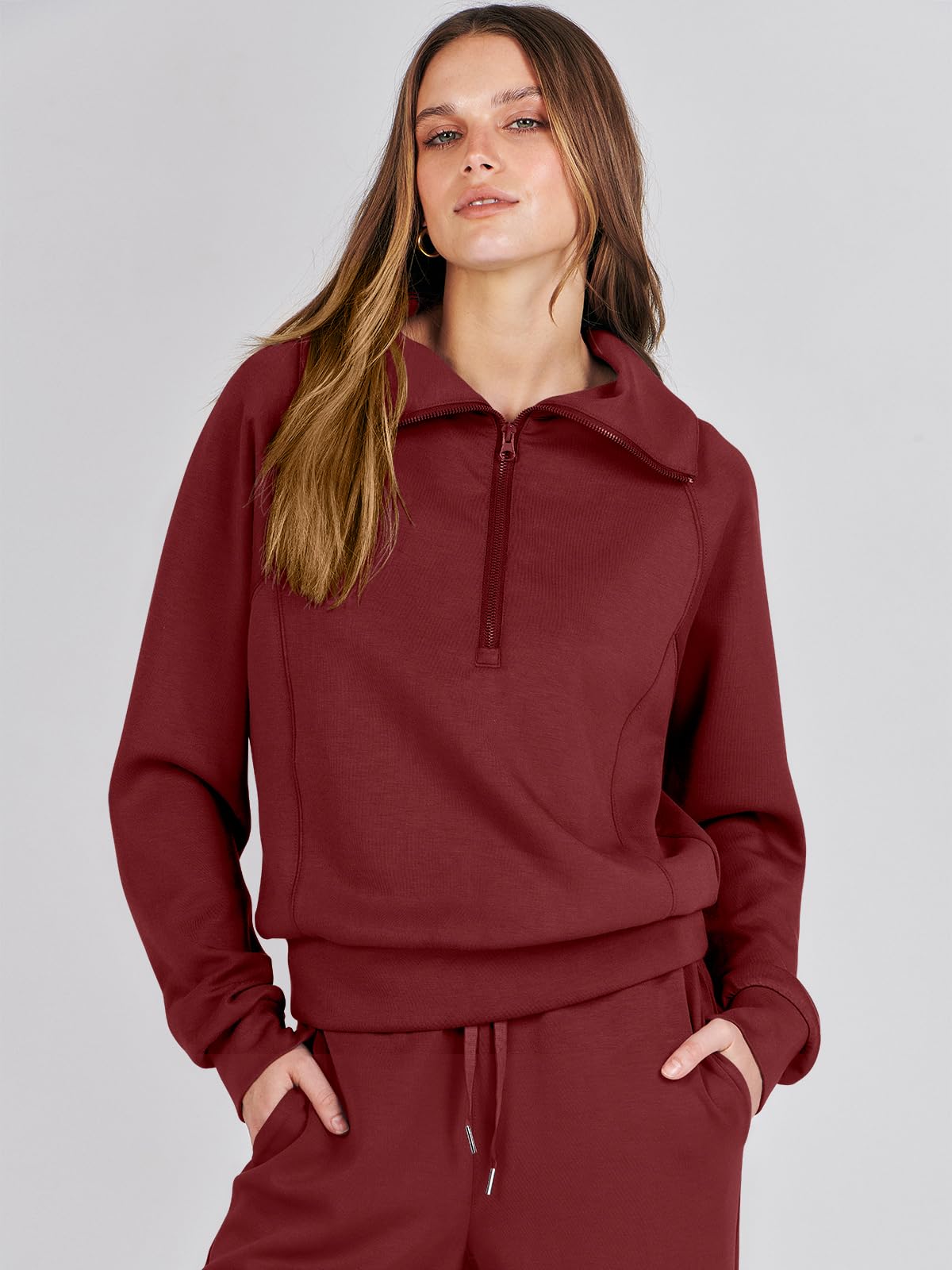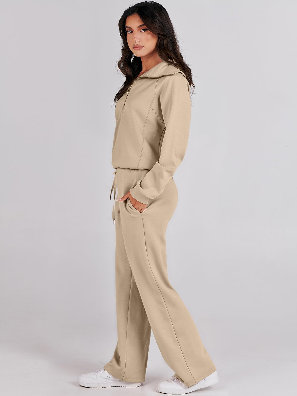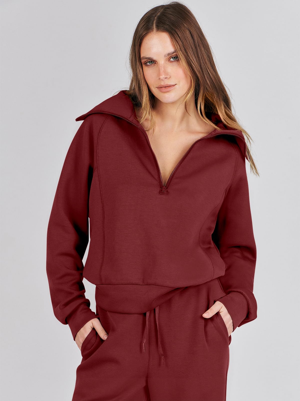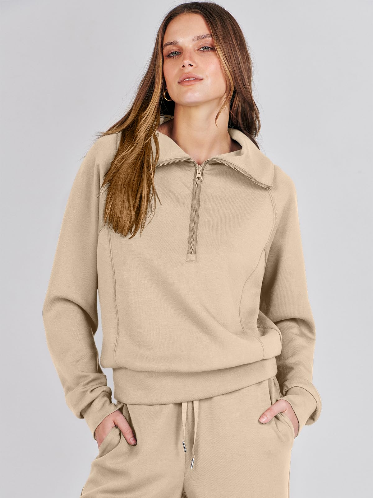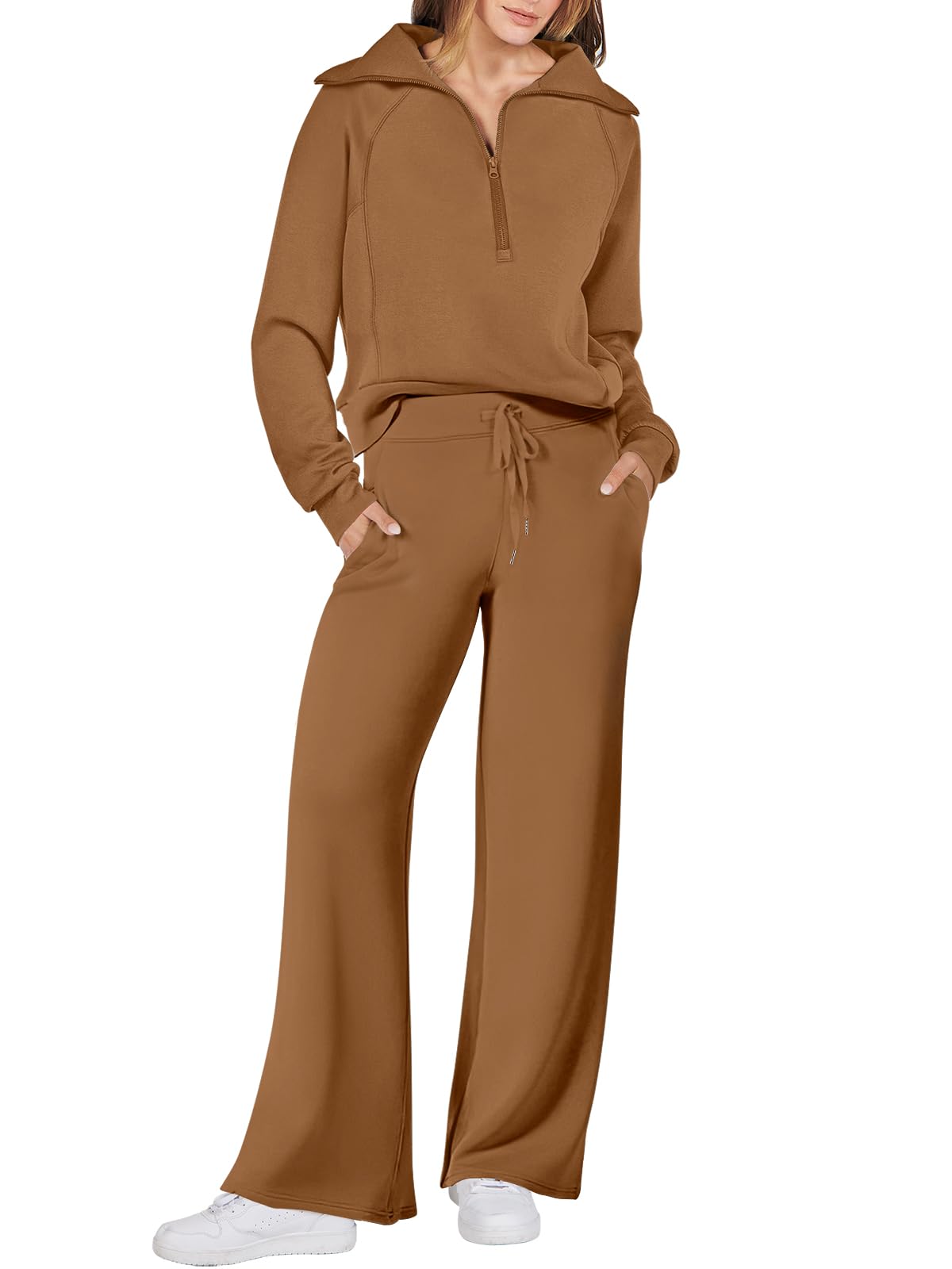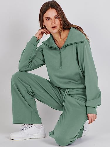 Women's 2 Piece Oversized Quarter Zip Sweatsuit Set by ANRABESS - Fall 2023 Trendy Lounge & Travel Matching Sweatshirt and Sweatpants
