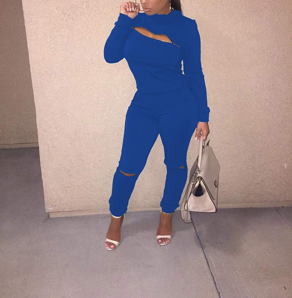 Women's Sexy 2 Piece Outfits Tracksuit Bodycon Jumpsuits Crew Neck Top Long Pant Skinny Joggers Sportswear Set
