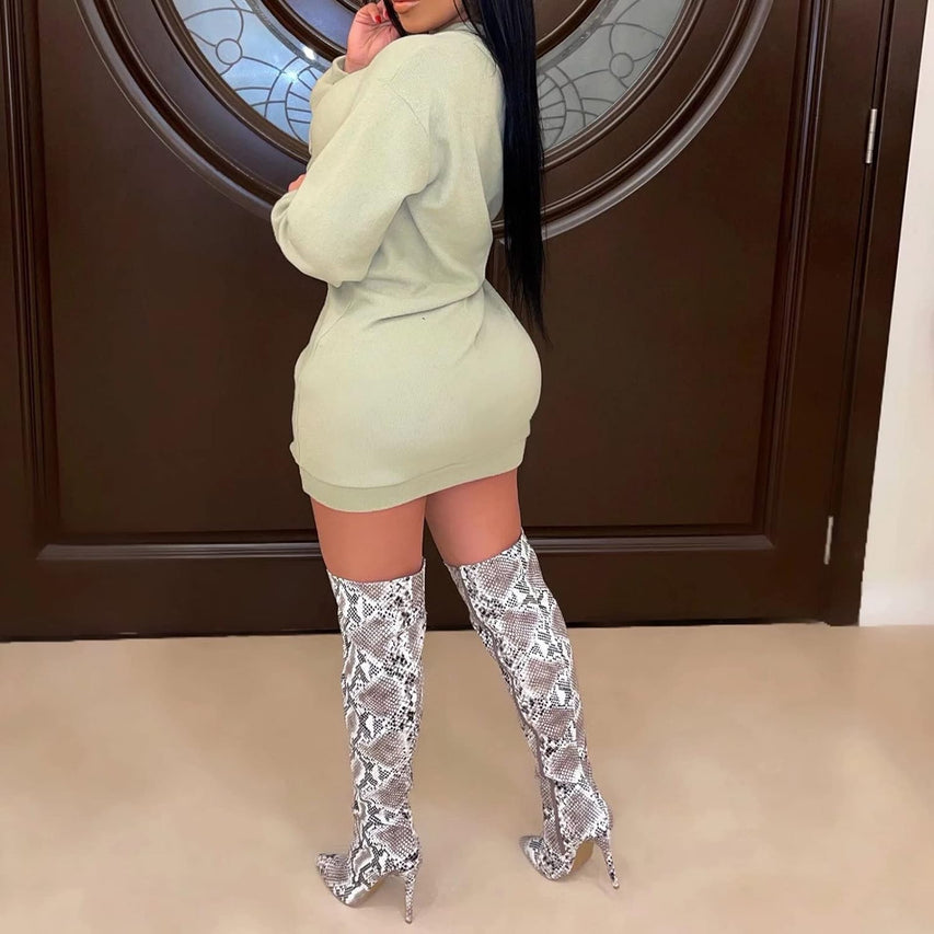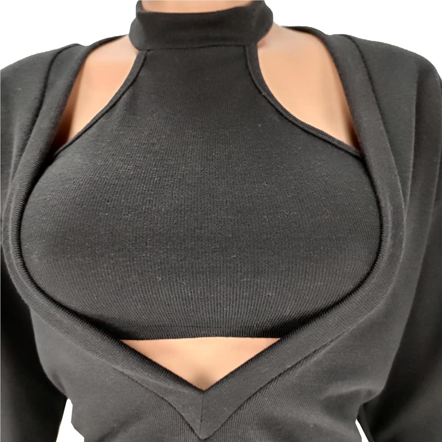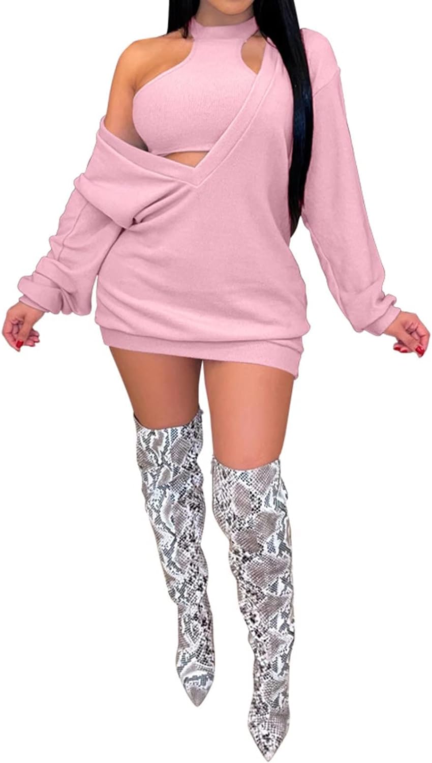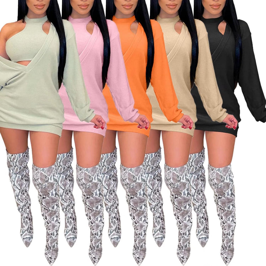 Womens Sexy 2 Piece Sweater Dress Outfits Long Sleeve V Neck Sweatshirt Dress & Tank Crop Tops Sets Sweatsuit