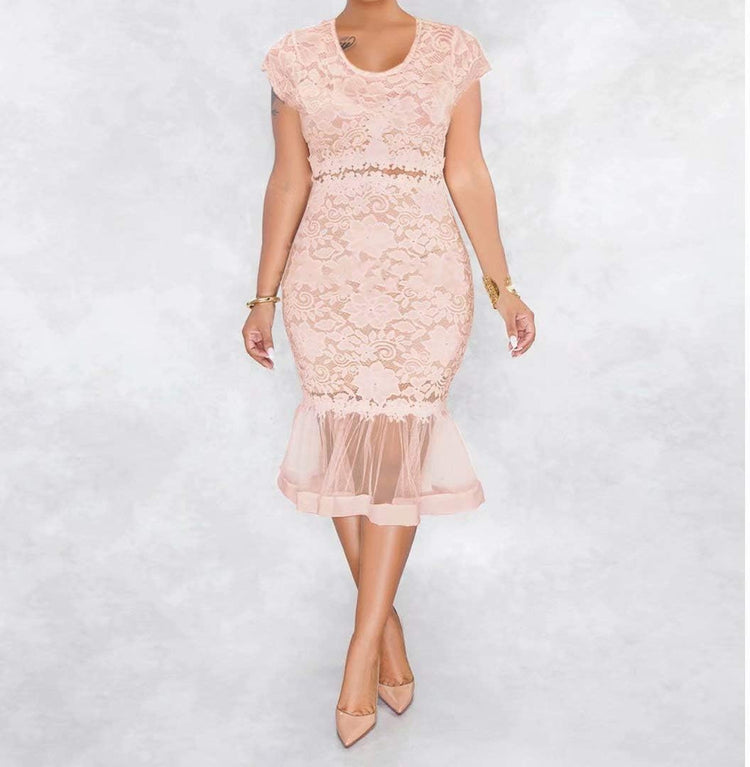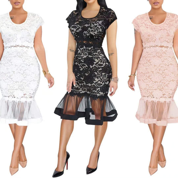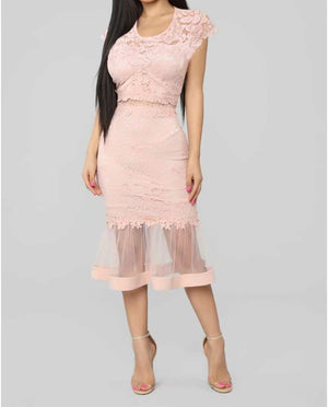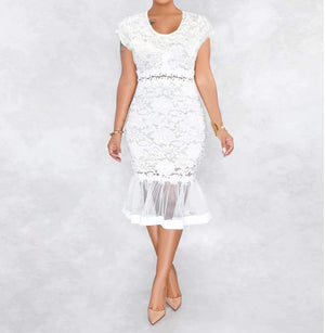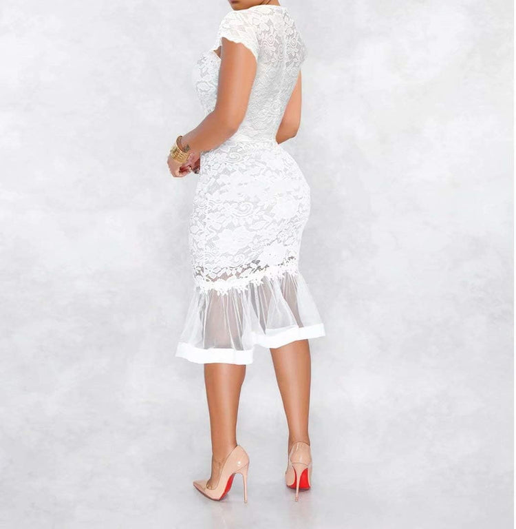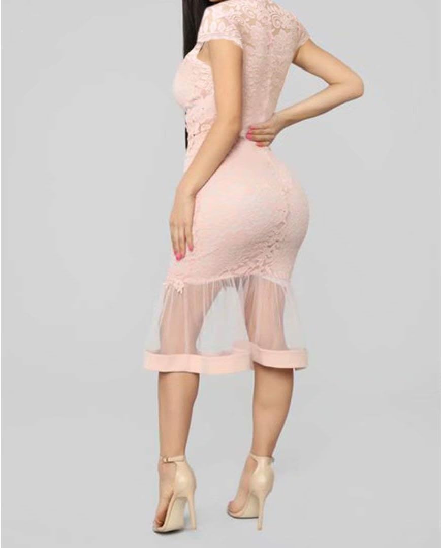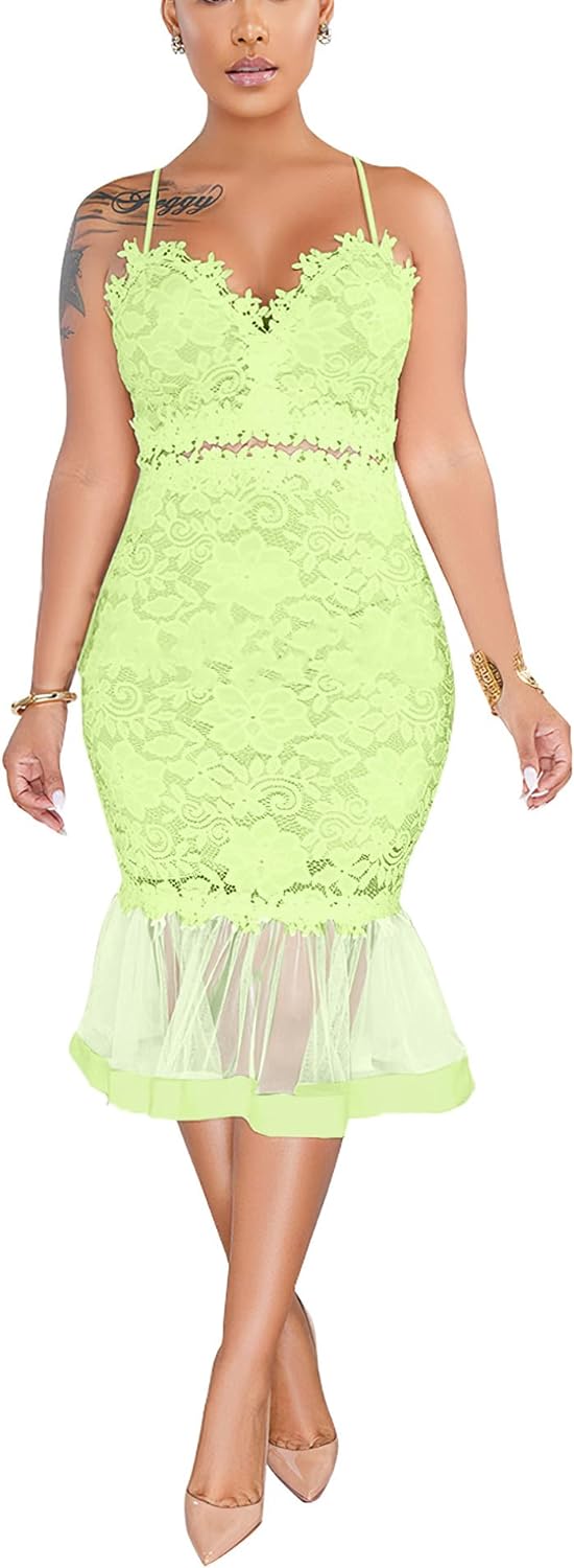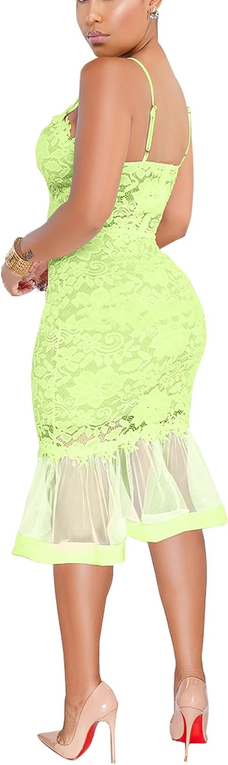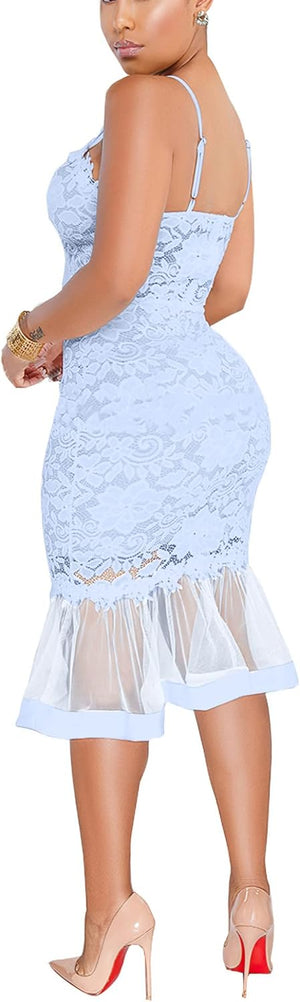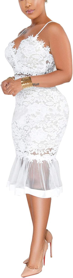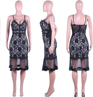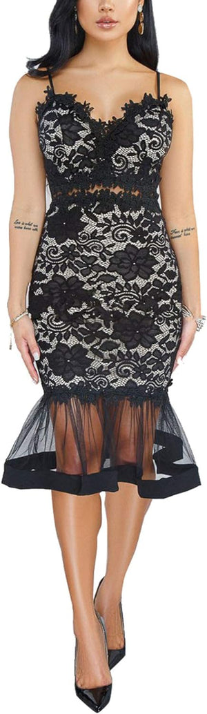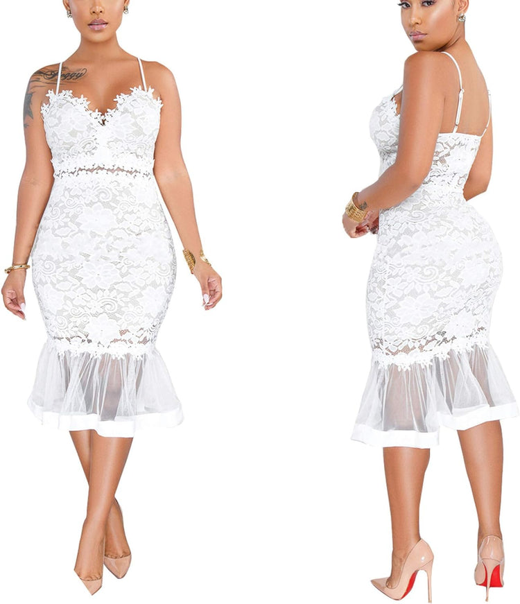 Sexy Womens Lace Dress Outfits Summer Spaghetti Strap V Neck Top Midi Bodycon Fishtail Skirts Clubwear
