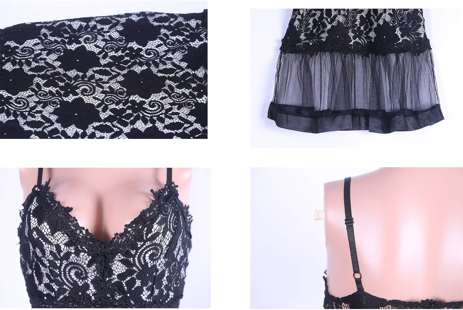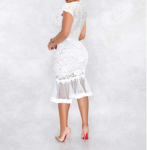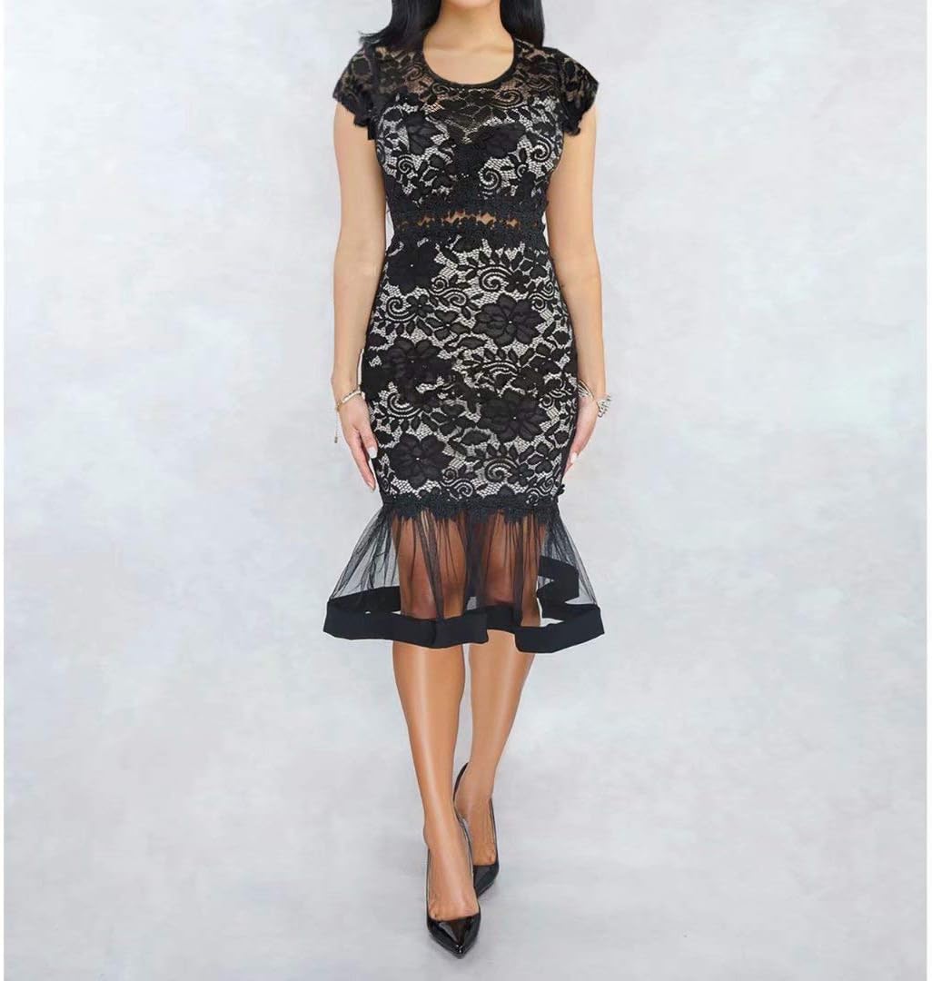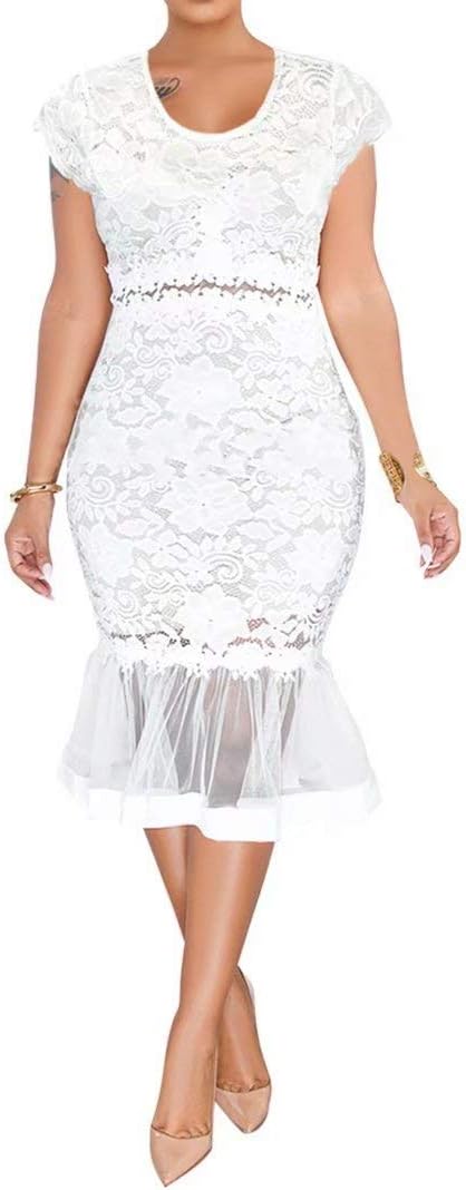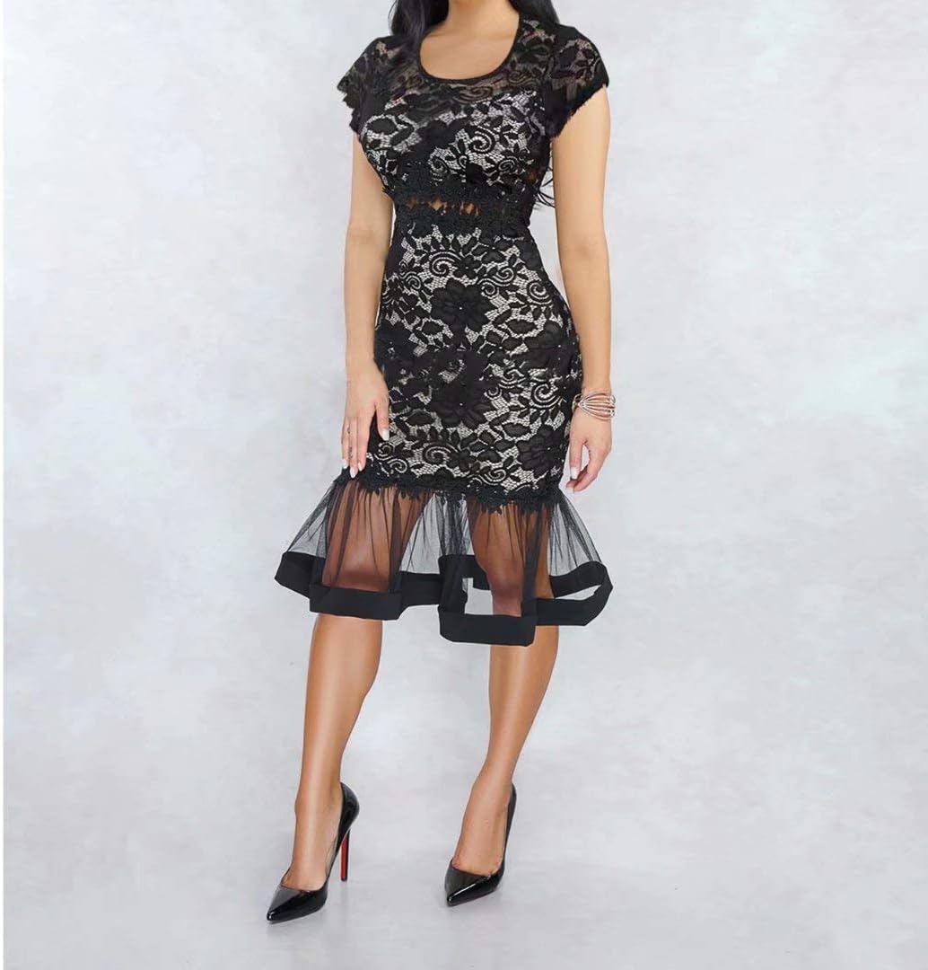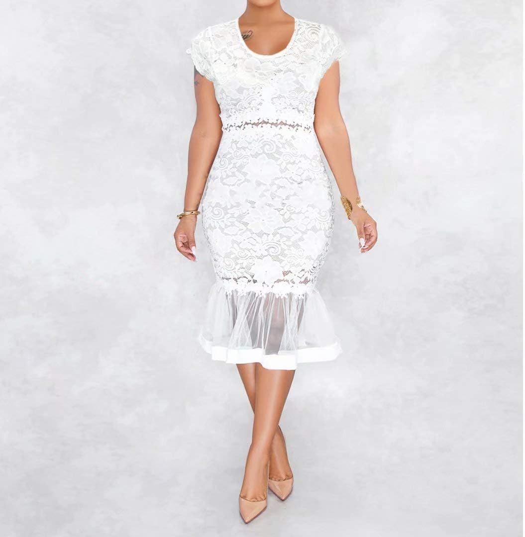 Womens Sexy Lace Dress V Neck Spaghetti Strap Hollow Out Bodycon Midi Skirt
