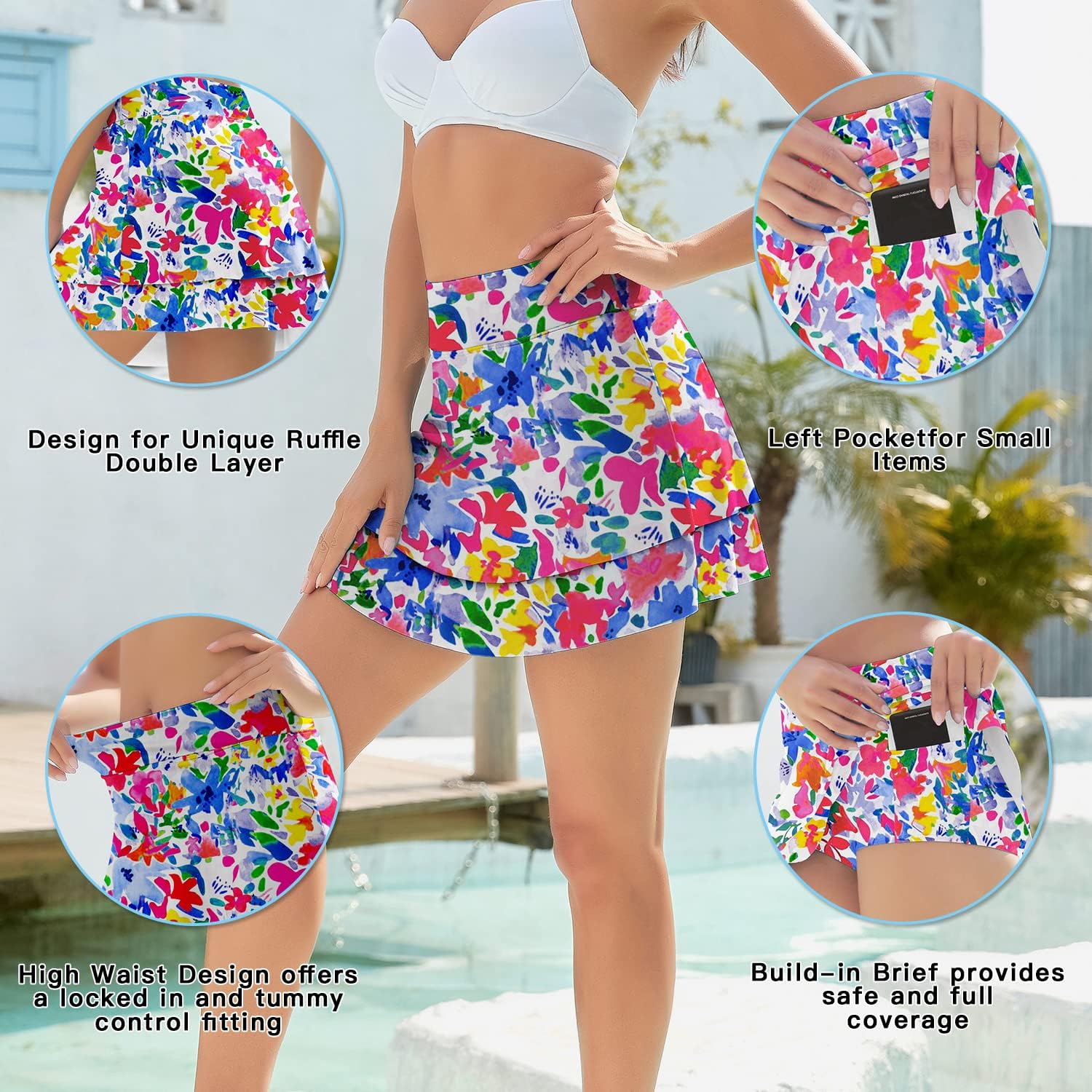 WOWENY Women's Swim Skirts Swimsuit High Waist Swimming Skorts with Shorts Bikini Bottoms with Pocket Bathing Suit Bottoms